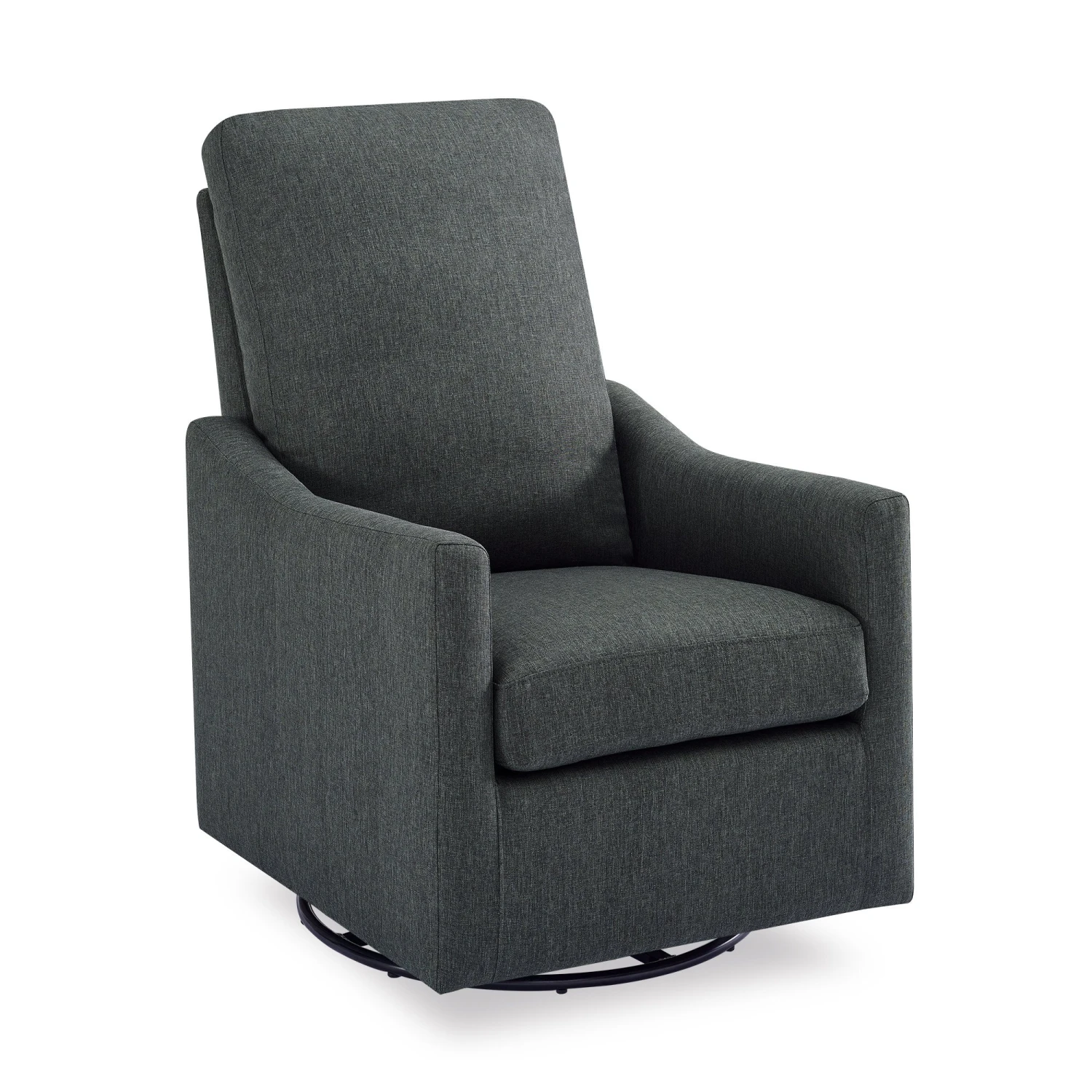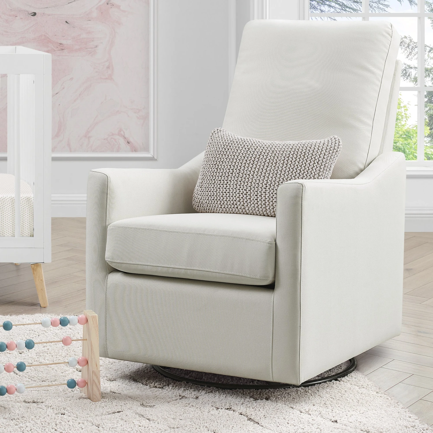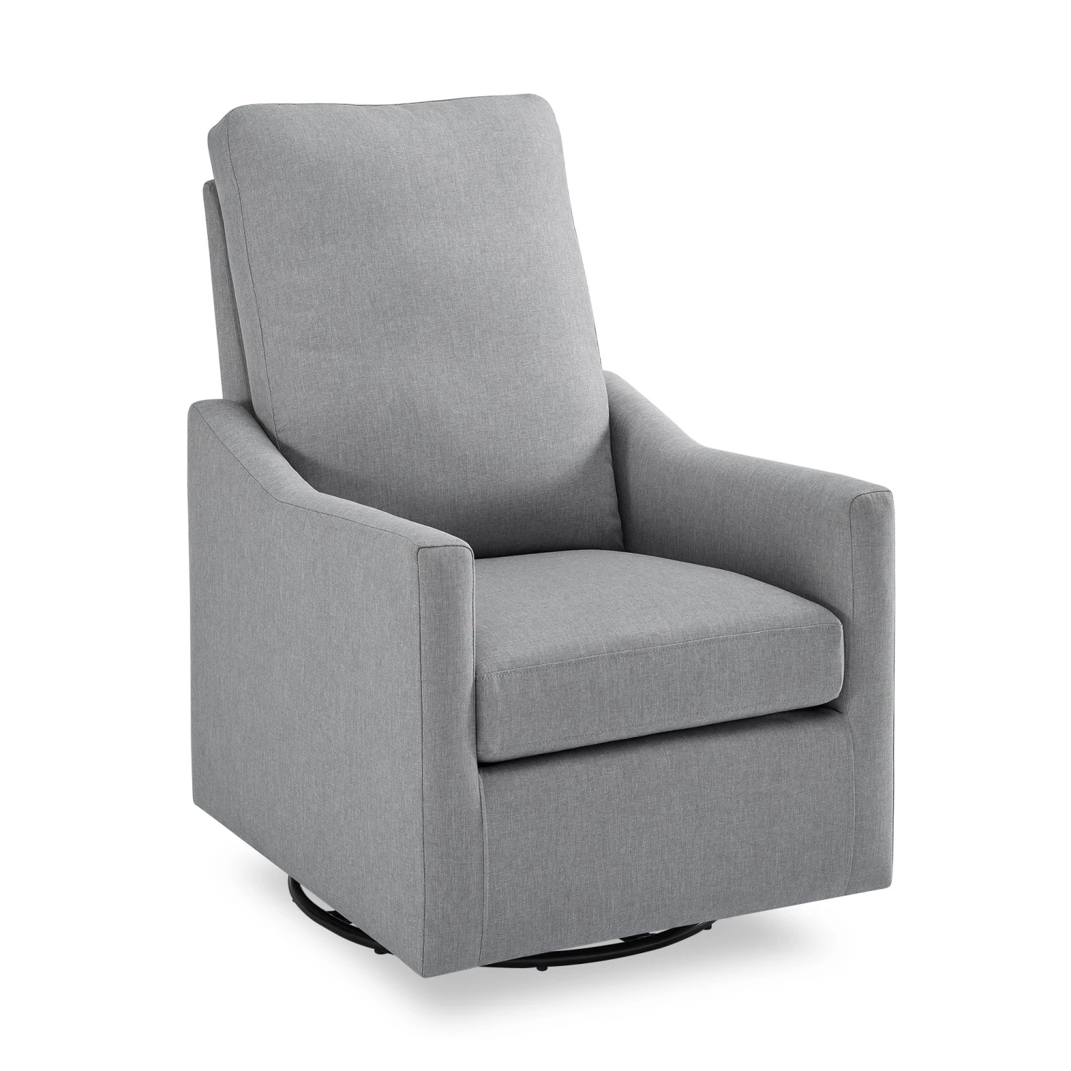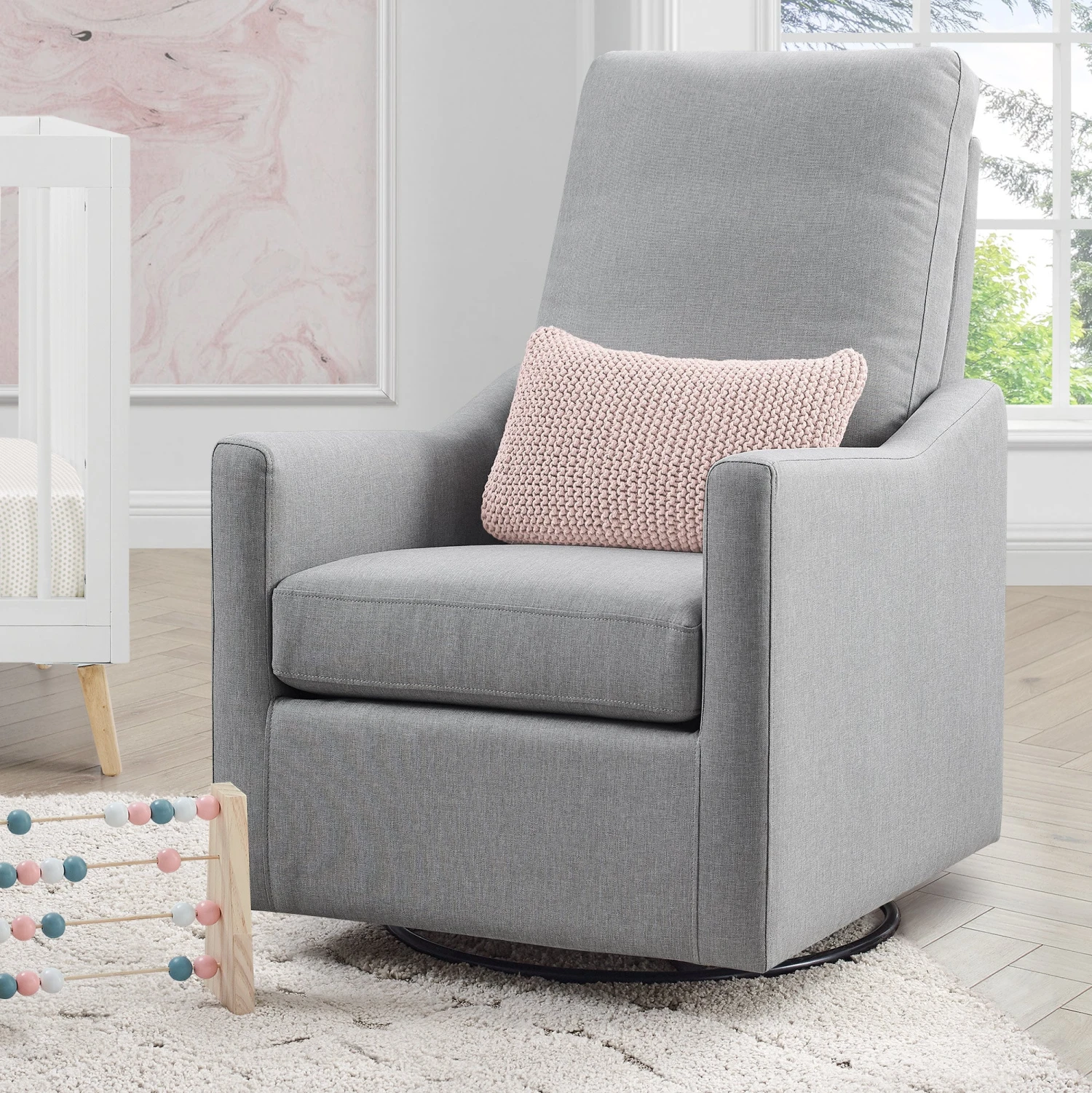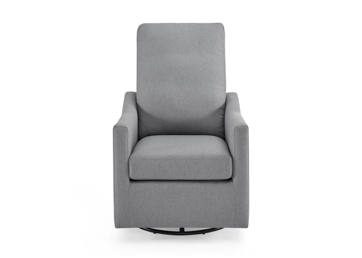 Designed for exceptional comfort, the Adley Nursery Glider Swivel Rocker Chair by Delta Children glides and swivels 360-degrees, making it the most soothing spot to lull baby to sleep. The chair’s whisper quiet movements ensure a serene environment while the soft seat cushion (6″ thick), padded armrests and backrest allow you to sit comfortably for hours. Its modern shape makes it an easy addition to your nursery or living room once your baby gets older. Assembled dimensions: 26.75″W x 37.5″D x 40.25″H. Available in three colors: Charcoal, French Grey and Cream. Removable seat cushion for easy cleaning.