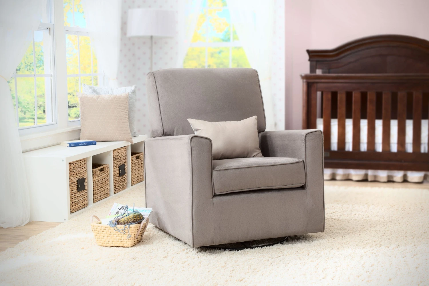 The Ava Glider goes beyond classic good looks. It starts with a sturdy wood frame along with a hidden gliding and swivel mechanism, and is finished with a super-soft cushion, sleek silhouette and microfiber fabric that stands up to stains. A cozy place to spend time with your baby, its beauty lasts a lifetime, effortlessly moving from the nursery to living room, or anywhere else you need a soft place to land.