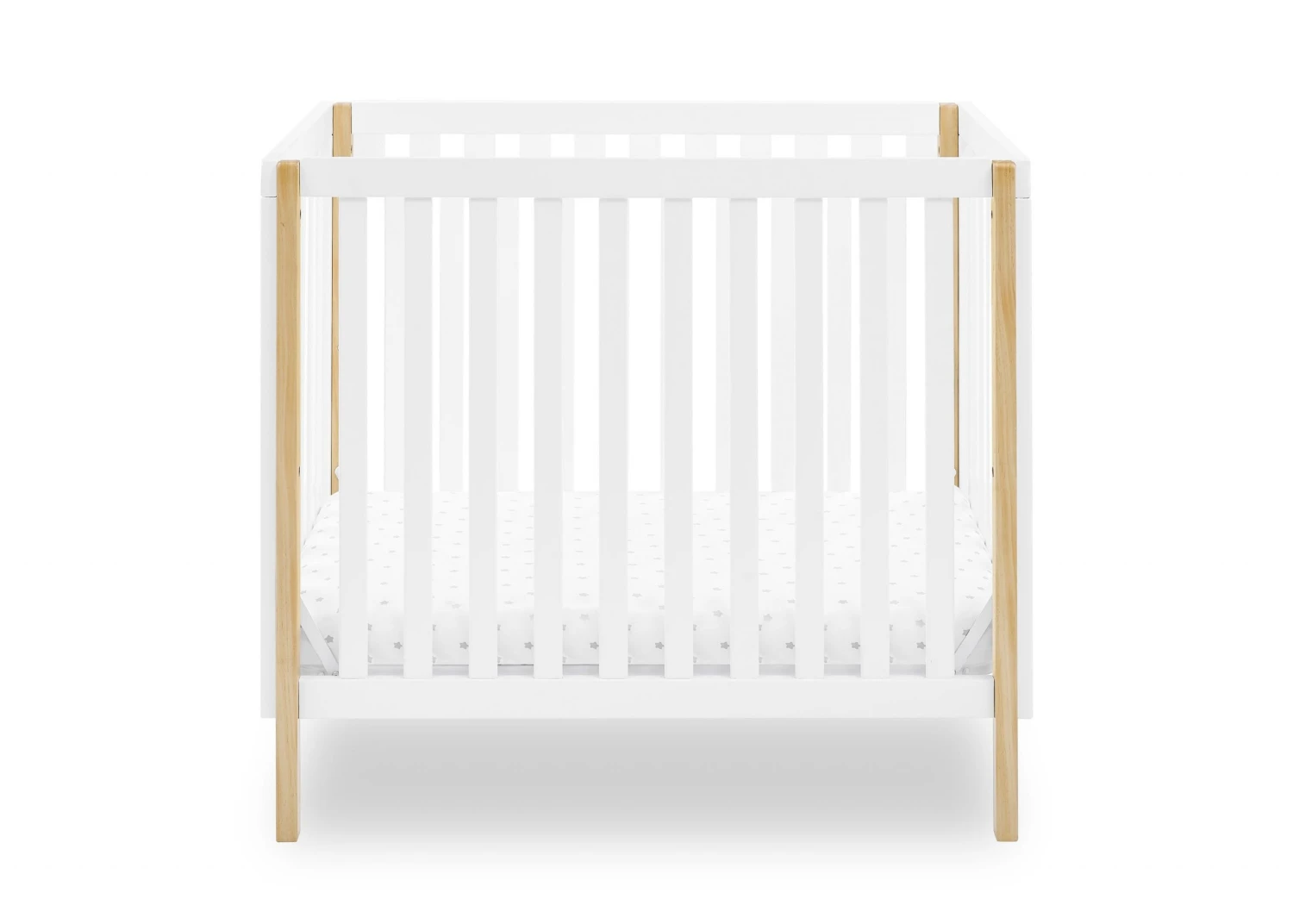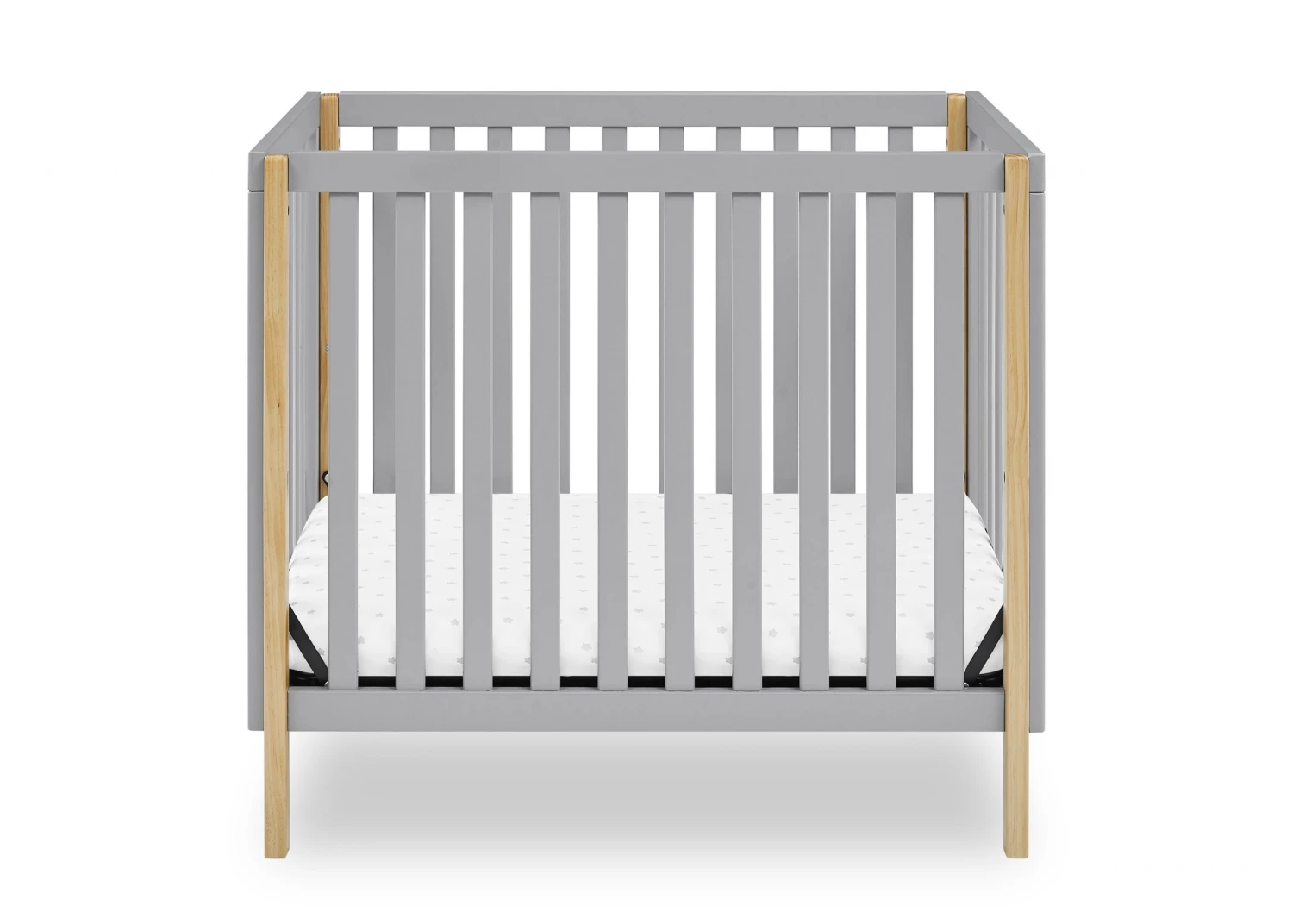 The Gio Mini Crib with 2.75-Inch Mattress by Delta Children works perfectly in smaller nurseries or as a spare crib at grandma and grandpa’s house. This versatile mini crib includes a comfy and water-resistant mattress and serves as the perfect space-saving alternative to a full-size crib. The Gio Mini Crib is the ideal choice for a modern nursery with its clean lines and compact design that features two adjustable mattress positions that allow you to lower the mattress height as baby grows.