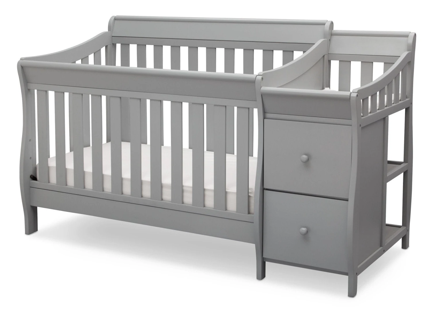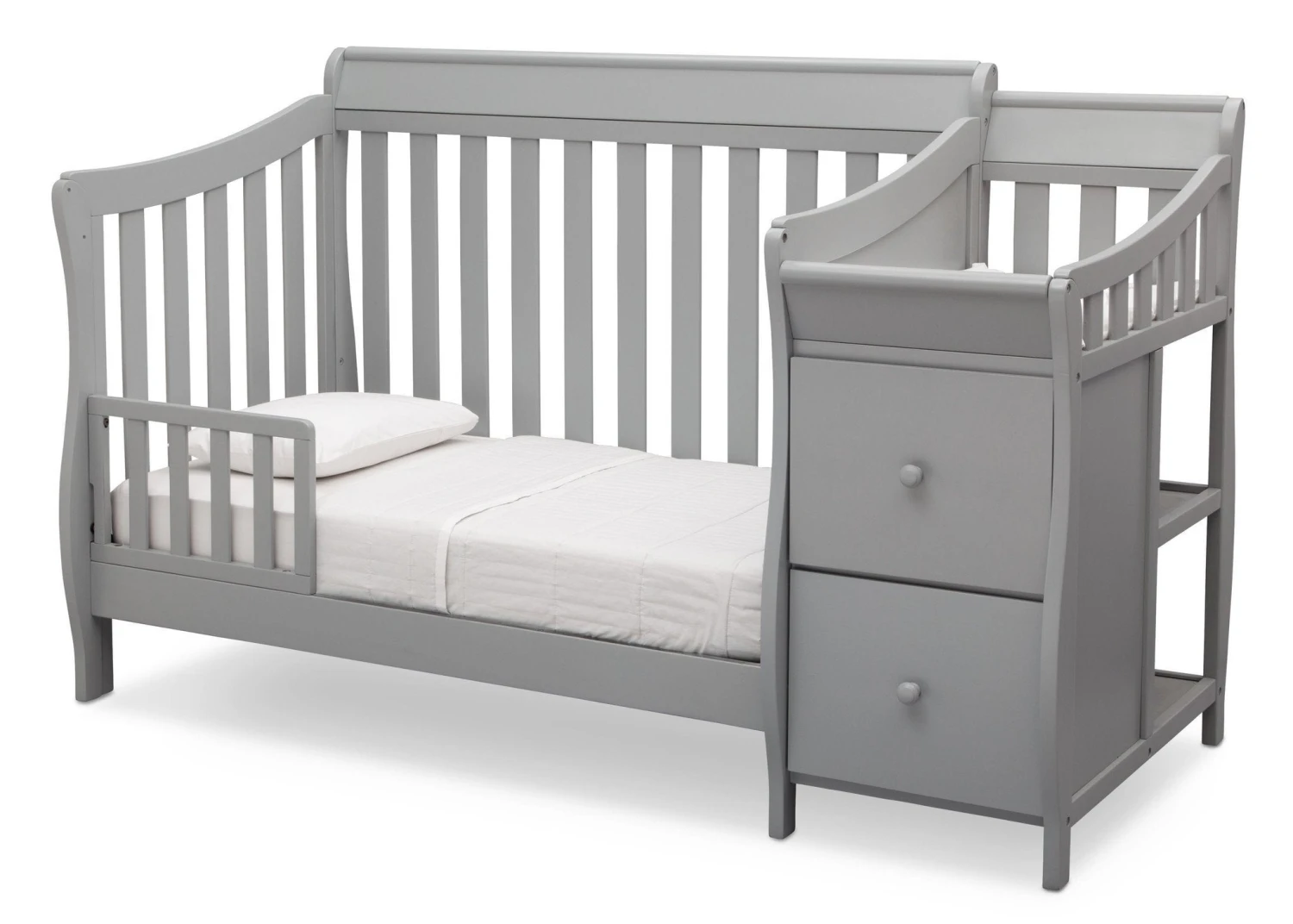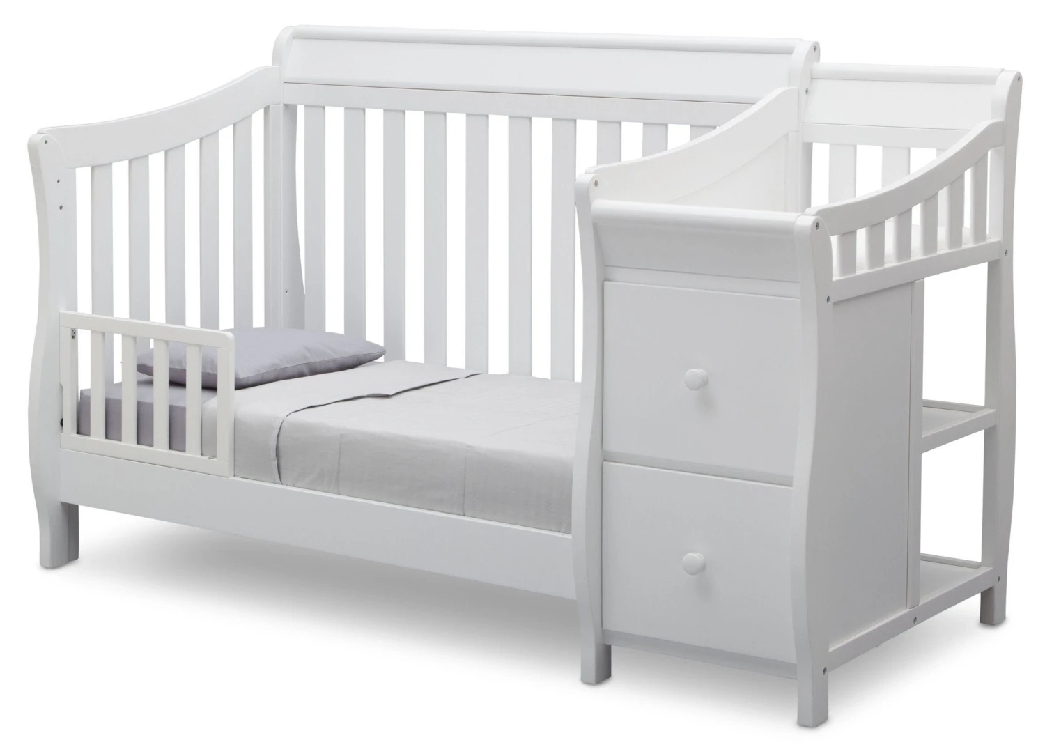 The ultimate mix of style and convenience, the Bentley S Crib N Changer will be the standout piece in any nursery. For versatility, a convertible 4-in-1 crib that easily adapts into a toddler bed, daybed and full size bed, is attached to a changing table that sits above two drawers and open shelving
