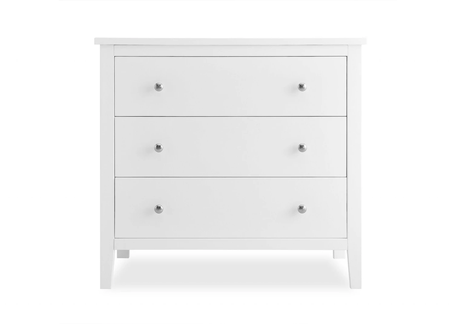 Bring your dream nursery to life with the Campbell 3 Drawer Dresser by Delta Children. Clean lines, playful round knobs and tapered legs define this beautiful dresser. This dresser also has a smooth metal glide system with safety stops that prevent drawers from pulling out, so it is easy and safe for kids to manage on their own. Pair this dresser with other pieces in the Campbell Nursery Collection for a coordinated look, as well as the coordinating Changing Top #W100810 (sold separately) to transform this dresser into a convenient changing table.
