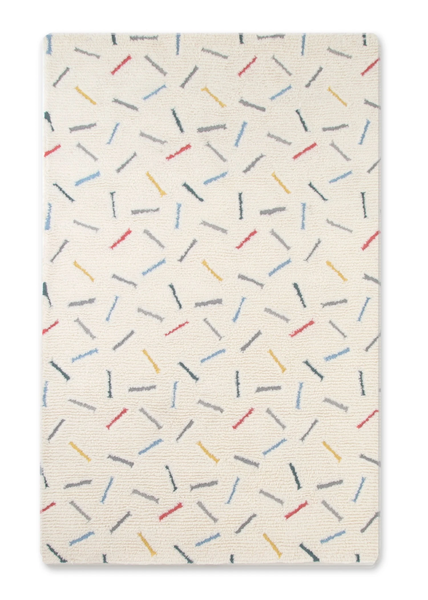 This rug’s colorful sprinkle pattern, featuring assorted shades of primary colors, will instantly add playful style to your little one’s space. Hand-tufted of 100% wool, this super-soft rug from Delta Children is ideal for babies and kids who love to play on the floor. Plus, the wool construction has the natural ability to resist stains for long-lasting durability. The rug’s non-slip backing is made from recycled cotton to ensure it doesn’t dry out or break down over time. This rug will work equally well in kids’ bedrooms, playrooms, living rooms, basements or any other room in the house.