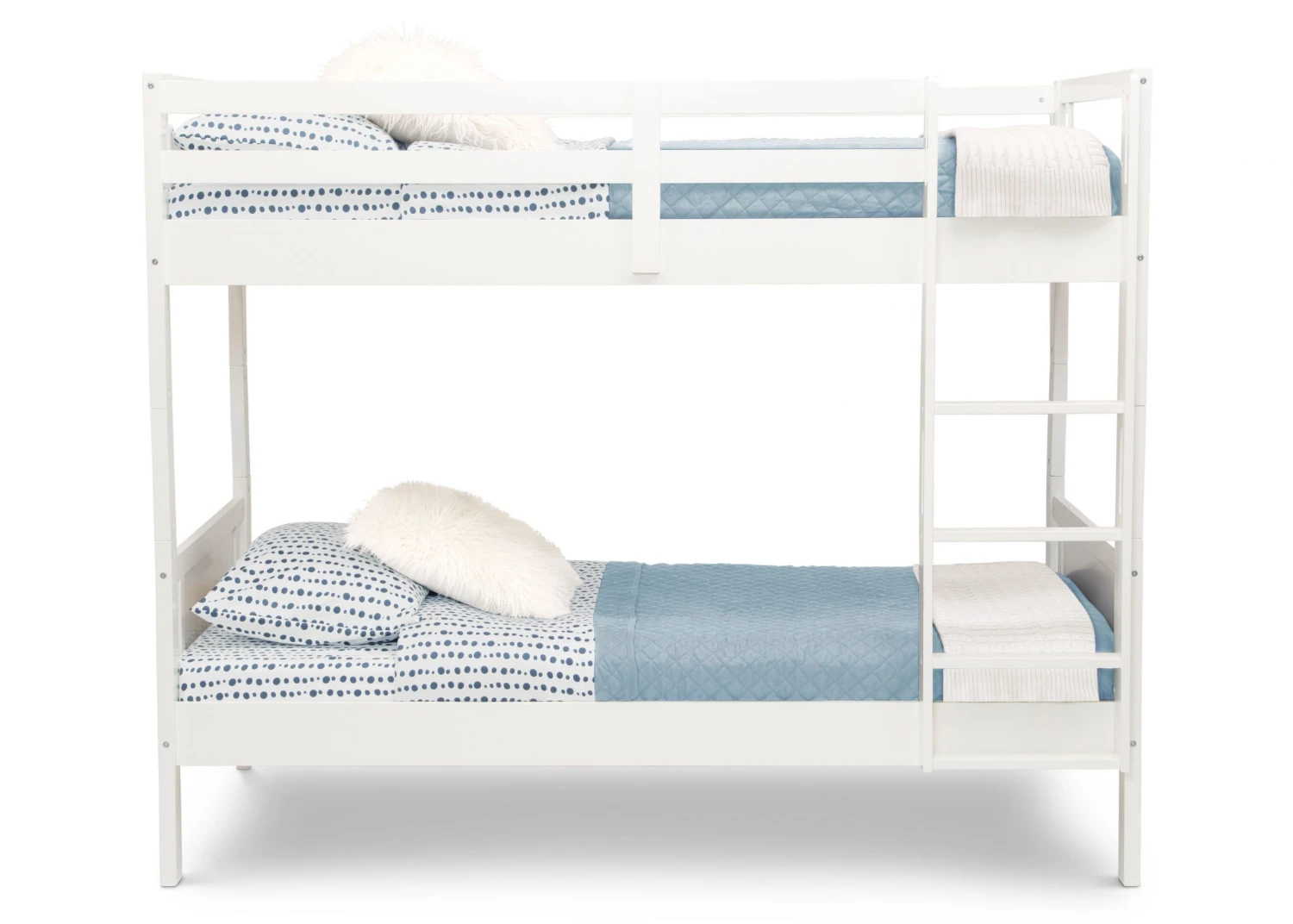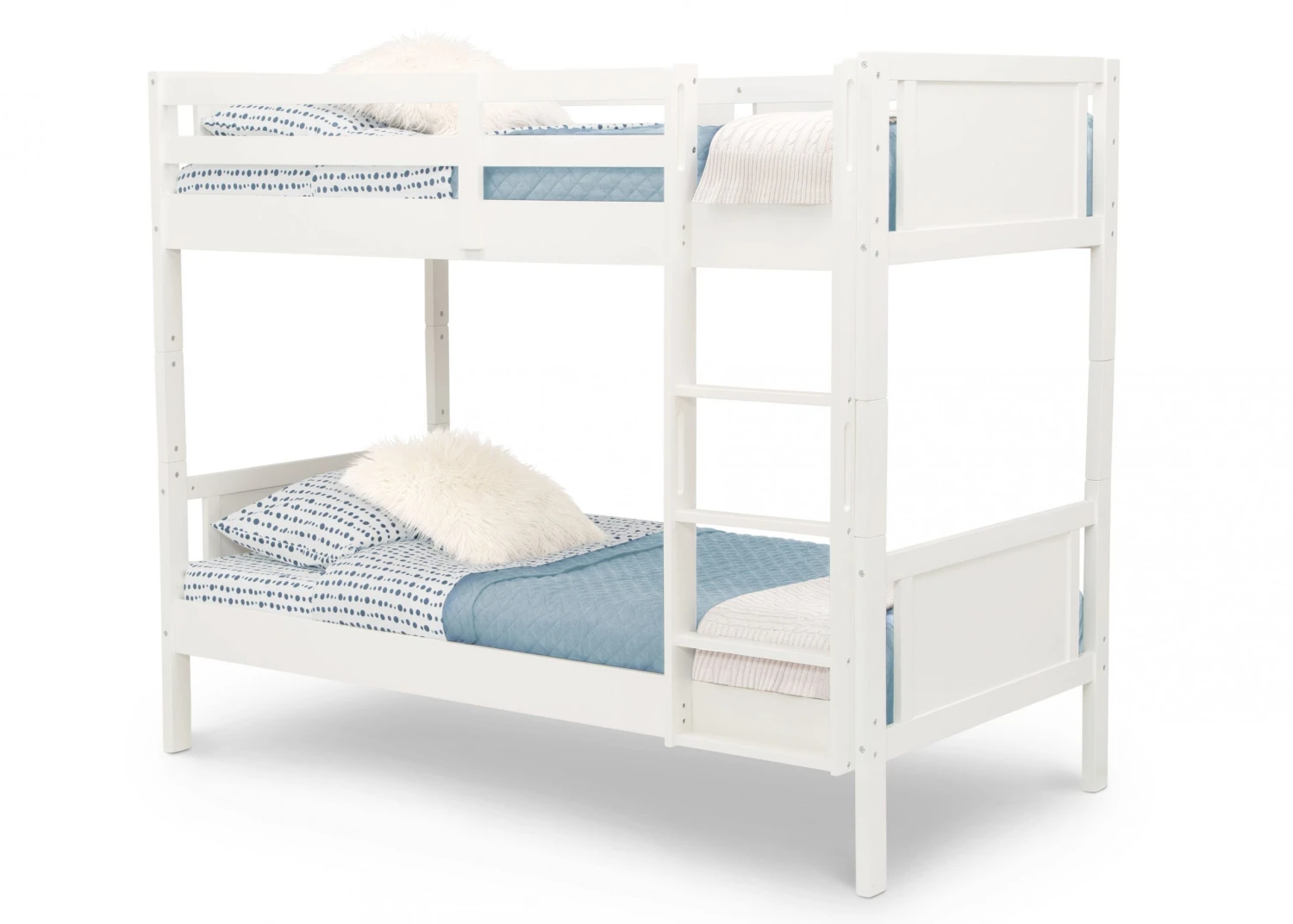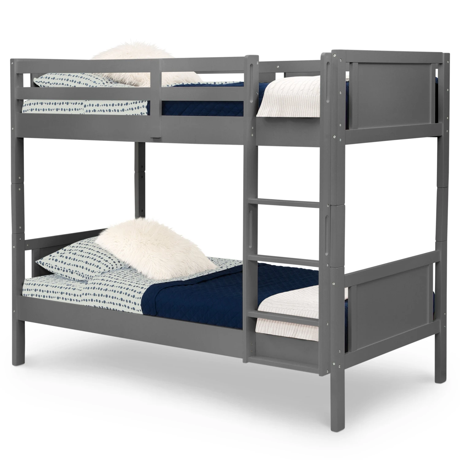 This Convertible Twin Over Twin Wood Bunk Bed with Ladder and Guardrails by Delta Children is the perfect solution for shared or small spaces. Beautifully made and incredibly versatile, this bunk bed provides the flexibility to convert into two separate twin beds. The bed’s classic design ensures it coordinates with any décor, and it’s constructed from made-to-last materials to ensure safety, stability and longevity. The top bunk features a 14-inch guardrail all around to keep your little one safe throughout the night. Pair this bunk bed with coordinating tents by Delta Children to complete your bedroom (tents sold separately). Assembly required. 250-pound weight capacity per bed (500 pounds total). The Consumer Product Safety Commission recommends that top bunks not be used for children under 6 years of age. Mattresses not included. Bunk bed mattress should not exceed 8 inches in thickness.
