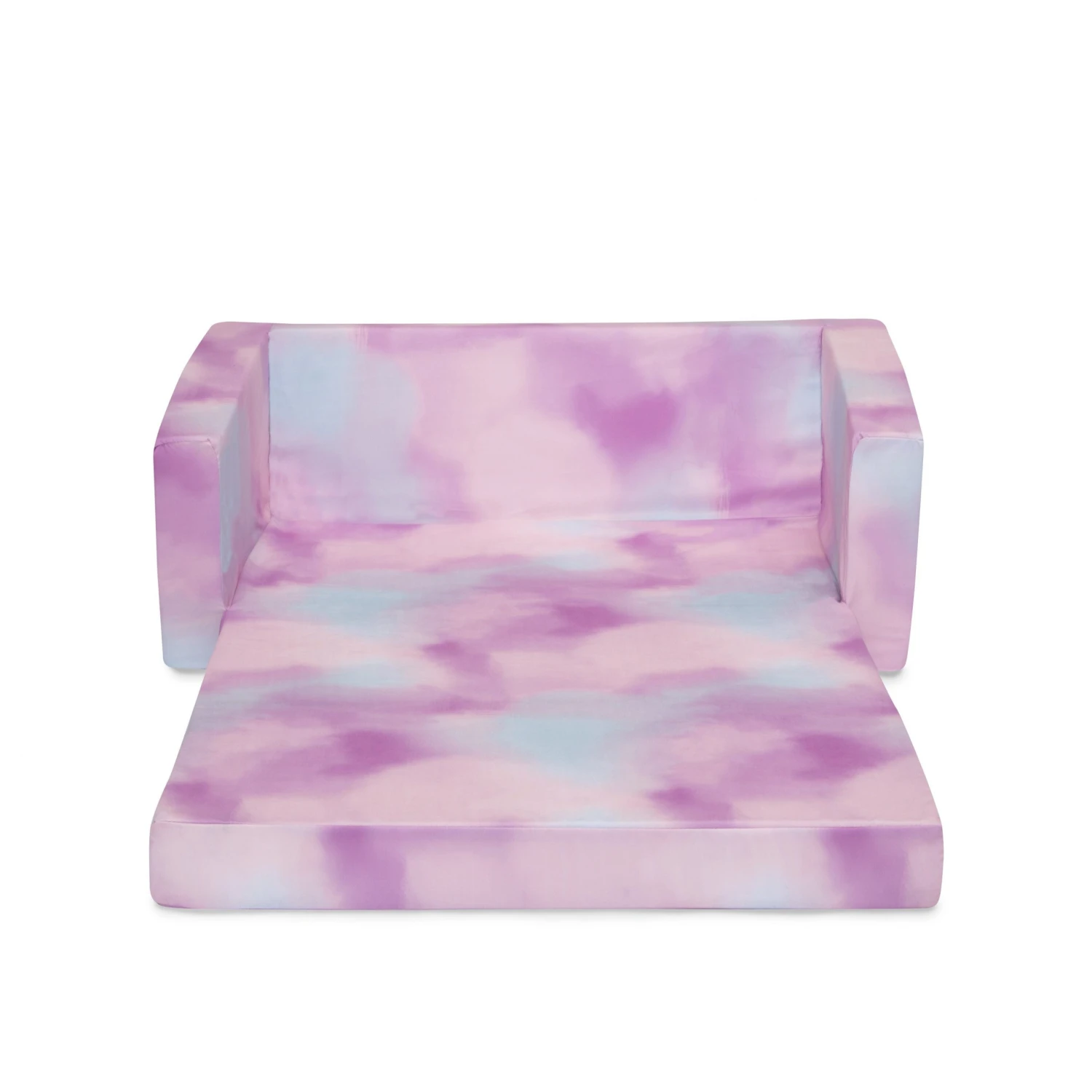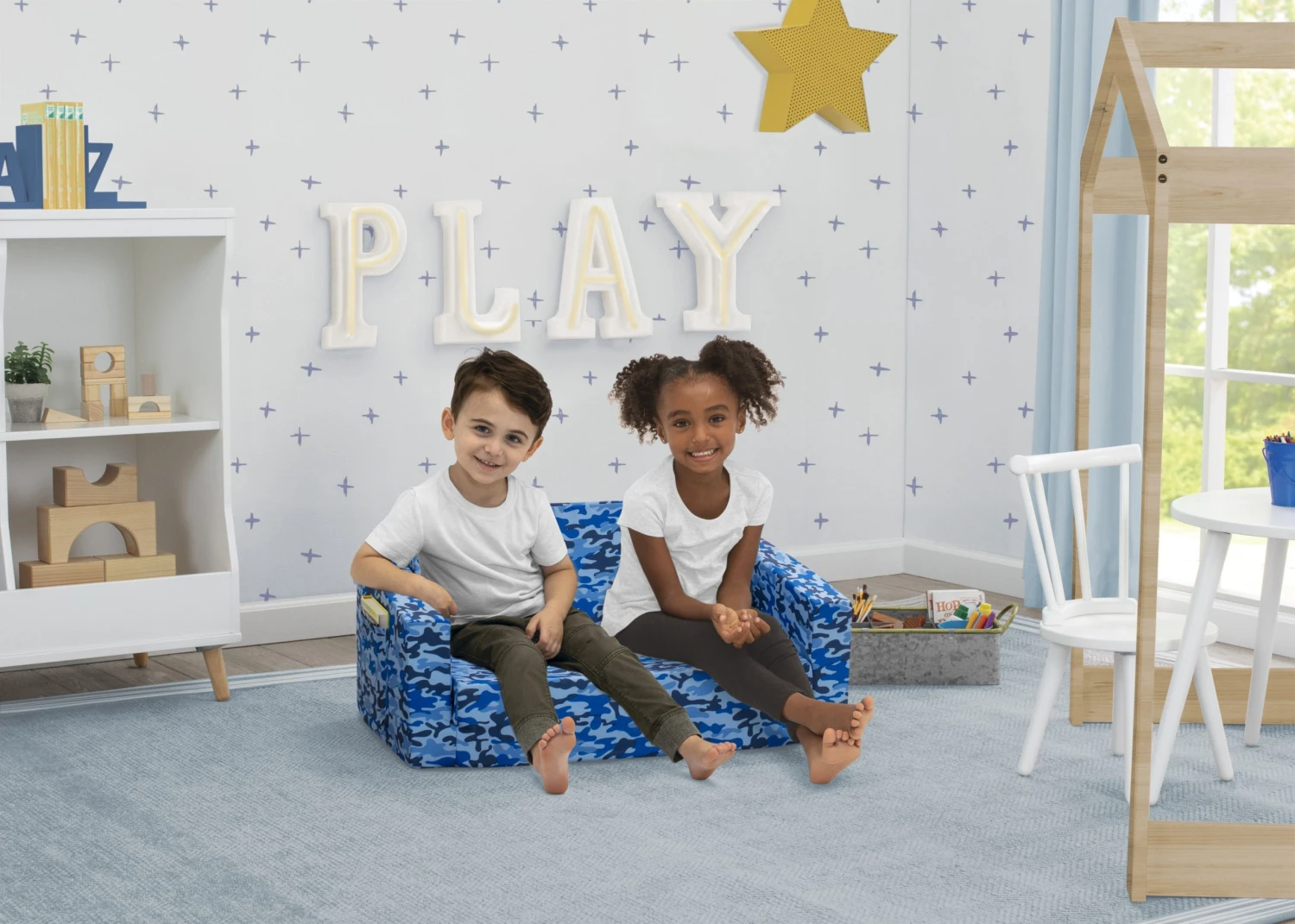 The Cozee Flip-Out 2-in-1 Convertible Sofa to Lounger by Delta Children is a cozy chair by day, laid-back lounger by night. This convertible seat easily flips open to reveal multiple ways for your child to relax–they’ll love to sit and read or watch their favorite movies on the chair but when it’s time for a nap, this seat folds out into a comfy sleeper bed. Big enough to fit three small kids comfortably in sofa mode, it’s light enough to move around the house and is ideal for your children to share during playtime or sleepovers. The super-soft slipcover with easy-to-reach side pocket is treated with Scotchgard stain release finish to resist stains, ensuring the sofa looks beautiful for years to come! The supportive foam construction will keep its shape and provides all-day comfort. Designed to ship in a super-small box, this lightweight foam kids’ sofa and lounger may take up to 24 hours to fully expand once unboxed. Machine-washable slipcover zips off for easy cleaning. Recommended for ages 18 months+.