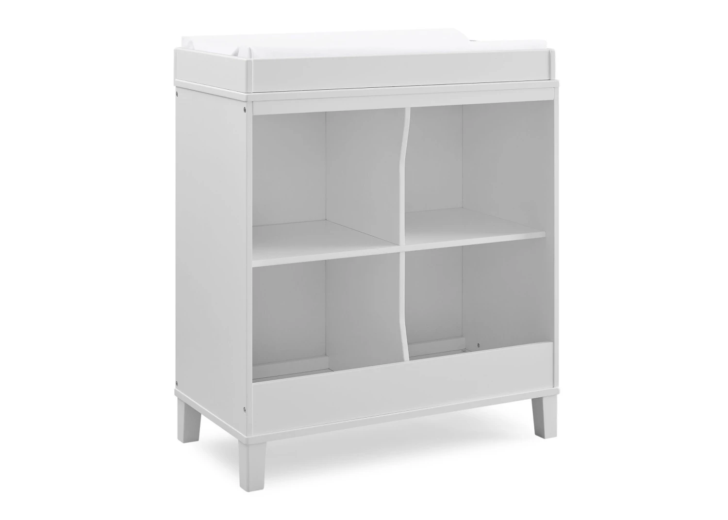 Change diapers and keep baby’s necessities within reach with the stylish, modern Huck Convertible Changing Table by Delta Children. The four open cubbies provide plenty of storage space and the included changing topper keeps the changing pad firmly in place (changing pad sold separately). Best of all, its innovative 2-in-1 design allows the changing topper to be easily removed once your child is potty-trained, effortlessly converting the piece into a standalone storage piece. A great option that will grow with your child, from nursery to big-kid room, the Huck Convertible Changing Table by Delta Children is also ideal for shared bedrooms, or anywhere you need a space-saving storage piece. Available in Grey or Bianca White, and coordinates with other items from Delta Children in the same finish.