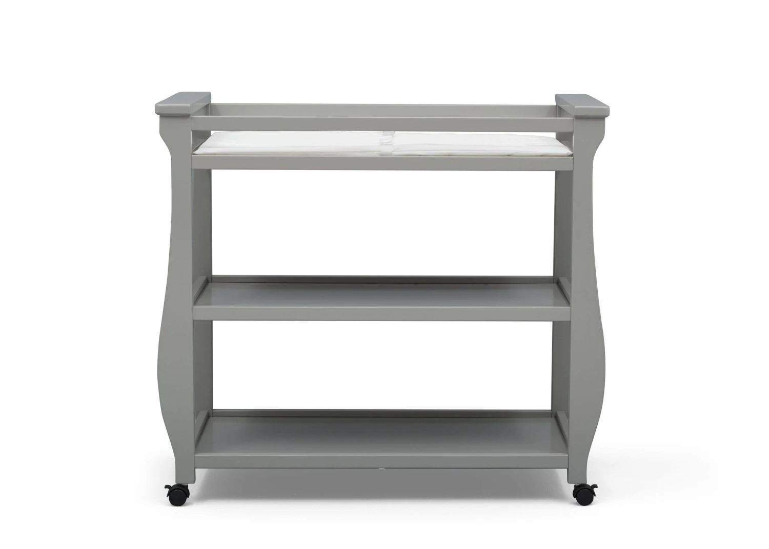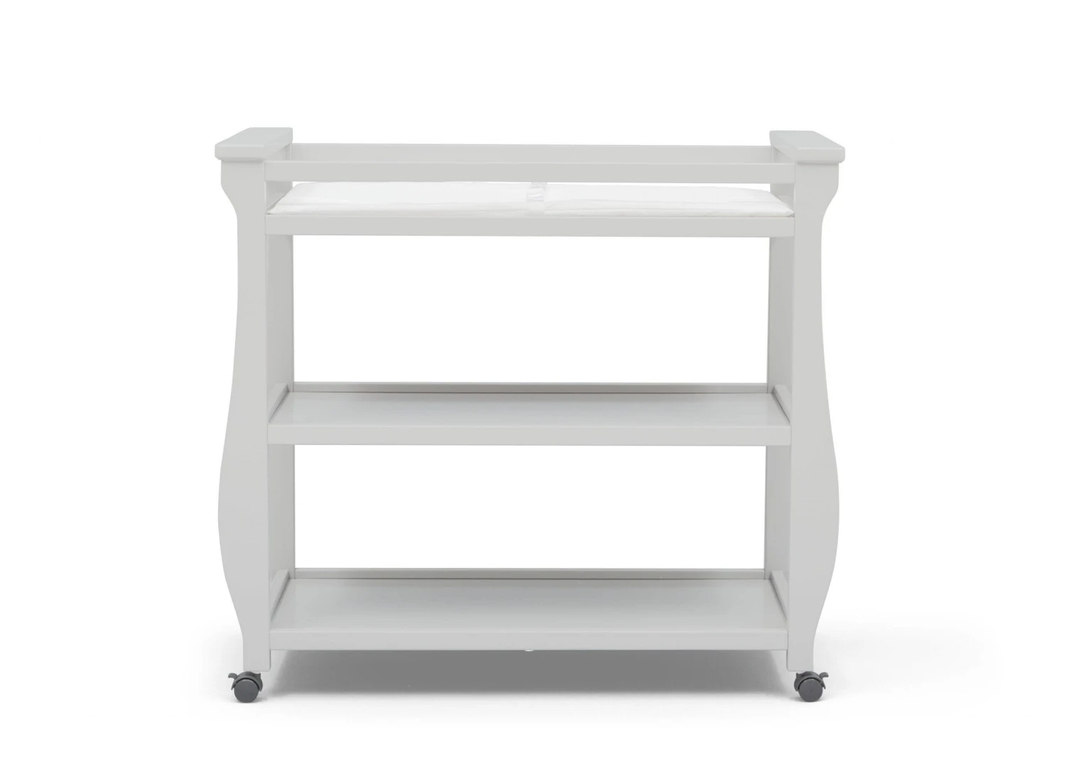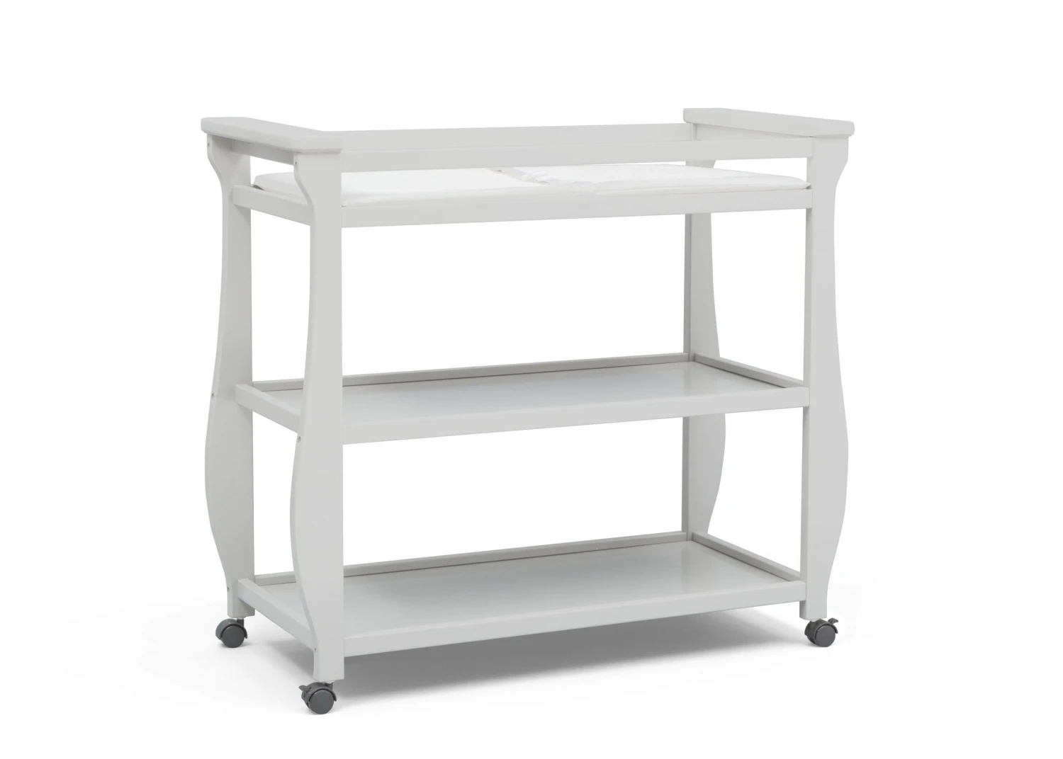 The Lancaster Changing Table offers a secure place to change and dress your baby, plus two shelves for storage. Crafted from the best materials, this wooden changing table features a timeless sleigh-style silhouette that will never go out of style.