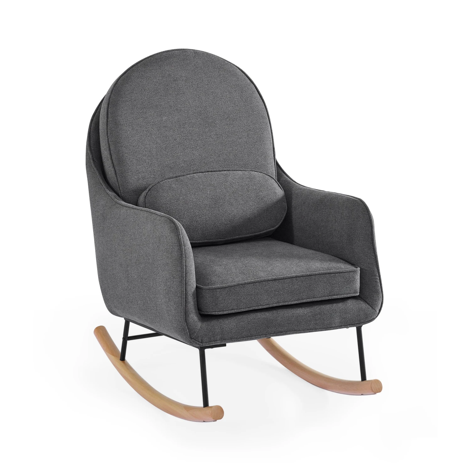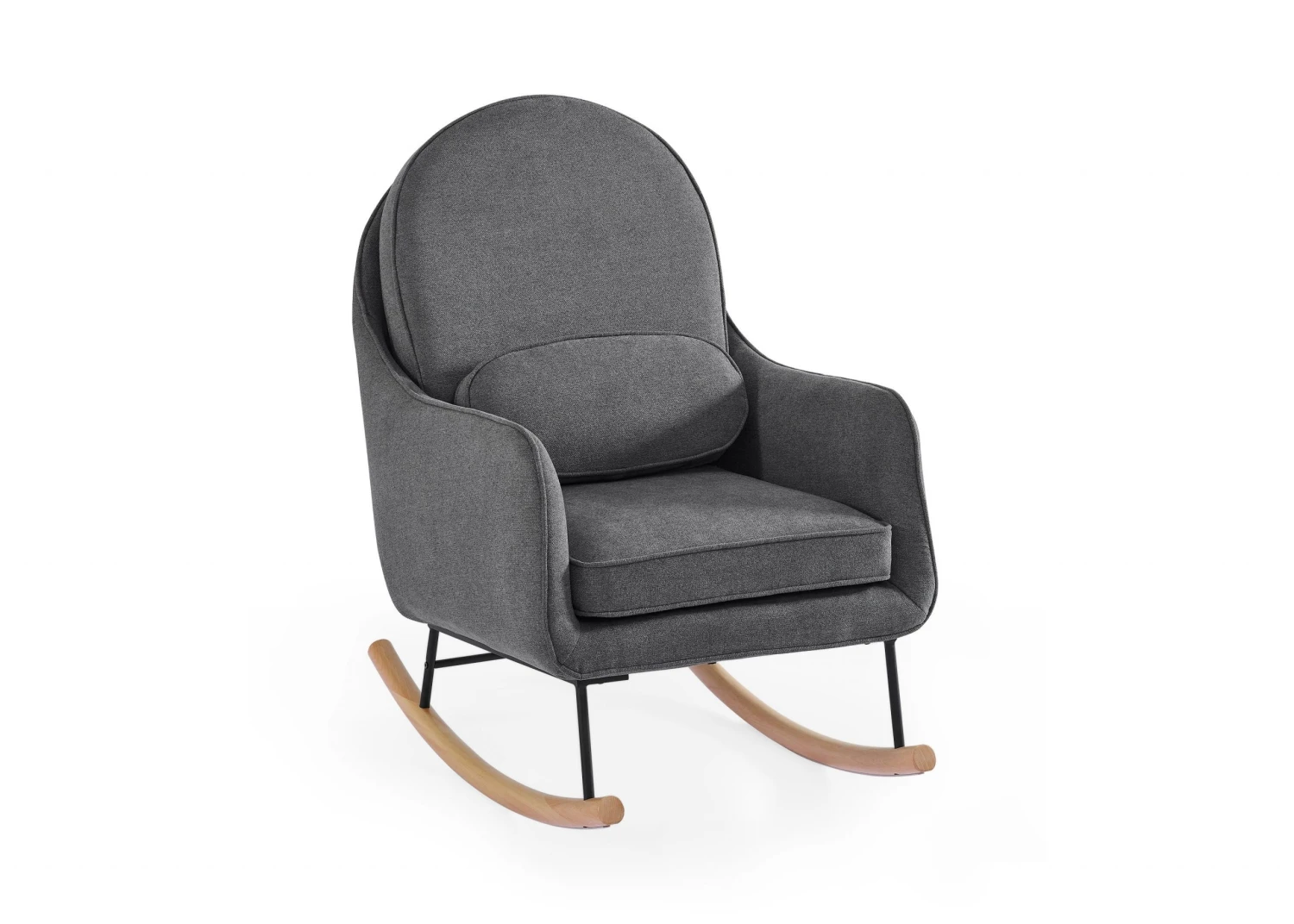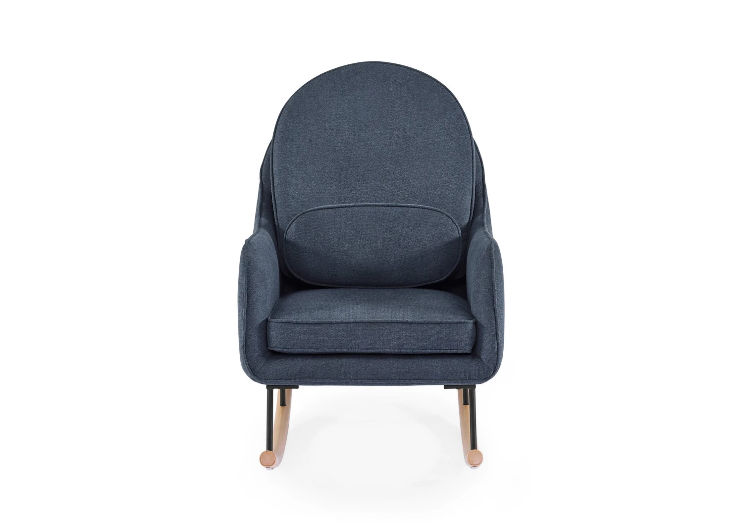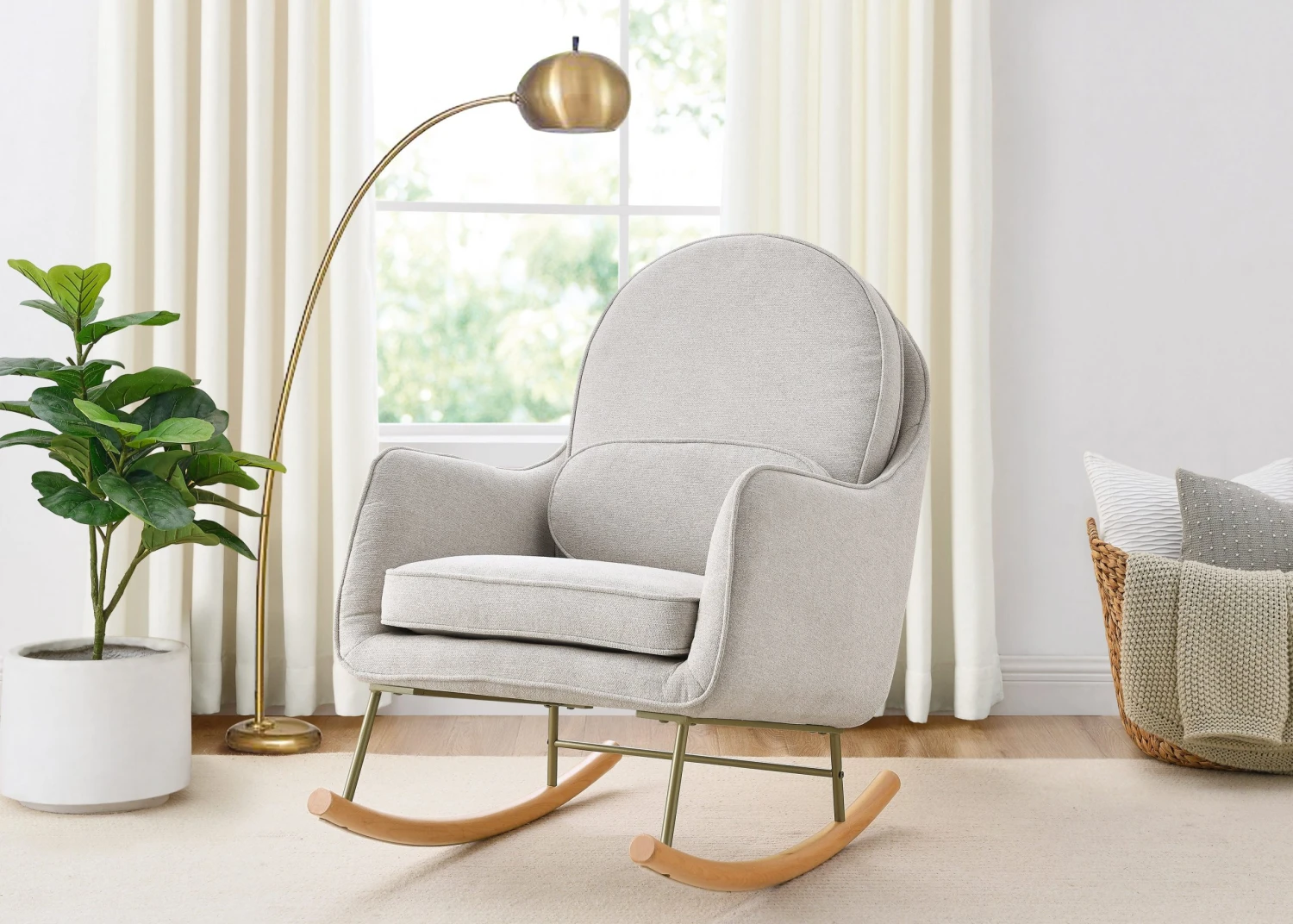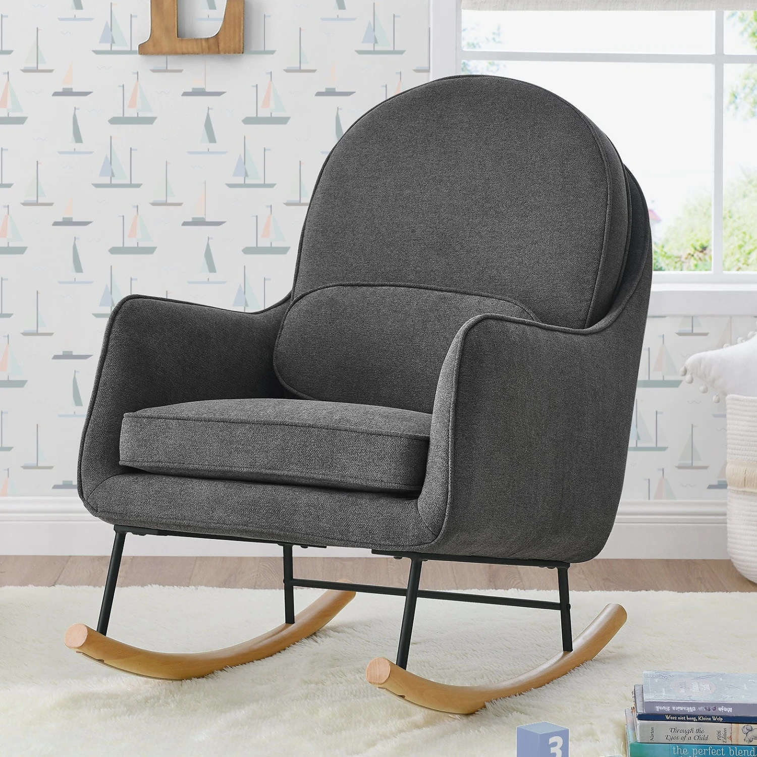 Add a stylish and sustainable seat to your nursery (or any other room in the house!) with this Ella Rocker by Delta Children. Upholstered in LiveSmart Evolve fabric, it brings together three incredible qualities to create a superior performance fabric: recycled fibers, water repellency, and stain resistance. Made with at least 30% of high-quality polyester yarn created from recycled post-consumer plastic bottles, this durable fabric helps divert plastics from landfills. Plus, it’s as comfy and beautiful as it is good for the environment. Designed with modern rounded curves, a metal base and solid wood feet, this rocking chair includes a movable lumbar cushion for additional support. The perfect choice for busy families, its stain-resistant and moisture repelling abilities make it the smart choice for high traffic areas like the nursery or living room. Now, you can live worry-free from stains or spills AND be a part of positive change! Pair with the coordinating Ella Ottoman to complete the look. Available in Limestone, Stone Grey and Slate Blue.