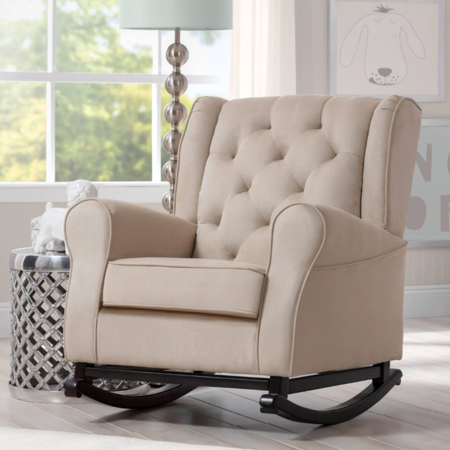 Your baby’s new nursery won’t be complete without a plush rocking chair, and the Emma Nursery Rocking is the perfect way to finish the space. Crafted to comfort tired babies and parents, this chair features a thickly padded seat cushion and armrests, plus it sits above wood rocker feet that create a smooth swaying motion. Its classic styling allows for it feel right at home in a nursery, living room or any shared space that needs a cozy spot.