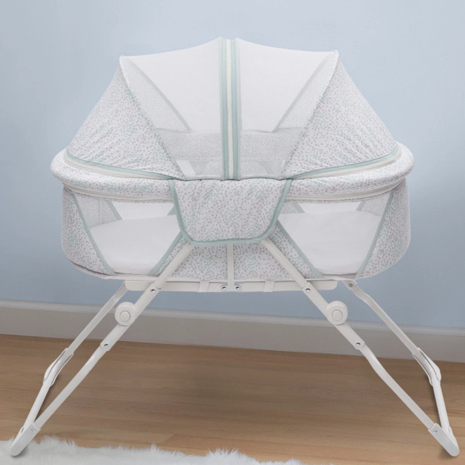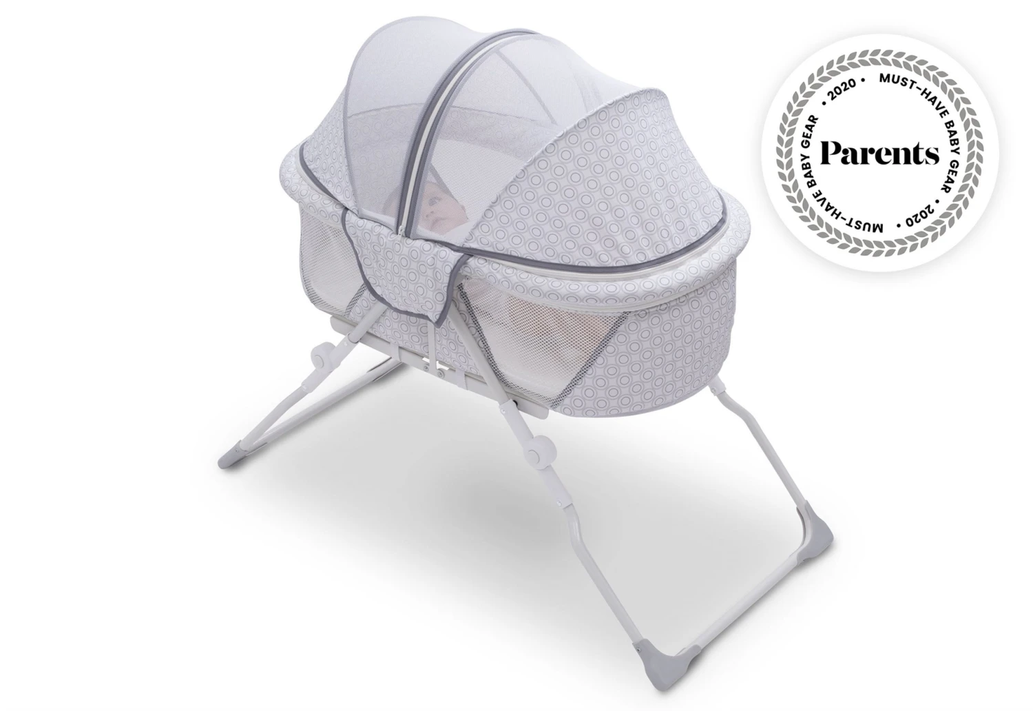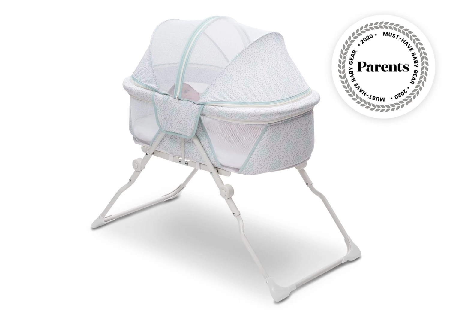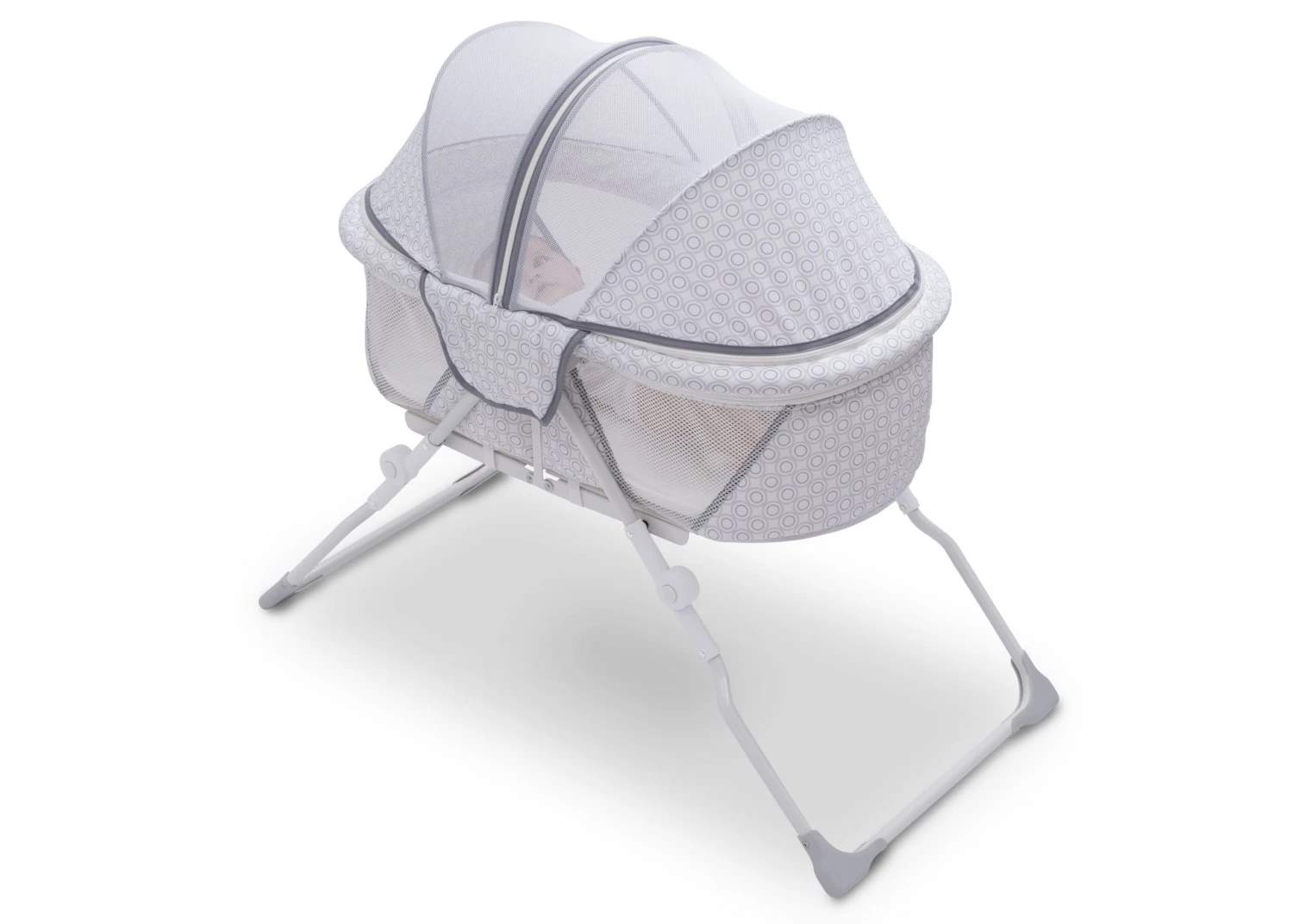 Whether you’re traveling with your baby or in need of a portable sleeper in your home, the EZ Fold Ultra Compact Travel Bassinet from Delta Children makes naptime and bedtime a breeze! The most compact full size bassinet available, this sleeper ensures your baby has the room they need to rest comfortably while the lightweight design means you can bring it anywhere and everywhere without trouble. Easy to setup and store away, the bassinet requires no assembly, and folds flat—the included travel bag makes every outing with Baby stress-free. Designed with mesh panels on the sides for airflow and increased visibility, the EZ Fold Ultra Compact Travel Bassinet provides the ideal environment for rest and relaxation. The bassinet’s removable canopy protects your little one from curious pets, mosquitos and other insects, and then effortlessly zips off when not needed.