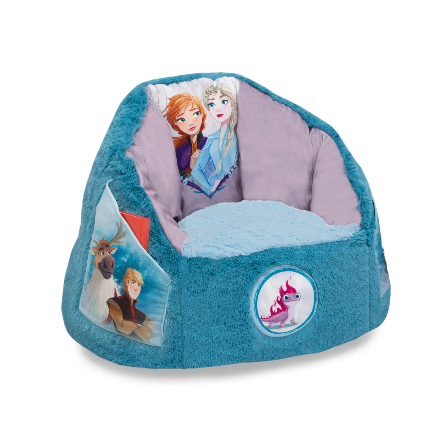 This Disney Frozen Cozee Fluffy Chair by Delta Children will add enchanting style to any space. Featuring colorful graphics of Anna and Elsa, this magical kids’ chair with pockets on both sides is the cutest and most convenient seating option for your little one. Stuffed with a shredded foam that contours to your child’s body, it delivers more comfort and support than traditional bean bag chairs. The perfect chair for reading, playing or snuggling, the plush faux fur cover and supportive back help give kids an oh-so-cozy spot to call their own, and its lightweight design means it can go anywhere your child goes. The innovative foam construction will keep its shape for long-lasting use that will accommodate to your child’s needs, year after year. Plus, the chair’s non-slip bottom ensures it stays in place. It’s the perfect chair for your playroom, bedroom or living room.