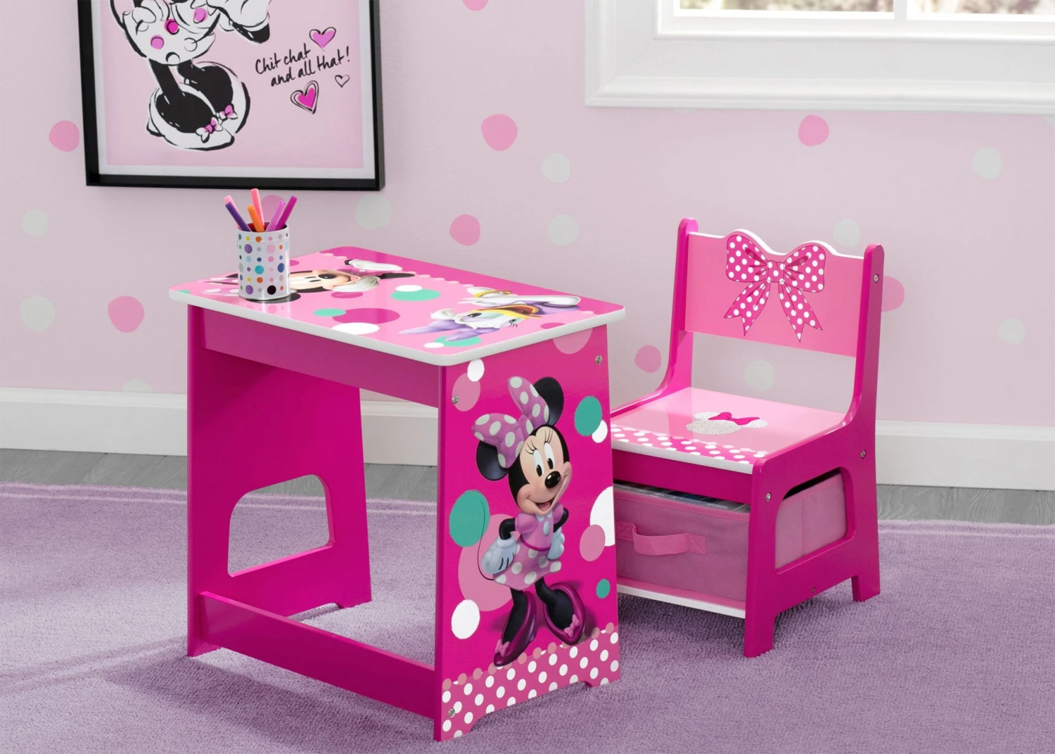 - FOR THE MINNIE MOUSE FAN: This kids desk and chair set features colorful graphics of Minnie Mouse and Daisy Duck