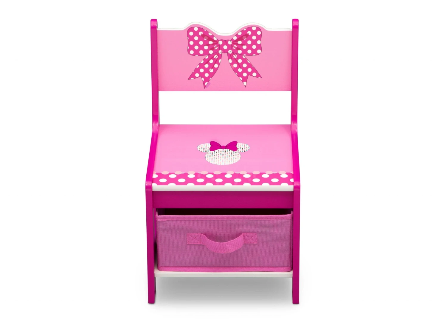 Add a dash of animated fun to playtime, mealtime or study time—with the Minnie Mouse Kids Desk and Chair Set by Delta Children! Perfectly sized for your little Mouseketeer, your child will love sitting down at this coordinating, desk and chair set, featuring adorably charming graphics of Minnie Mouse and her bestie, Daisy Duck. Minnie’s signature bow, with of course, plenty of pink tones and polka dots allover enhance the cuteness. The desk provides the perfect space for your child to do homework, art projects or eat, while the cleverly designed chair features a storage bin underneath for easy access to art supplies, toys, books, or games! A smart and sturdy option for your child’s bedroom or playroom, this durably constructed wood desk and chair set will stand up to years of use. Bring home the cheerful spirit of Minnie Mouse and her friends to your little one’s Clubhouse with this Kids Desk and Chair Set.