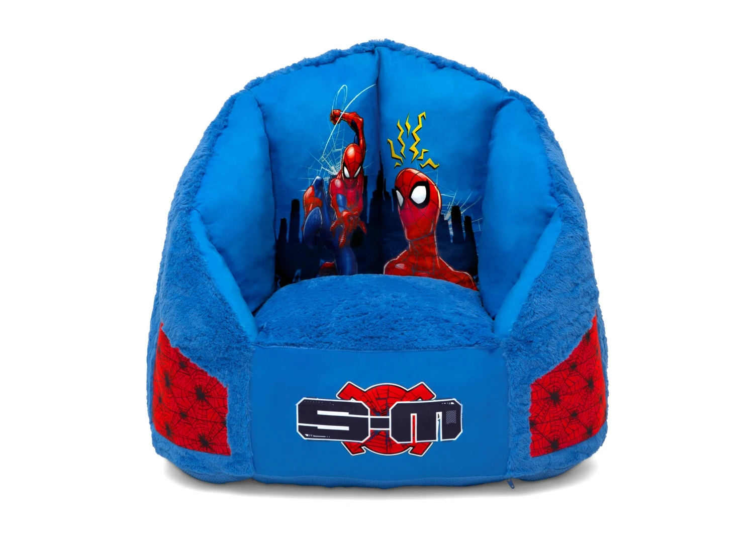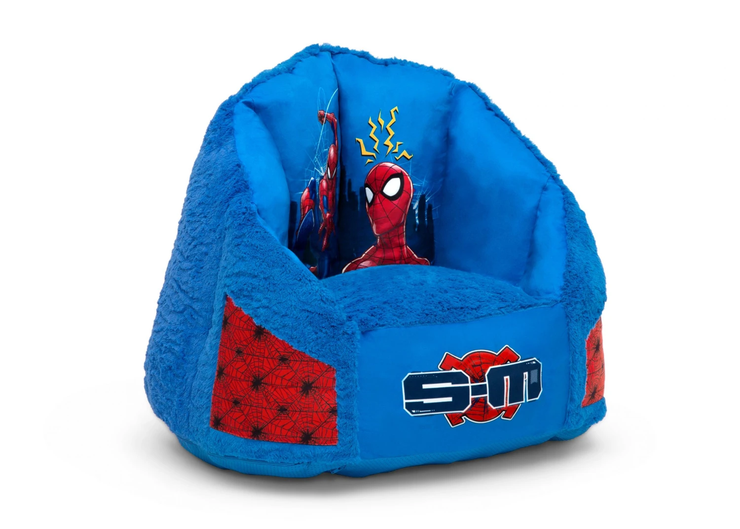 Give your superhero-in-training a comfy place to relax with this Spider-Man Cozee Fluffy Chair by Delta Children. This kids’ chair captures Spidey’s essence perfectly with its cool Spider-Man-inspired graphics, embroidered detailing and pockets on both sides. Stuffed with a shredded foam that contours to your child’s body, it delivers more support than traditional bean bag chairs. The memory foam seat provides added comfort. The perfect chair for reading, playing or snuggling, the plush faux fur cover and supportive back help give kids an oh-so-cozy spot to call their own, and its lightweight design means it can go anywhere your child goes. The innovative foam construction will keep its shape for long-lasting use that will accommodate to your child’s needs, year after year. Plus, the chair’s non-slip bottom ensures it stays in place. It’s the perfect chair for your playroom, bedroom or living room.