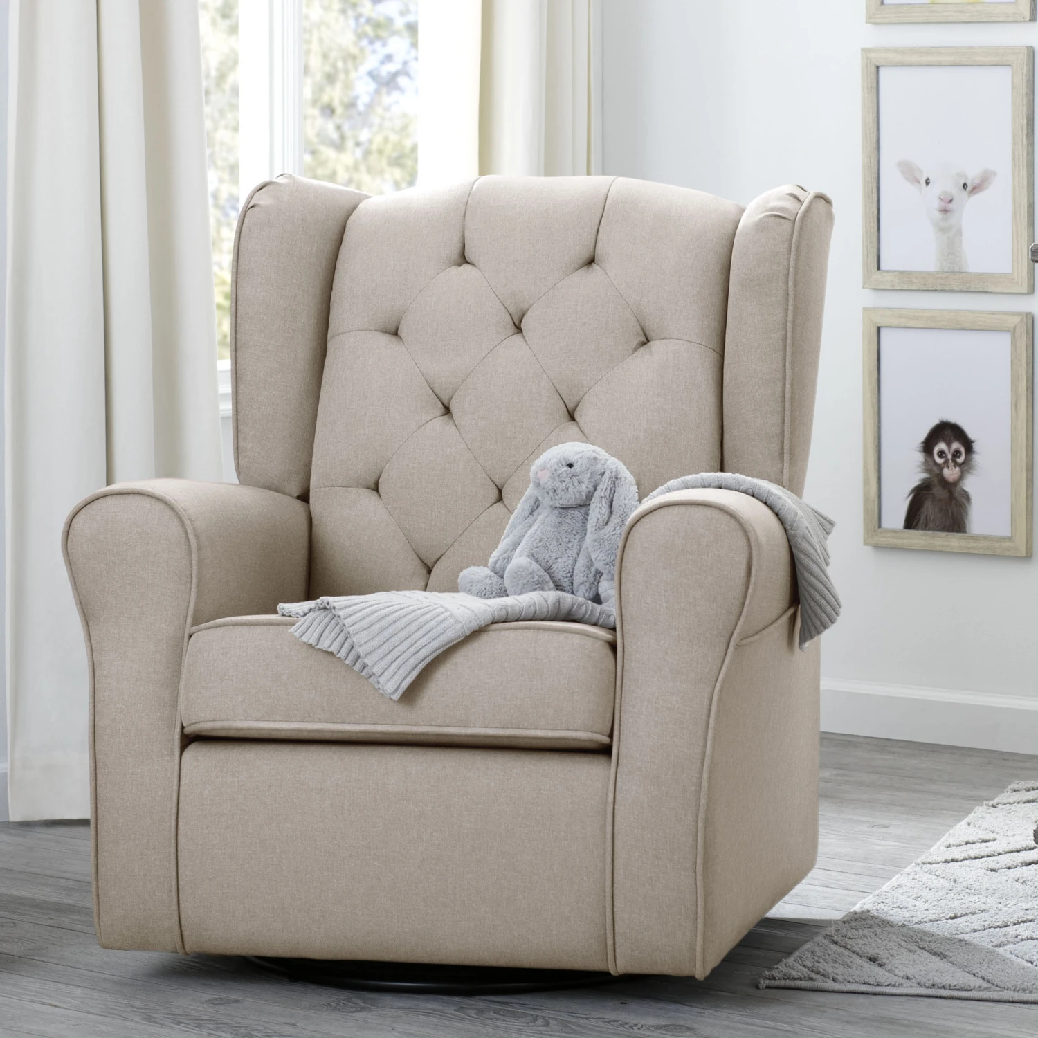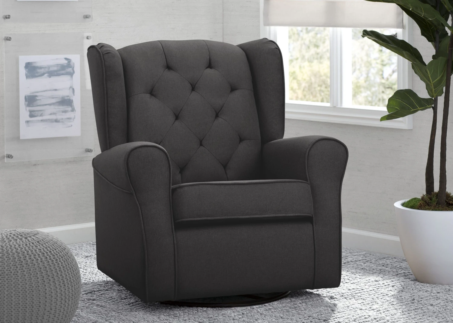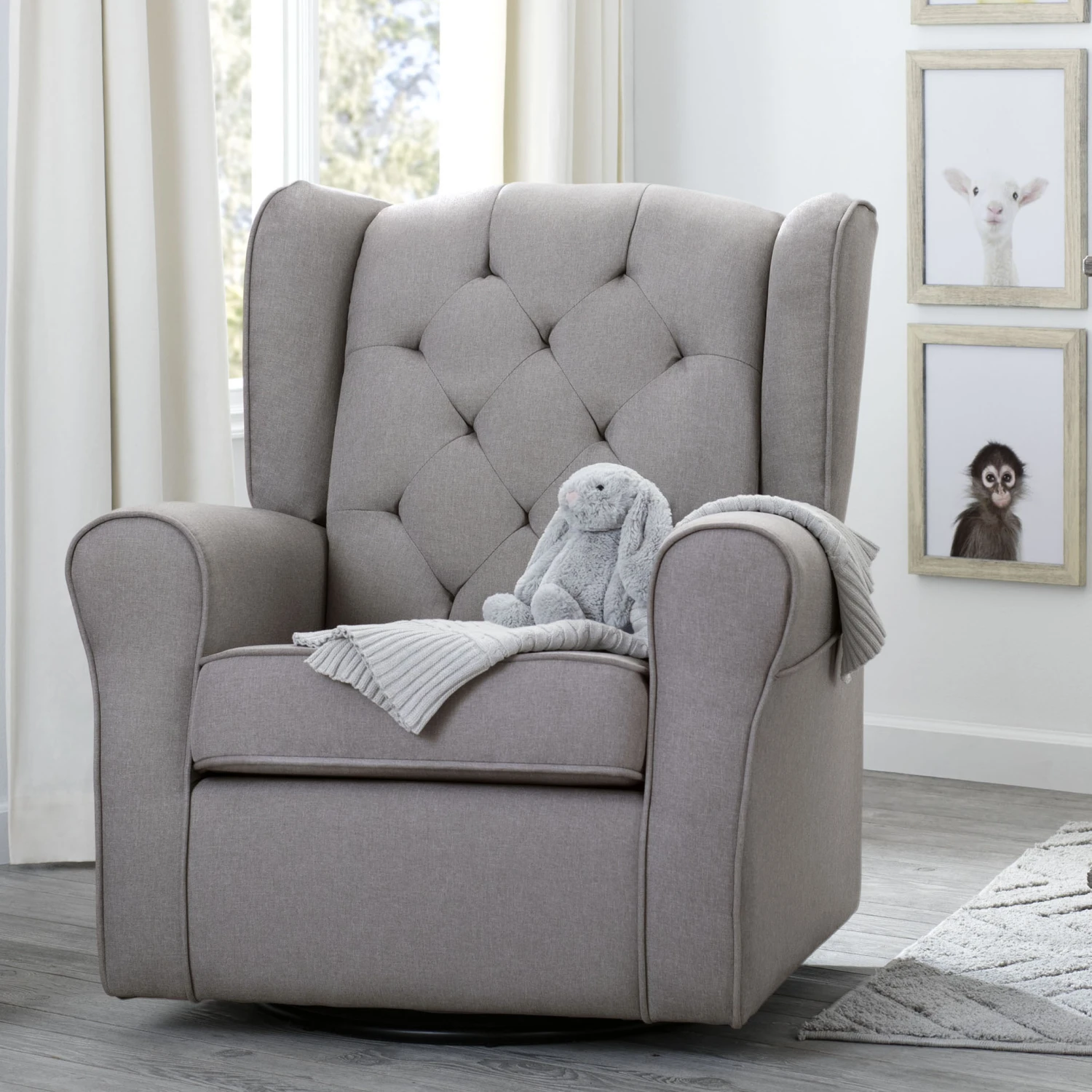 No nursery is complete without a plush glider, and the Emma Nursery Glider is the perfect addition to your baby’s space. Crafted with parents and baby in mind, it features a sweet, traditional design complete with thick cushions and steel gliding and swivel mechanisms to quietly rock baby to sleep