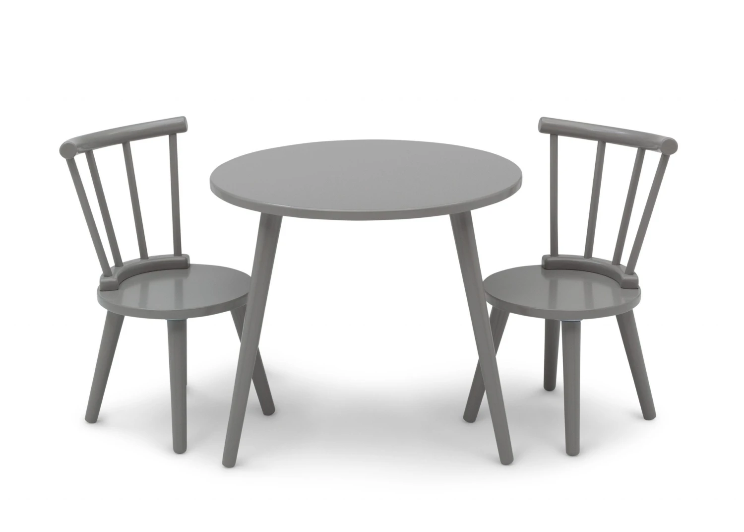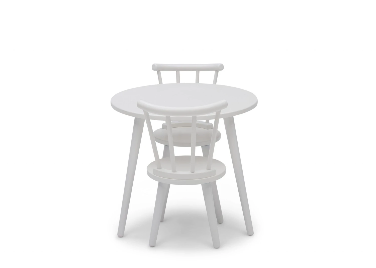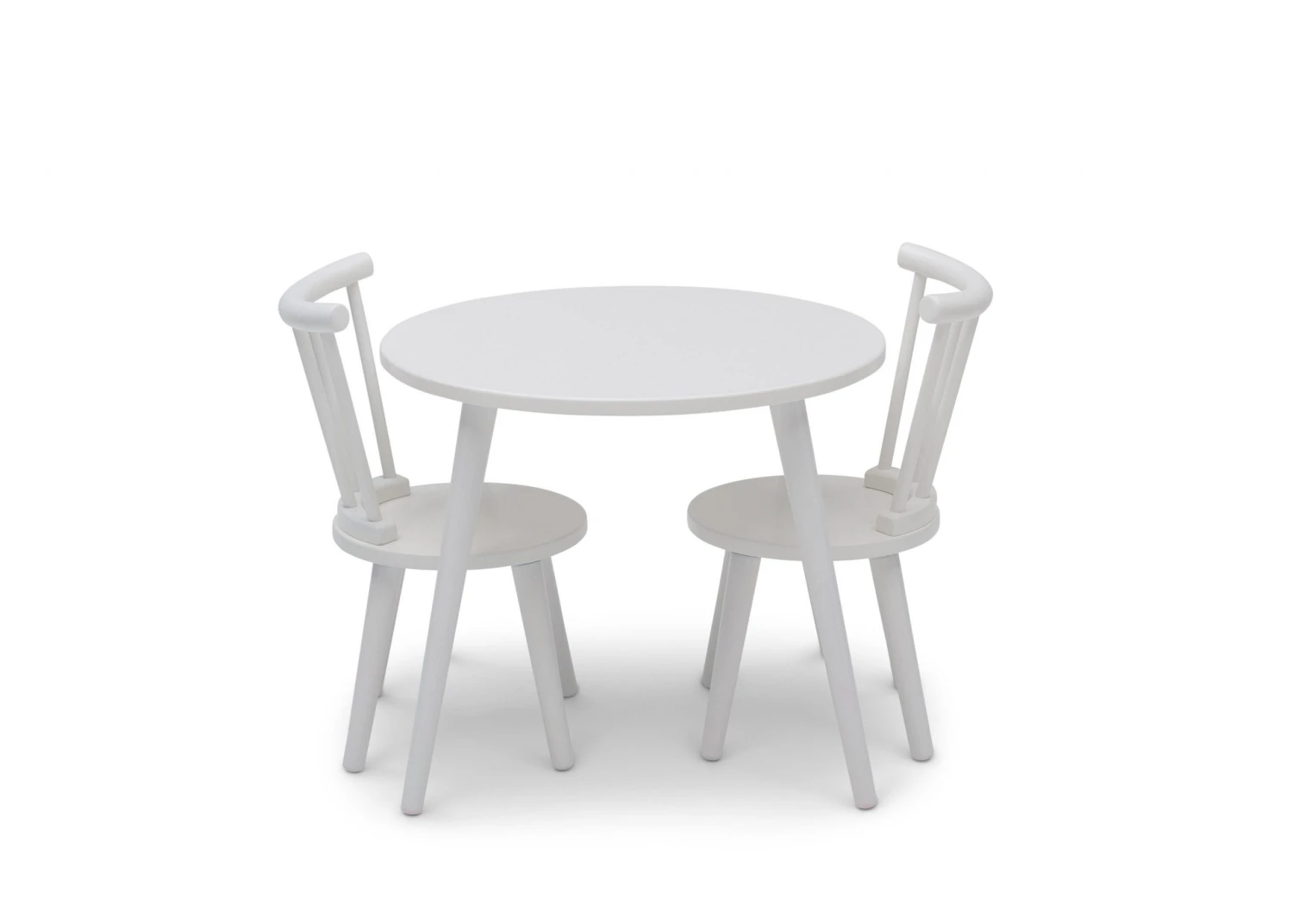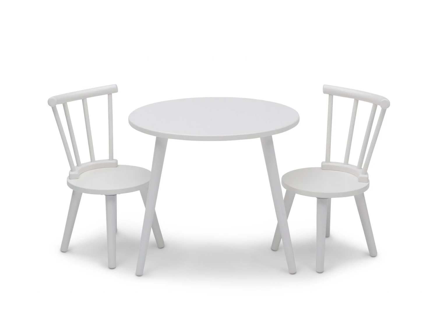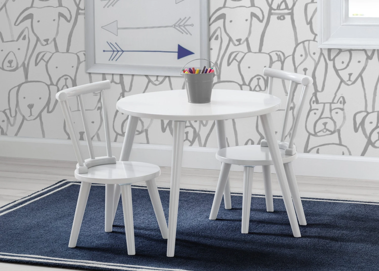 Your little one will use the Homestead Kids Table and Chair Set by Delta Children to play, create and learn. This sturdy wooden set includes a table and two coordinating chairs designed in a traditional American style. The table features a round top and the chairs feature a recognizable Windsor-style silhouette with vertical spokes and curved backs. A great play table that you’ll love as much as they do, it’s the prefect option for kids’ bedrooms and playrooms yet stylish enough for shared living space. Completely kid-friendly, the set is the ideal height for growing children and growing families. For additional seating, purchase the coordinating Homestead 2-Piece Chair Set (sold separately).