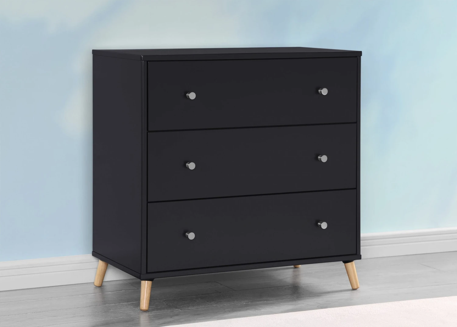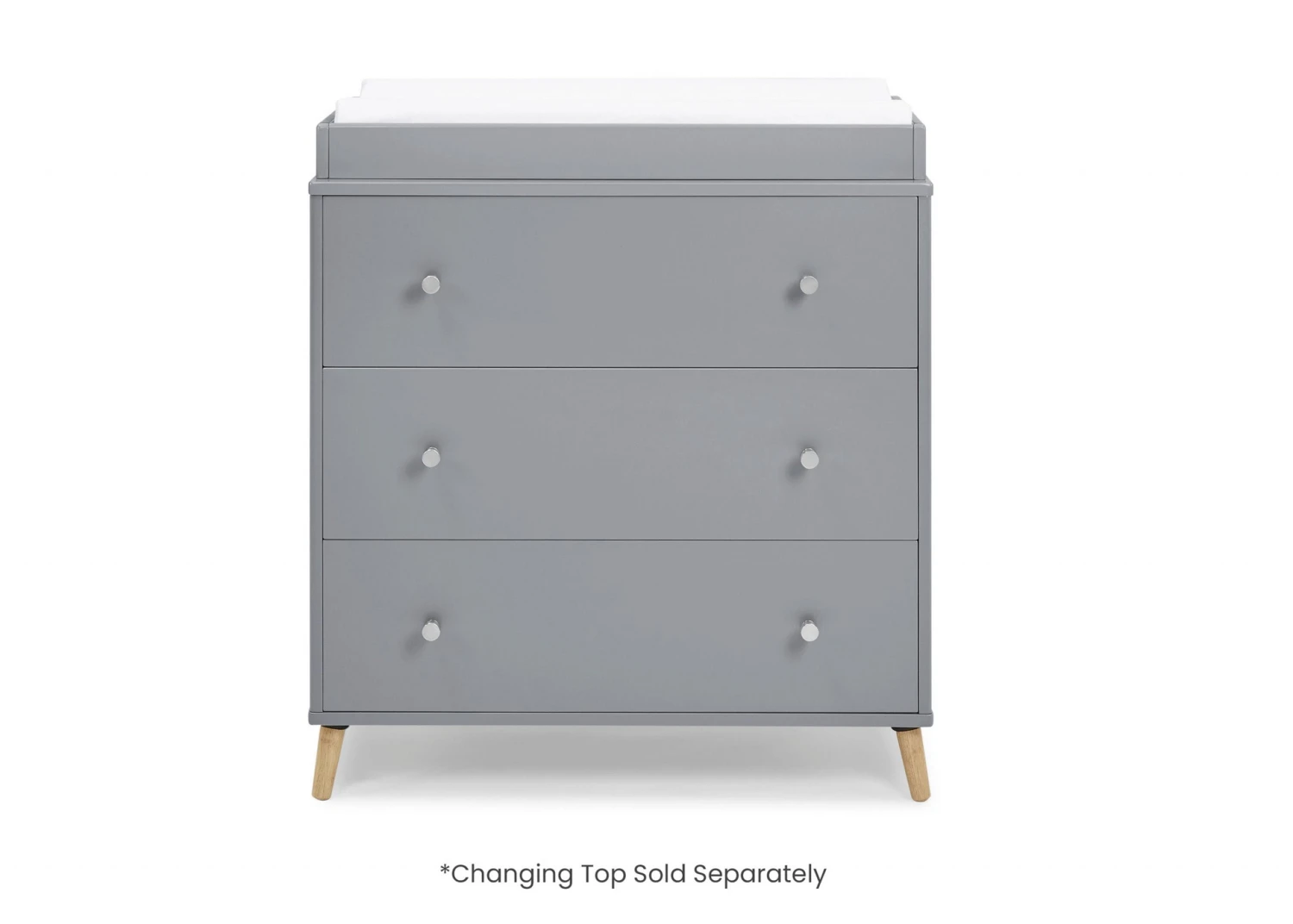 The Jordan 3 Drawer Dresser by Delta Children is a must-have storage unit for stylish parents and kids! Designed to elevate modern nurseries or bedrooms, it’s perfect accompaniment to your Jordan crib with its splayed feet and two-toned detailing. With three spacious drawers, this sturdy dresser provides a range of practical storage possibilities to suit all of your needs. Use it alone or attach the coordinating Changing Top #W100810 to create a secure and stylish changing table (Changing Top sold separately).