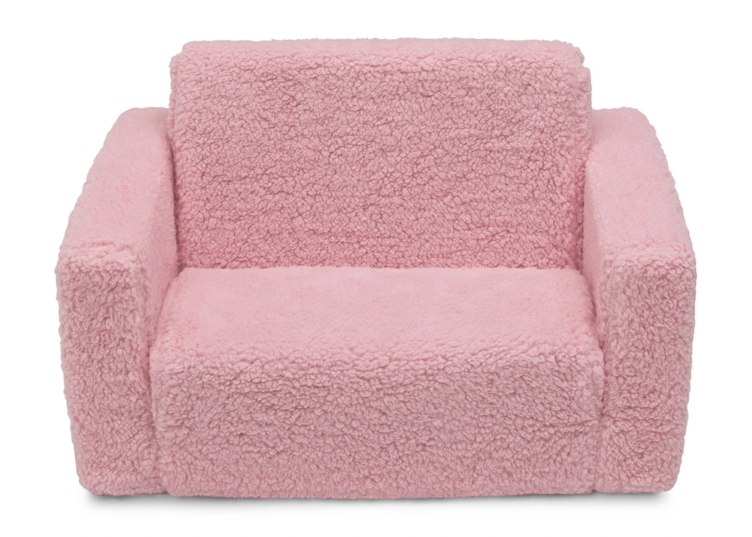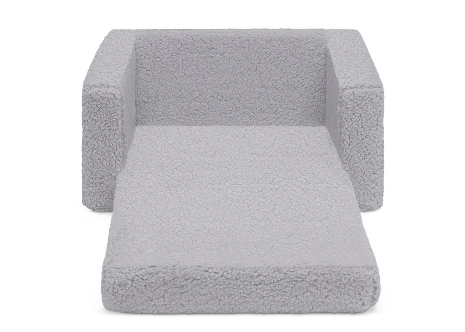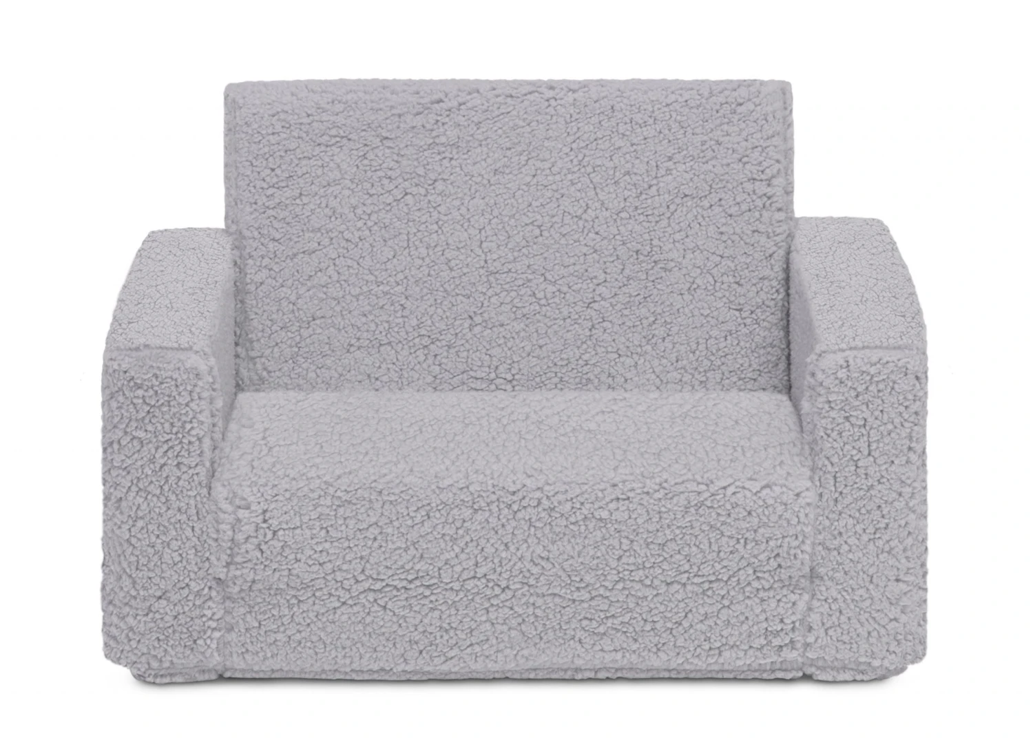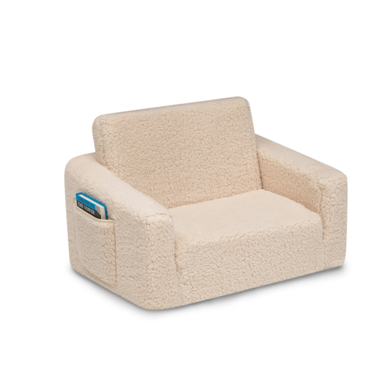 The Cozee Flip-Out Sherpa 2-in-1 Convertible Chair to Lounger by Delta Children is a cozy chair by day, laid-back lounger by night. This convertible seat easily flips open to reveal multiple ways for your child to relax–they’ll love to sit and read or watch their favorite movies on the chair but when it’s time for a nap, this seat folds out into a comfy sleeper bed. Big enough to fit two small kids comfortably in chair mode, it’s light enough to move around the house and is ideal for your children to share during playtime or sleepovers. The super-soft Sherpa slipcover with easy-to-reach side pocket creates the ultimate retreat for your little one. The supportive foam construction will keep its shape and provides all-day comfort. Designed to ship in a super-small box, this lightweight foam kids’ chair and lounger may take up to 24 hours to fully expand once unboxed. Machine-washable slipcover zips off for easy cleaning. Recommended for ages 18 months+.