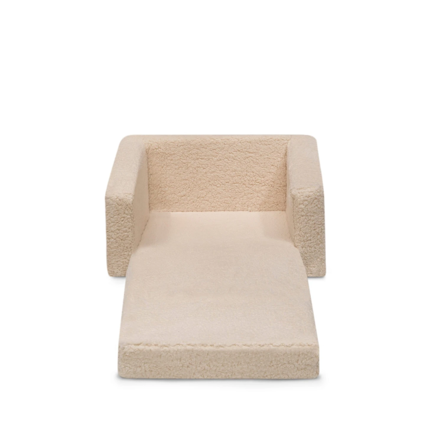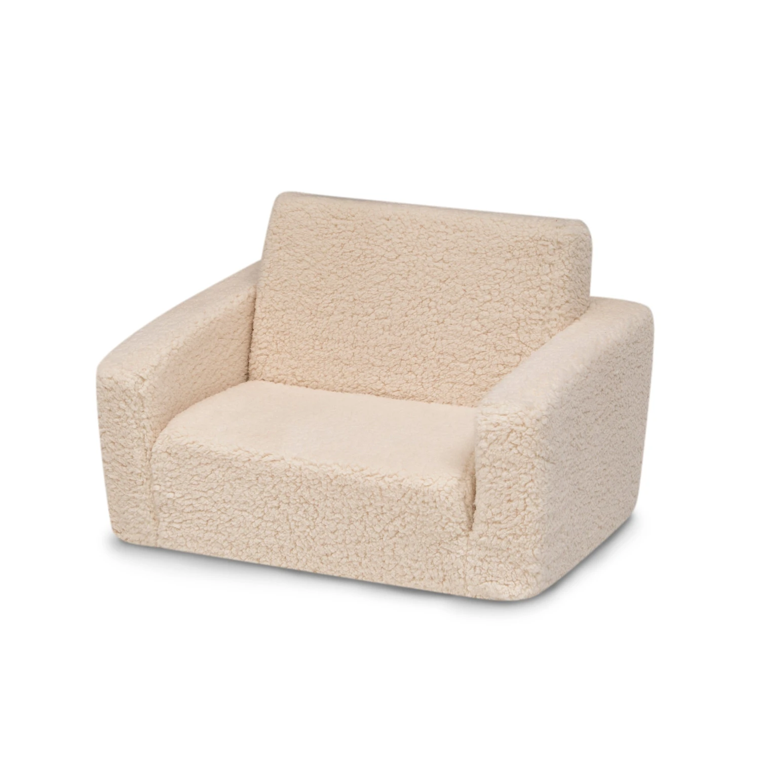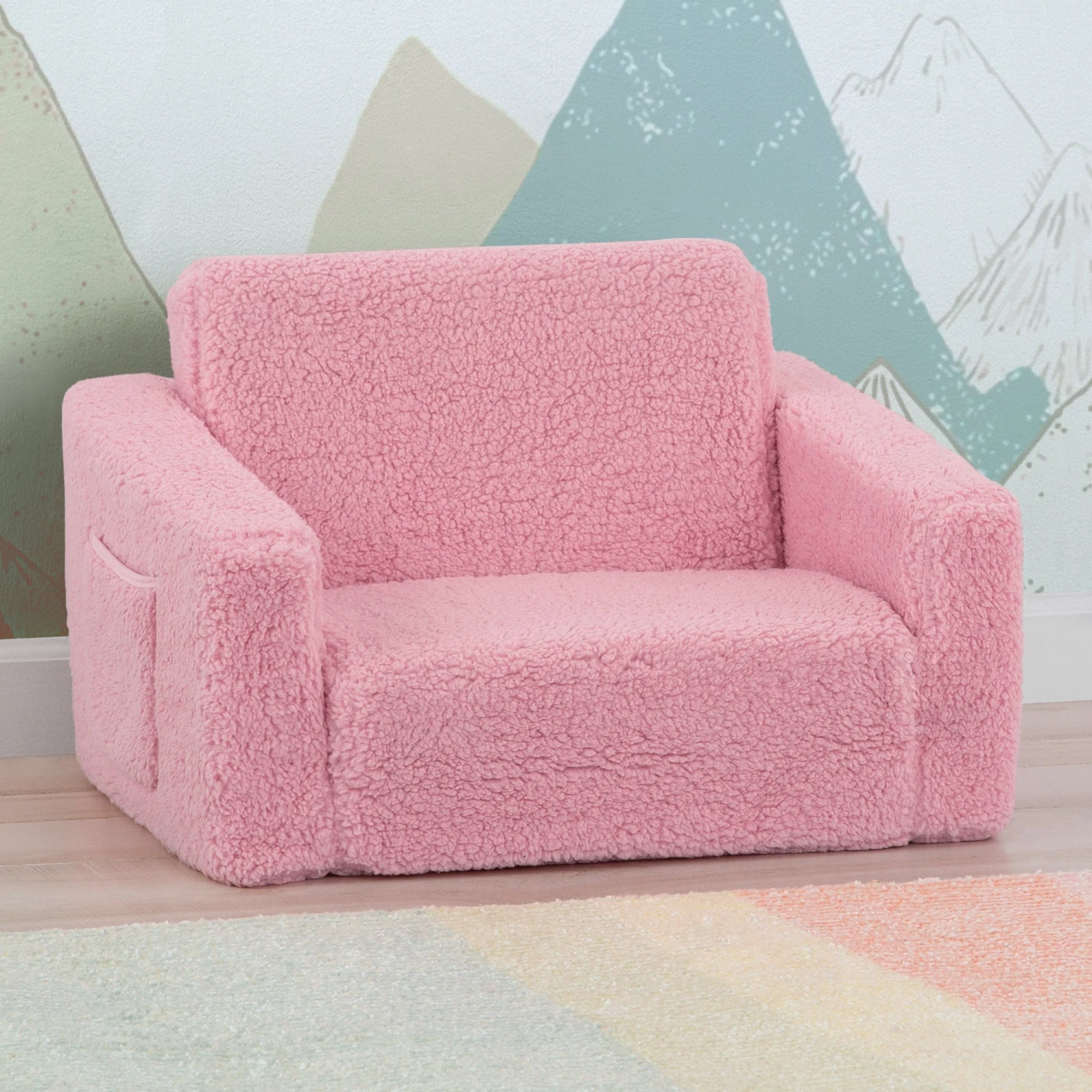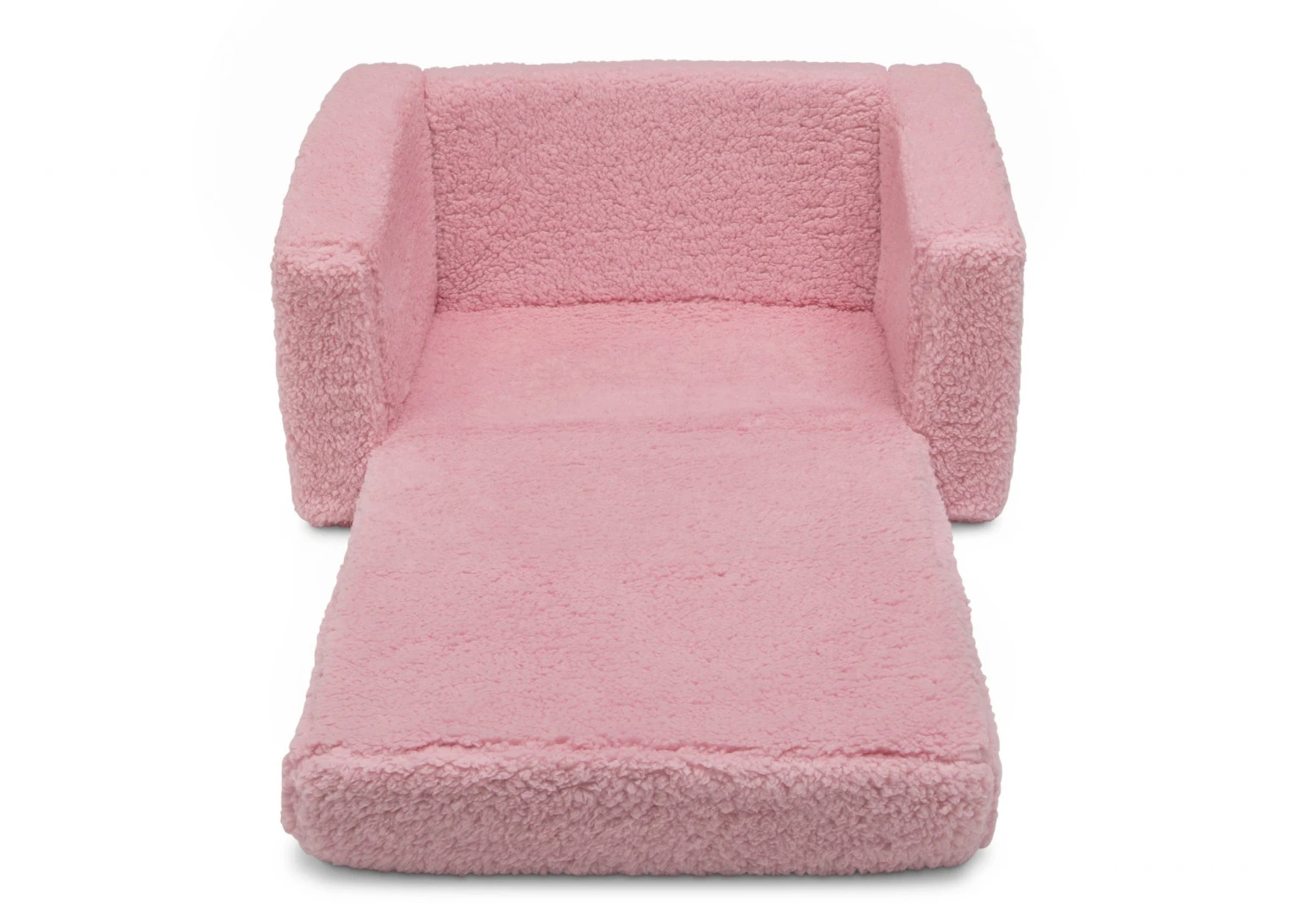 The Cozee Flip-Out Sherpa 2-in-1 Convertible Chair to Lounger by Delta Children is a cozy chair by day, laid-back lounger by night. This convertible seat easily flips open to reveal multiple ways for your child to relax–they’ll love to sit and read or watch their favorite movies on the chair but when it’s time for a nap, this seat folds out into a comfy sleeper bed. Big enough to fit two small kids comfortably in chair mode, it’s light enough to move around the house and is ideal for your children to share during playtime or sleepovers. The super-soft Sherpa slipcover with easy-to-reach side pocket creates the ultimate retreat for your little one. The supportive foam construction will keep its shape and provides all-day comfort. Designed to ship in a super-small box, this lightweight foam kids’ chair and lounger may take up to 24 hours to fully expand once unboxed. Machine-washable slipcover zips off for easy cleaning. Recommended for ages 18 months+.