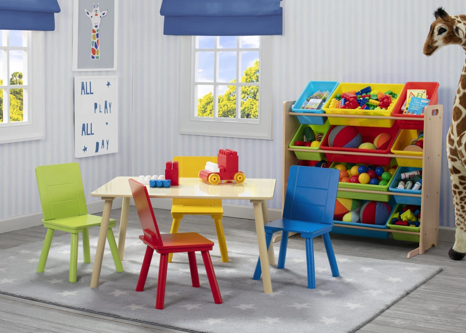 The Delta Children Kids Toy Storage Organizer with 12 Plastic Bins gives you everything you need to create a cute, clutter-free space! The 12 plastic bins are easy to remove and rearrange, and come in two sizes—eight standard size toy bins and four large toy bins that provide enough storage space for toys, games, dress-up clothes, books and more. The sturdy wood frame with four tiers holds the bins securely in place, and it’s the perfect kid-sized height to allow children (ages 3+) the ability to see and access all their favorite toys. The brightly colored plastic storage bins can help build your little one’s cognitive skills, too! They can explore color identification and sorting, which drives your child to think, learn remember and pay attention. This toy storage organizer comes in multiple color options that will look great in any room of your house, and coordinates with other products in Delta Children’s line of kids’ furniture. Color options include Natural with Primary Colored Bins, White with Pink Bins and Grey with Blue Bins.