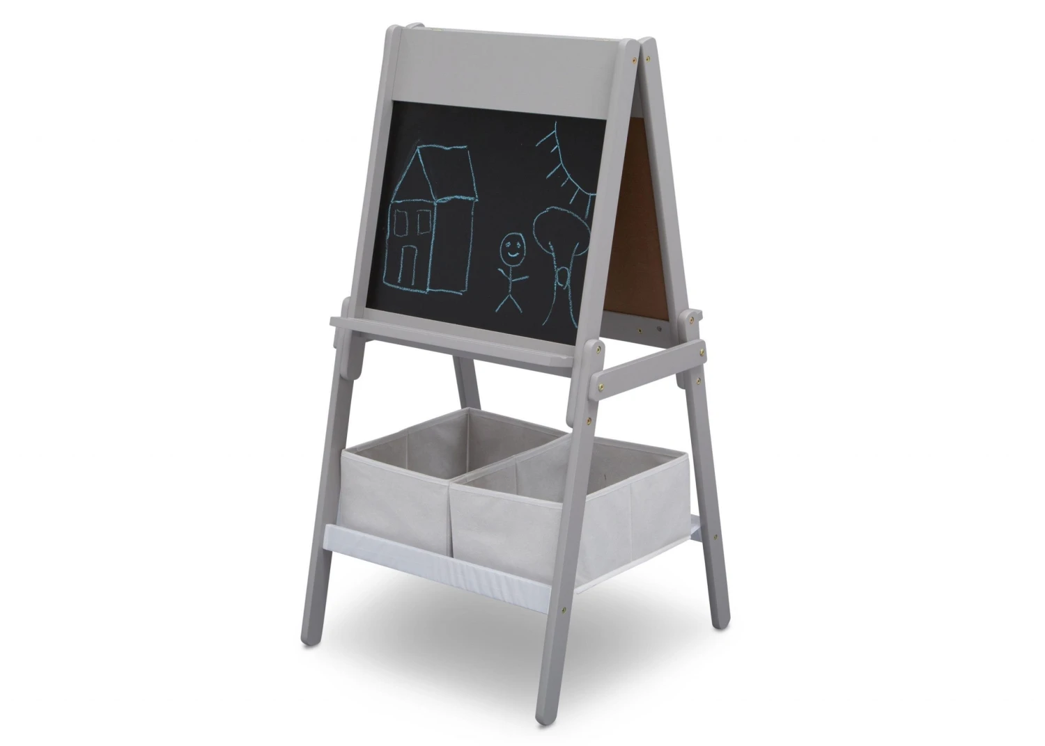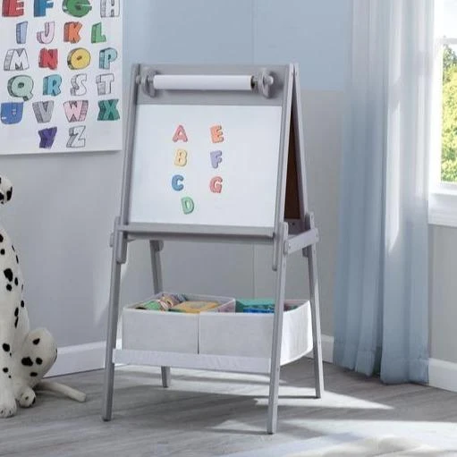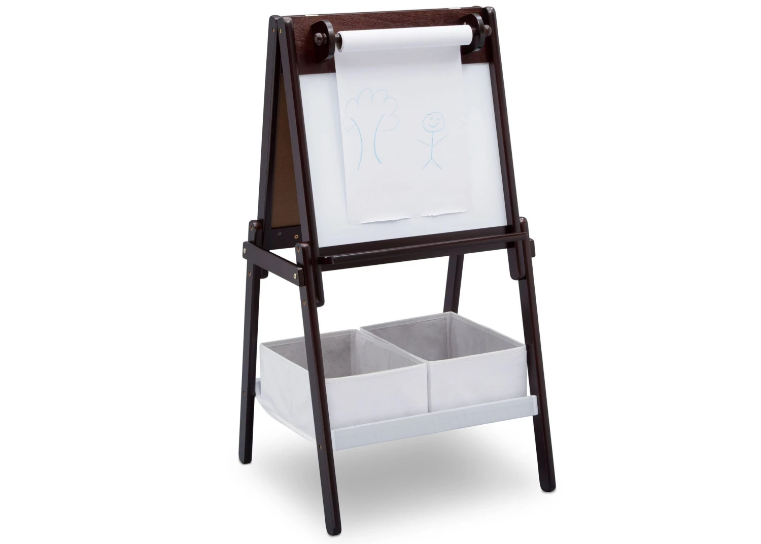 - Two convenient fabric storage bins keep crayons, markers, extra paper, paint or toys within reach