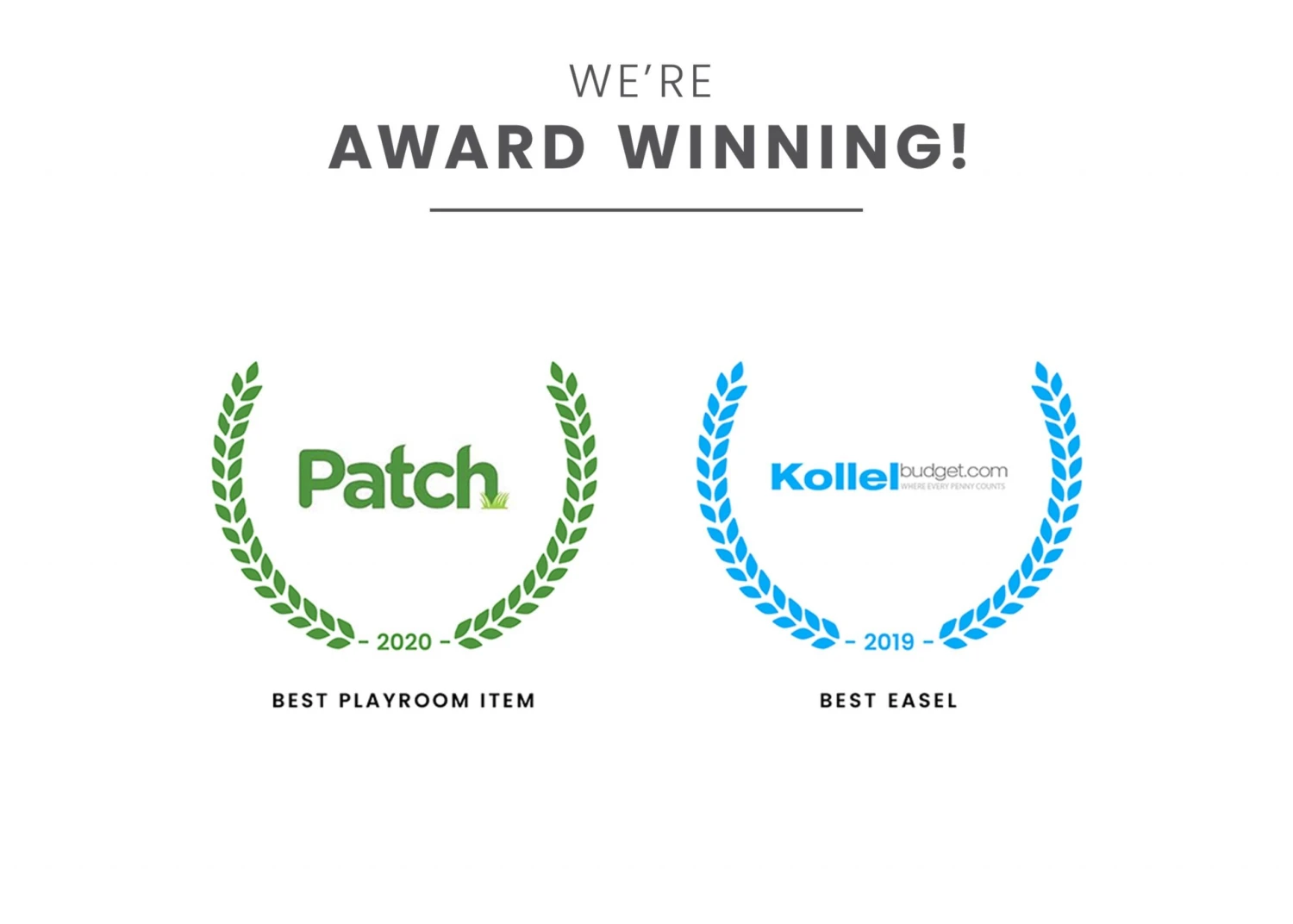 - Easel, bins and pull down paper roll with 33’ feet of paper