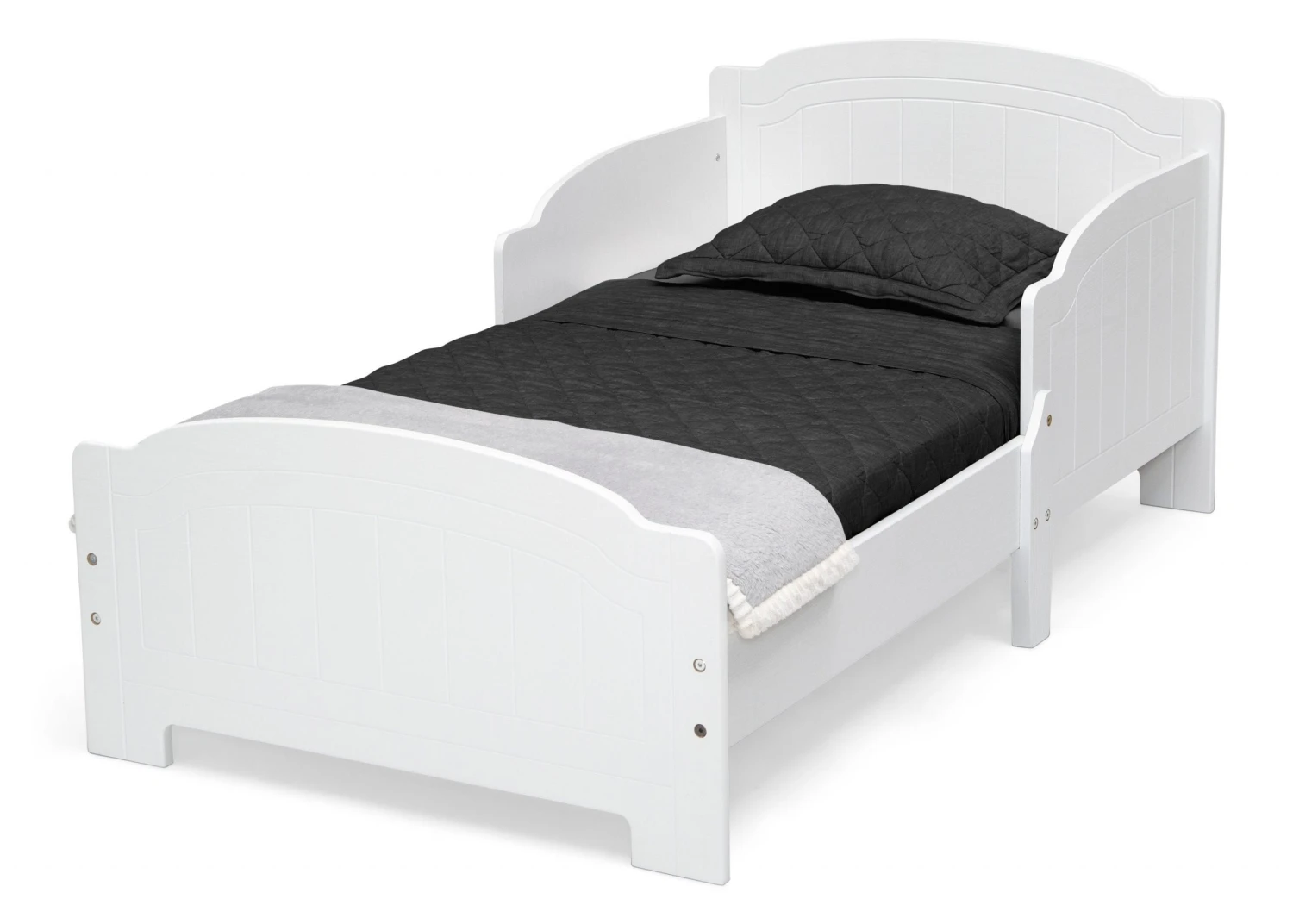 When your child is ready for a big-kid bed, the Newport Wood Toddler Bed by Delta Children is the perfect next step. Designed to encourage independence, it features built-in toddler guardrails create a safe sleep space that is easy for kids to get into and out of unassisted. The classic, elegant look of this wood toddler bed is inspired by costal charm with its gentle curves and shiplap-like paneling. Coordinates with other items in the Delta Children Newport Collection. Bed uses a standard size crib mattress (not included).
