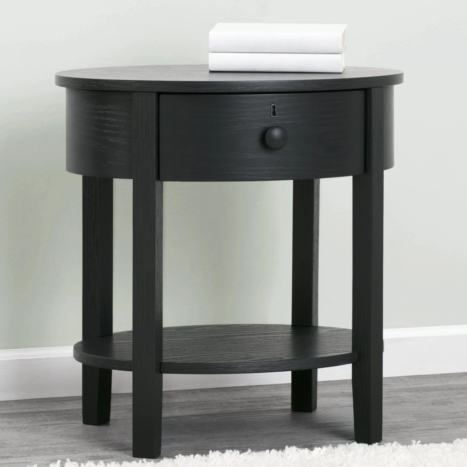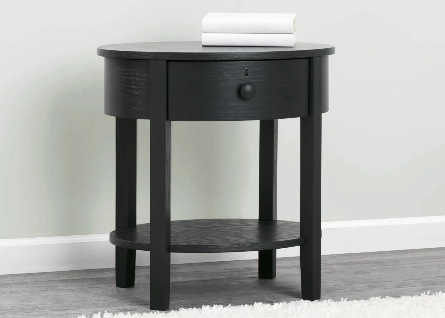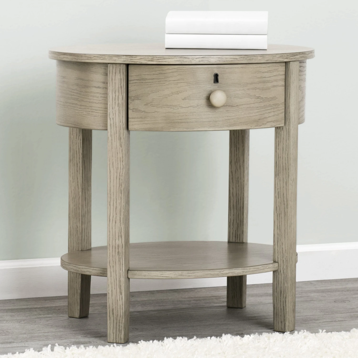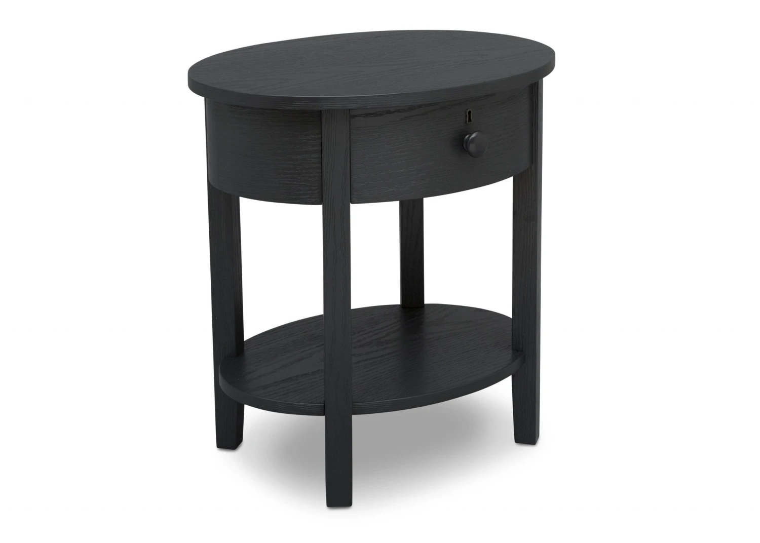 Designed with a playful oval silhouette and textured finish, the Farmhouse Nightstand will stay in style as your child grows. Both open and closed storage creates a functional display space for essentials, while tapered legs and keyhole detailing complete the look.