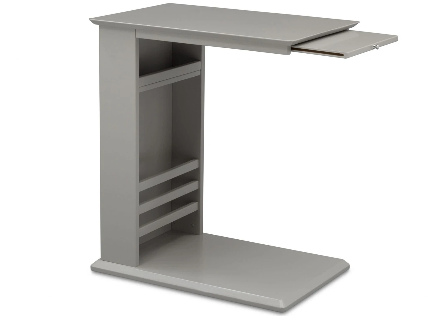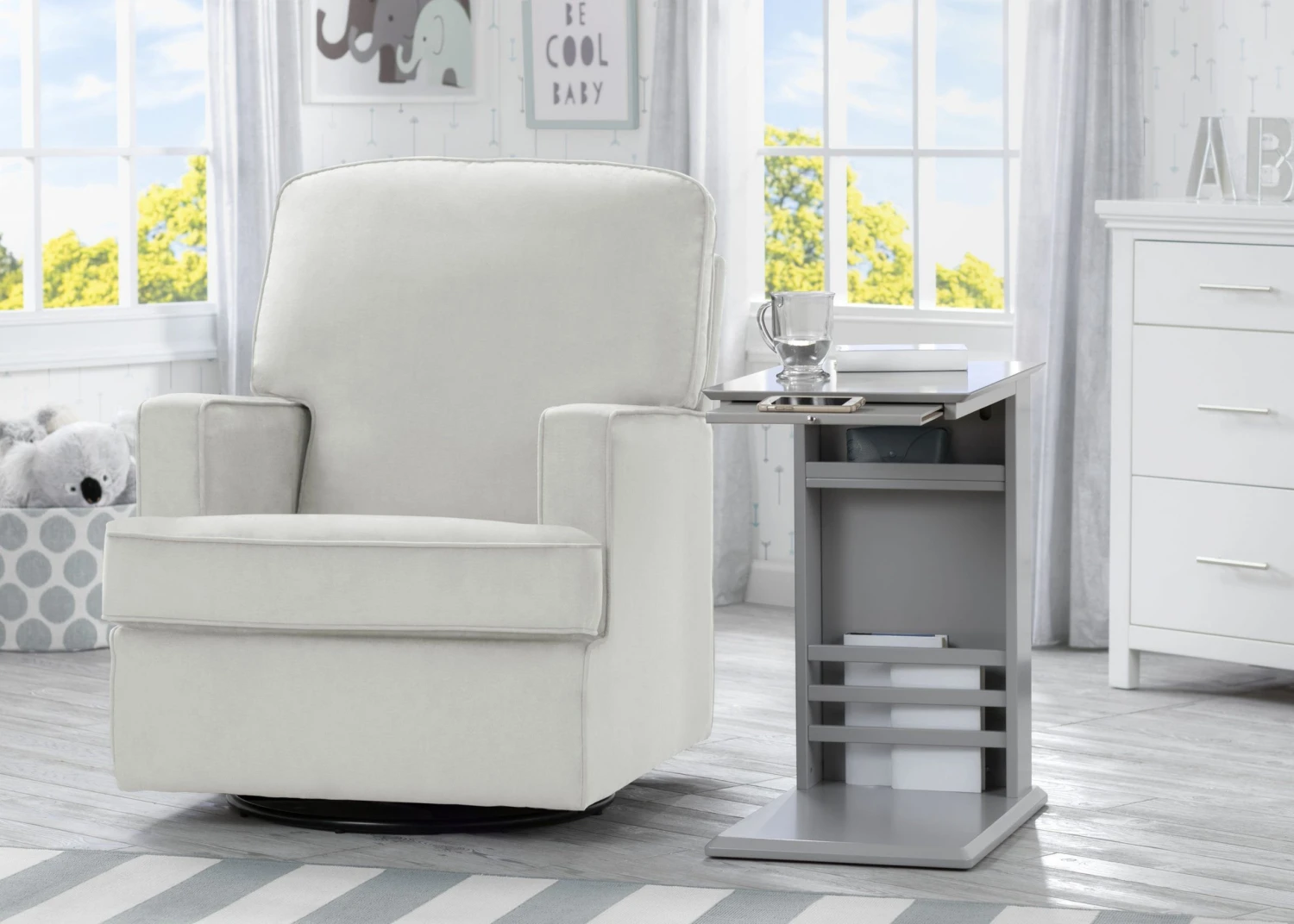 The simple lines and hidden storage on the Delta Children Nolan End Table/Side Table for the Nursery will keep your room looking great and organized! The thin base of the table can easily slide under/in front of most nursery gliders, sofas, couches or beds to make bottles, books, remotes or your phone easier to reach. A handy book rack on the side provides additional storage, and the spacious tabletop provides enough room for a lamp and knickknacks. A slide-out shelf below the tabletop offers an extra surface when you need it, then tucks away nicely when you don’t. A great space-saving option in any room of the house, from the nursery to the living room, the Nolan End Table/Side Table from Delta Children ensures you’ll always have all your essentials right beside you. Available in Ebony, Grey, Bianca White, Lotus Pink or Misty Blue.