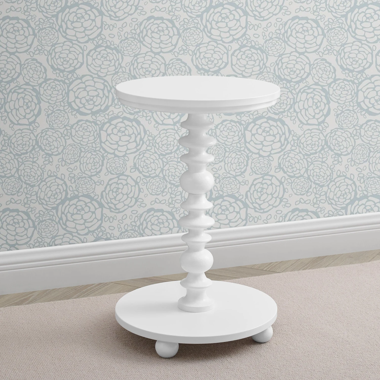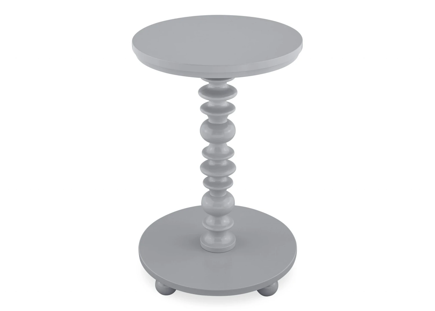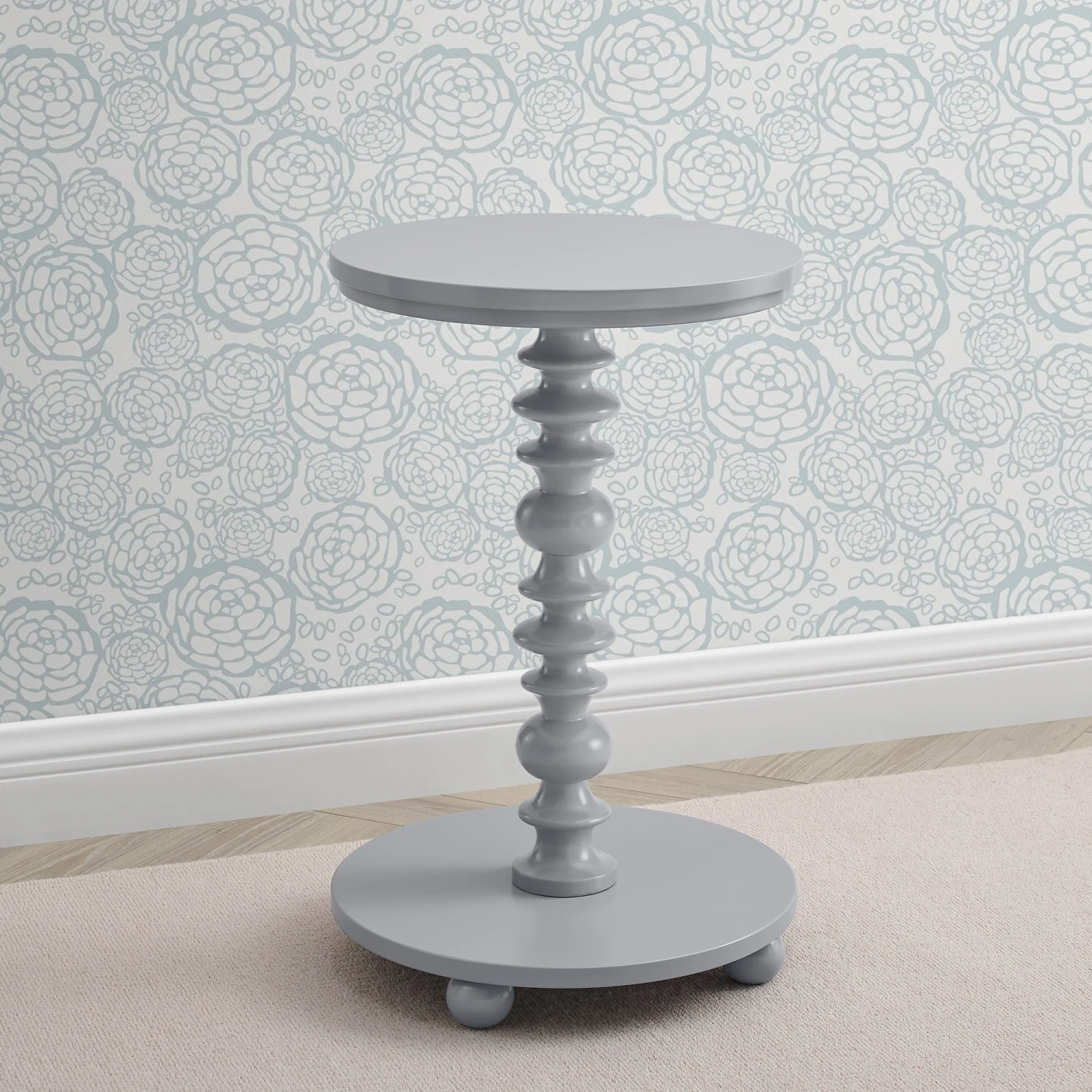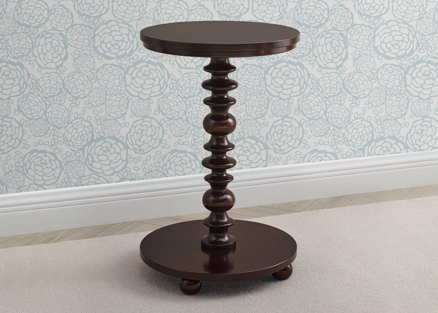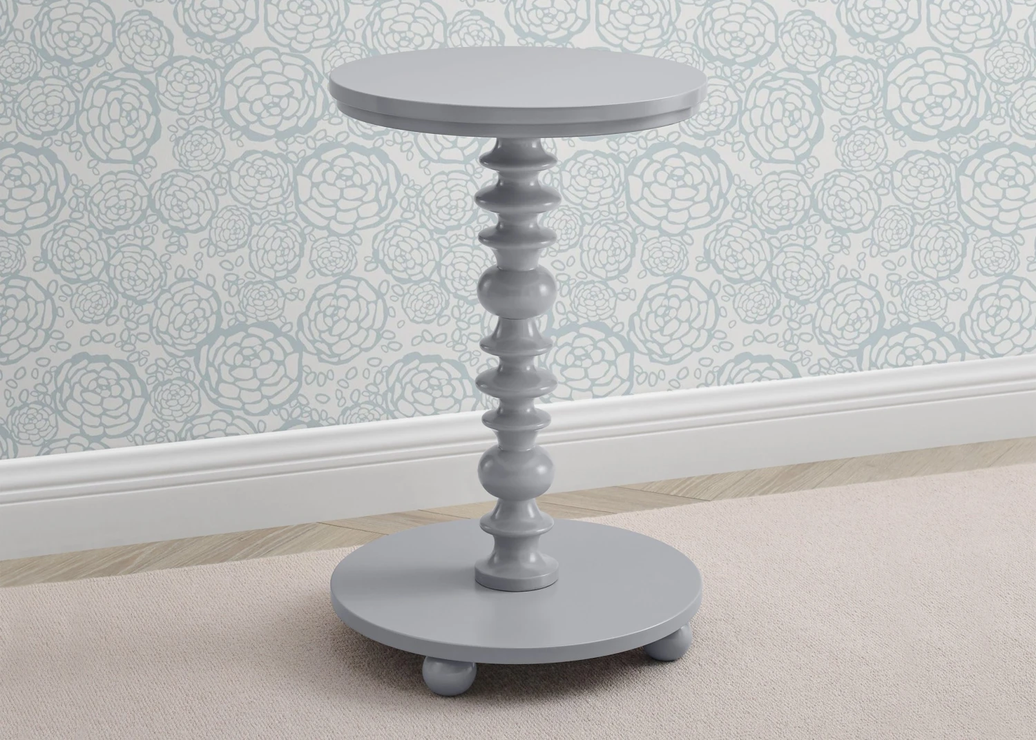 The Palmer End/Side Table by Delta Children is a well-rounded option for your baby’s nursery, your living room or bedroom. Featuring an elegant and charming design, this accent table pairs a round top and feet with intricate wood turnings in classic Jenny Lind style. Extremely versatile, use the Palmer End/Side Table in any room–its top is large enough to fit a lamp, stack of books and other knick-knacks while its height makes it the perfect companion to any glider, sofa or chair. Available in Grey, Bianca White and Dark Chocolate.