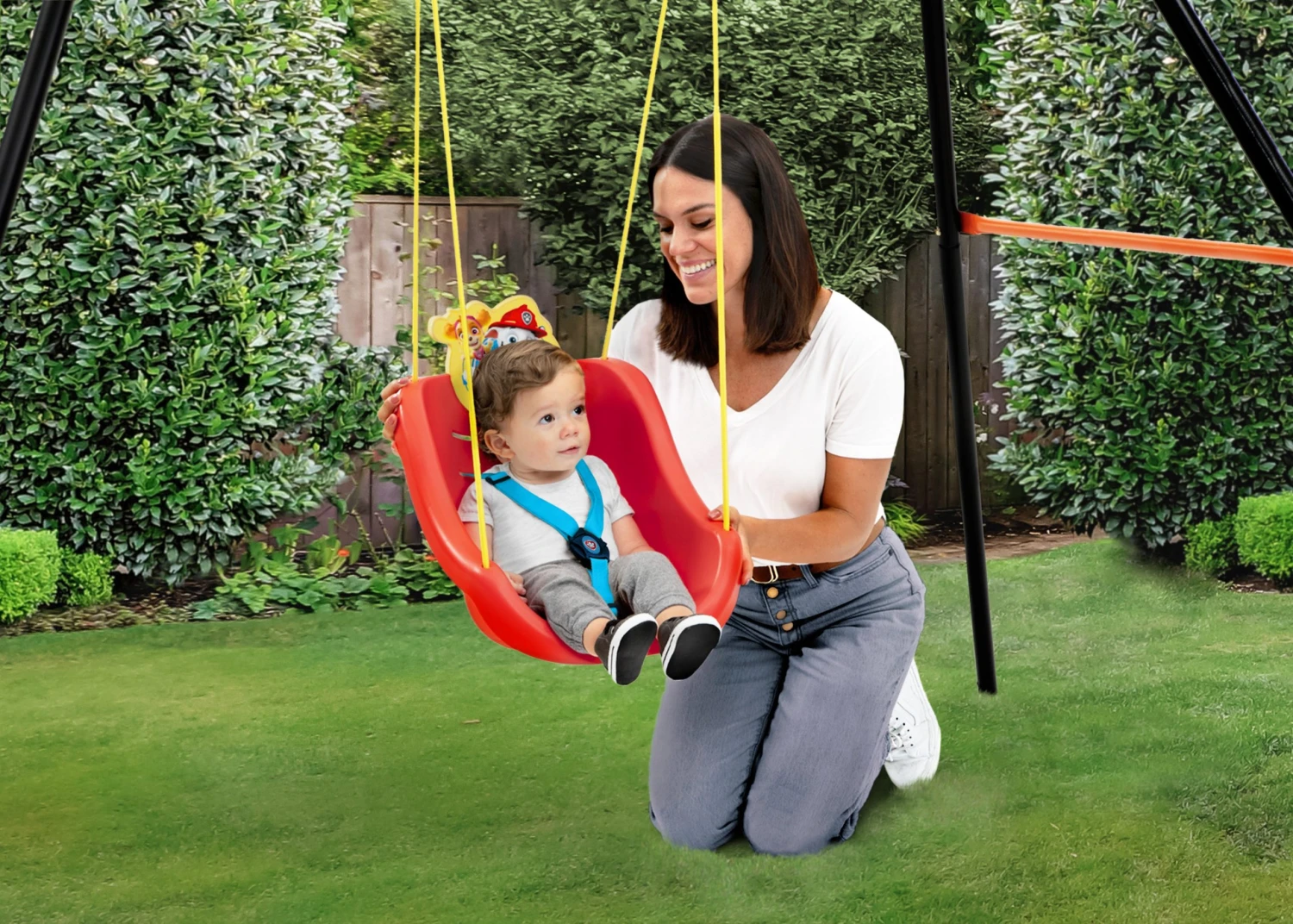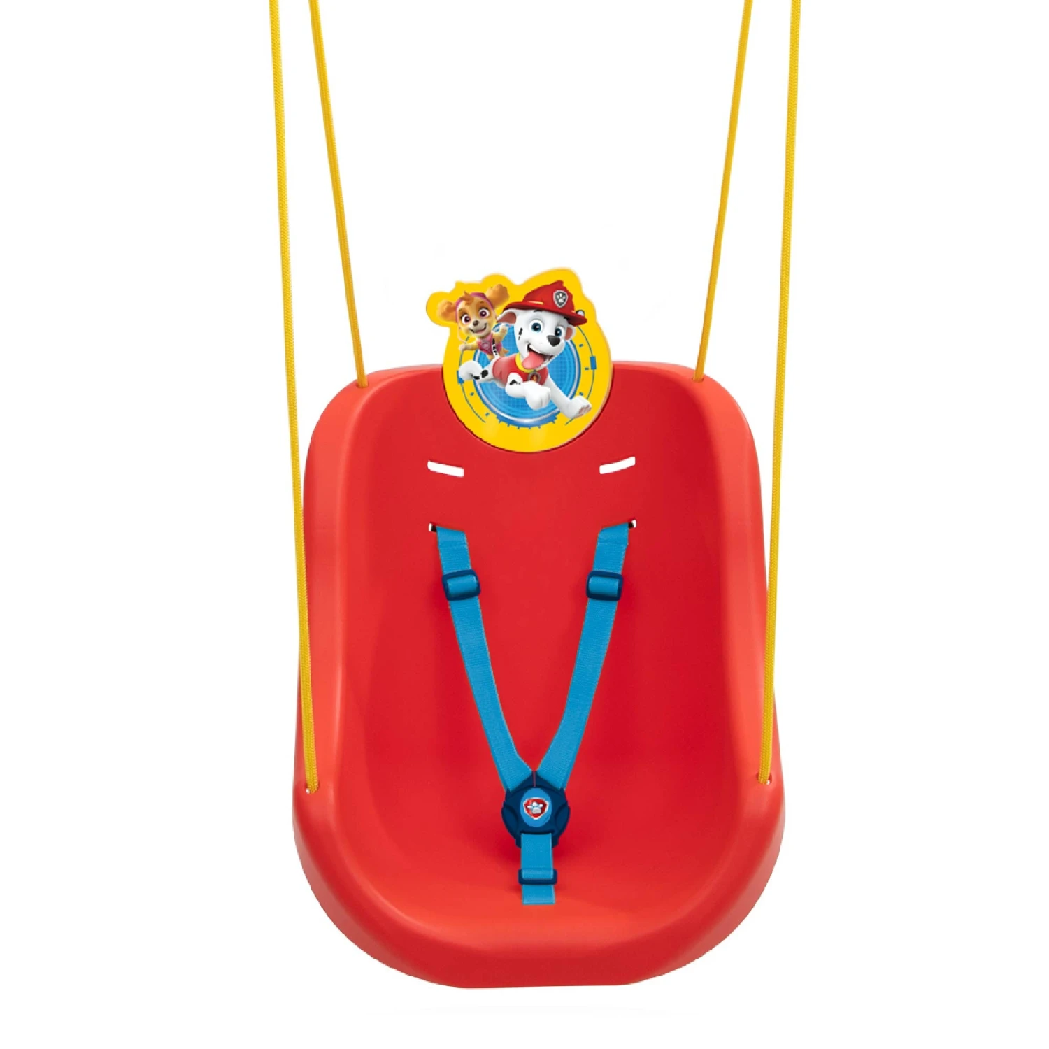 Good times will be in full swing when you get your little one this PAW Patrol 2-in-1 Outdoor Swing by Delta Children! The swing’s comfortable bucket seat and high back provides support while the three-point safety harness ensures your child stays securely in place—the harness can be removed as your child grows. Colorful graphics for Marshall and Skye at the top of the swing add action-packed fun. Made from durable, weather-resistant plastic, it will withstand the elements for many years. Plus, this fun swing comes with everything you need to attach it to your existing play structure, the included rope measures 36-inches from the top of the swing. Ideal for children ages 9-48 months.