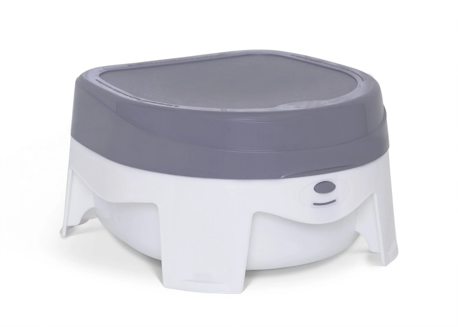 The PerfectSize 3-in-1 Potty by Delta Children makes it easier than ever to potty train your toddler! Made with recycled ocean plastics, this potty is packed with a ton of features that help boost your child’s potty confidence while also helping save 100 plastic bottle caps from the ocean—it’s a win-win. This 3-in-1, multi-functional potty chair stars as a toddler training toilet with removable bowl, then converts into an adjustable toilet seat that works with most standard round and elongated toilets, and lastly can be used as step stool to reach the toilet, brush teeth at the sink or help out mom and dad in the kitchen. Perfect for boys or girls to use, the seat’s integrated splash guard makes it extremely easy to clean while the non-slip bottom prevents slipping and sliding. The potty seat’s lightweight and compact design allows you to move it around the house wherever your child feels the most comfortable, you can also bring it on family trips. Get the PerfectSize Potty by Delta Children when it’s time for your little one to start their potty-training journey—it effortlessly grows with your little one, making the transition to the “real” toilet easier and faster! Age recommendation: 1 year +. Weight recommendation: holds up to 50lbs. Made in the USA.