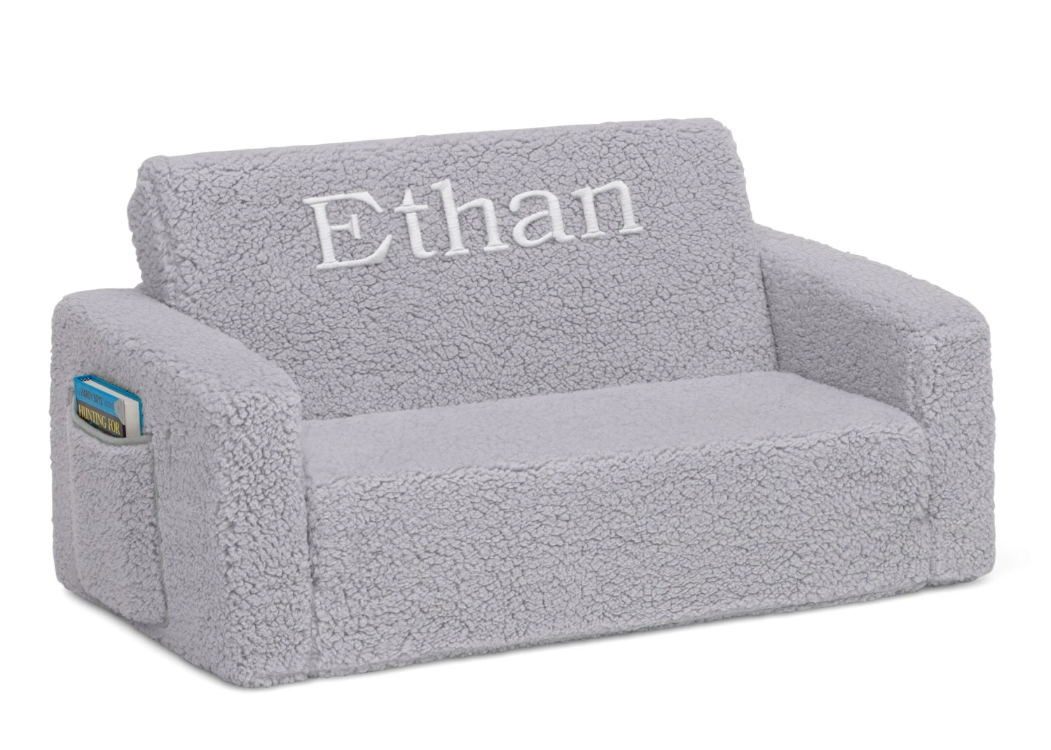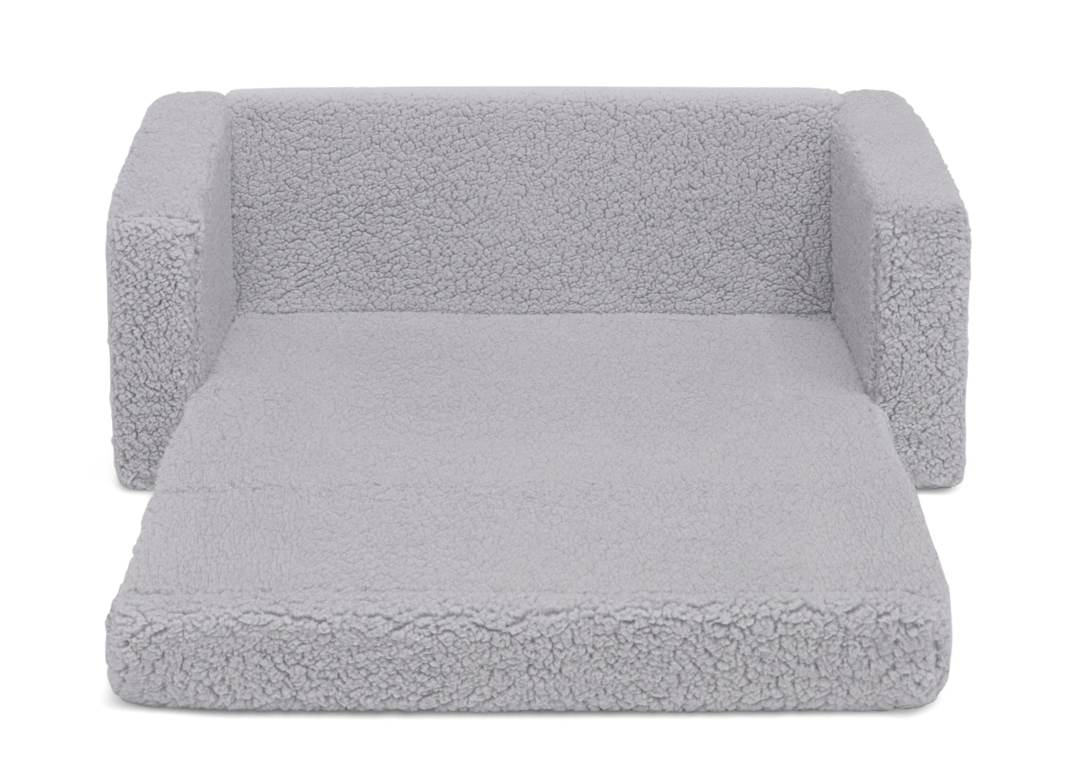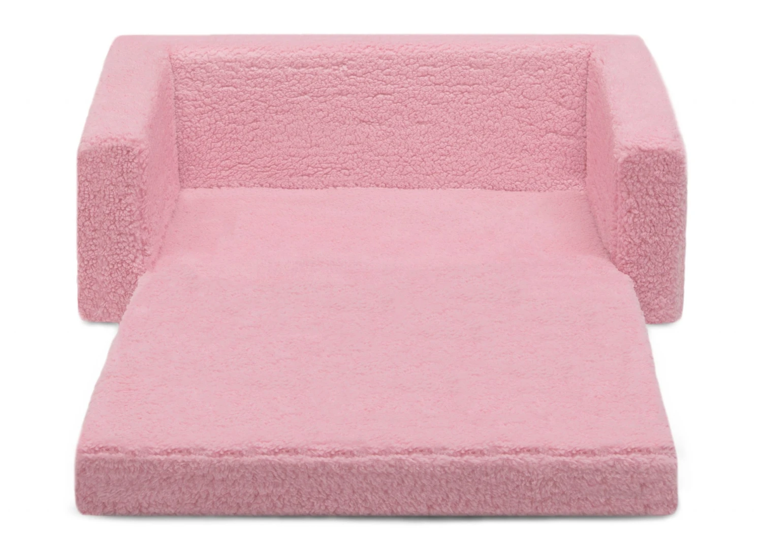 The Cozee Flip-Out Sherpa 2-in-1 Convertible Sofa to Lounger by Delta Children is a cozy couch by day, laid-back lounger by night. This convertible sofa easily flips open to reveal multiple ways for your child to relax–they’ll love to sit and read or watch their favorite movies on the sofa but when it’s time for a nap, this seat folds out into a comfy sleeper bed. Big enough to fit three small kids comfortably in sofa mode, it’s light enough to move around the house and is ideal for your children to share during playtime or sleepovers. The super-soft Sherpa slipcover with easy-to-reach side pocket creates the ultimate retreat for your little one. The supportive foam construction will keep its shape and provides all-day comfort. Designed to ship in a super-small box, this lightweight foam kids’ sofa and lounger may take up to 24 hours to fully expand once unboxed. Machine-washable slipcover zips off for easy cleaning. Personalize it with a name for the perfect finishing touch. Recommended for ages 18 months+.