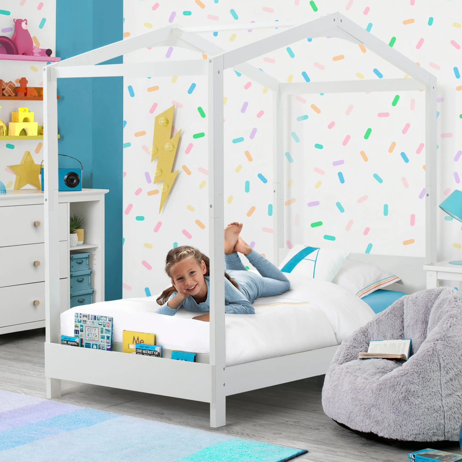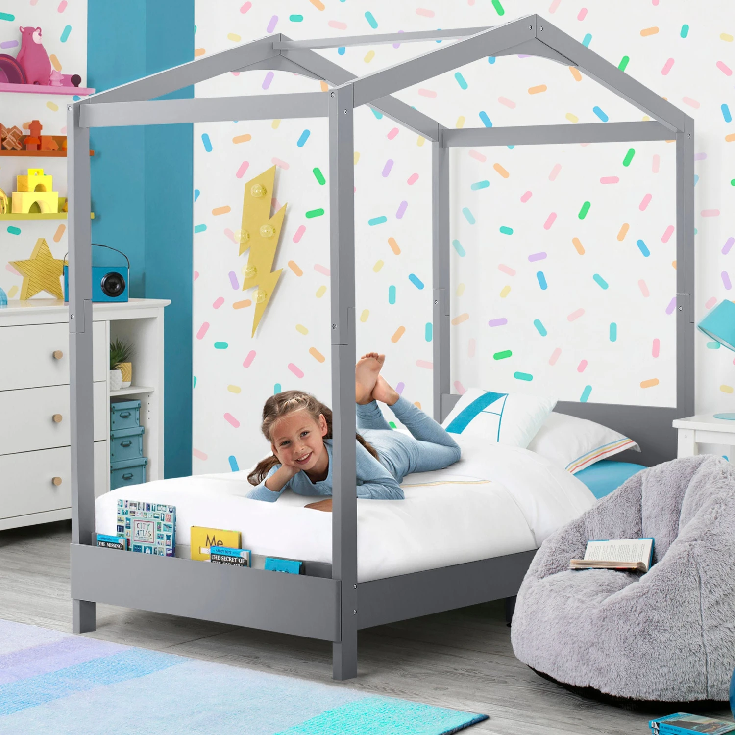 The Poppy House Twin Bed by Delta Children features a classic house shape that will inspire your child’s imagination—they’ll play house, build next level blanket forts or pretend to campout in their bedroom, but most of all they’ll love heading to bed each night. They’ll adore this magical retreat for all of its whimsical accents, and you’ll love it for its low height that’s easy to get in and out of and built-in book storage at the footboard. Available in multiple child-safe finishes, this playful twin bed for kids is made from quality materials is expertly designed to withstand the test of time.