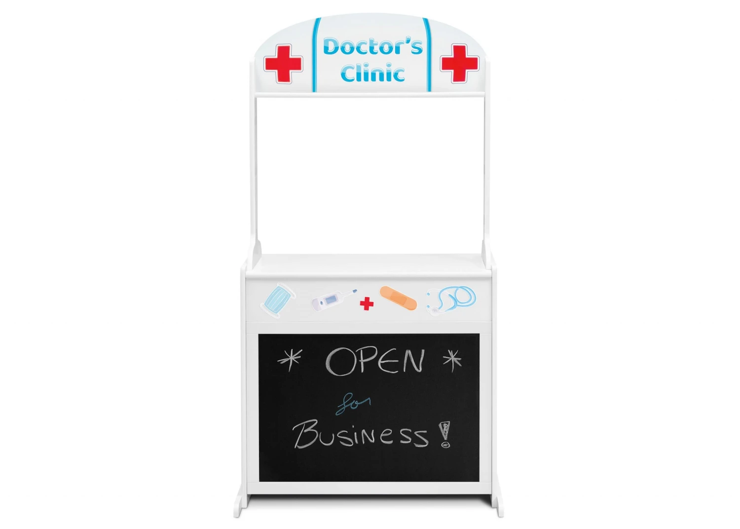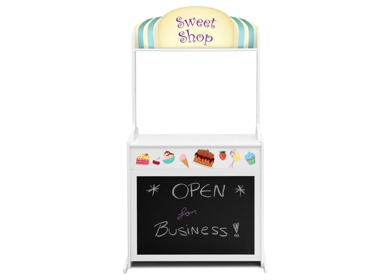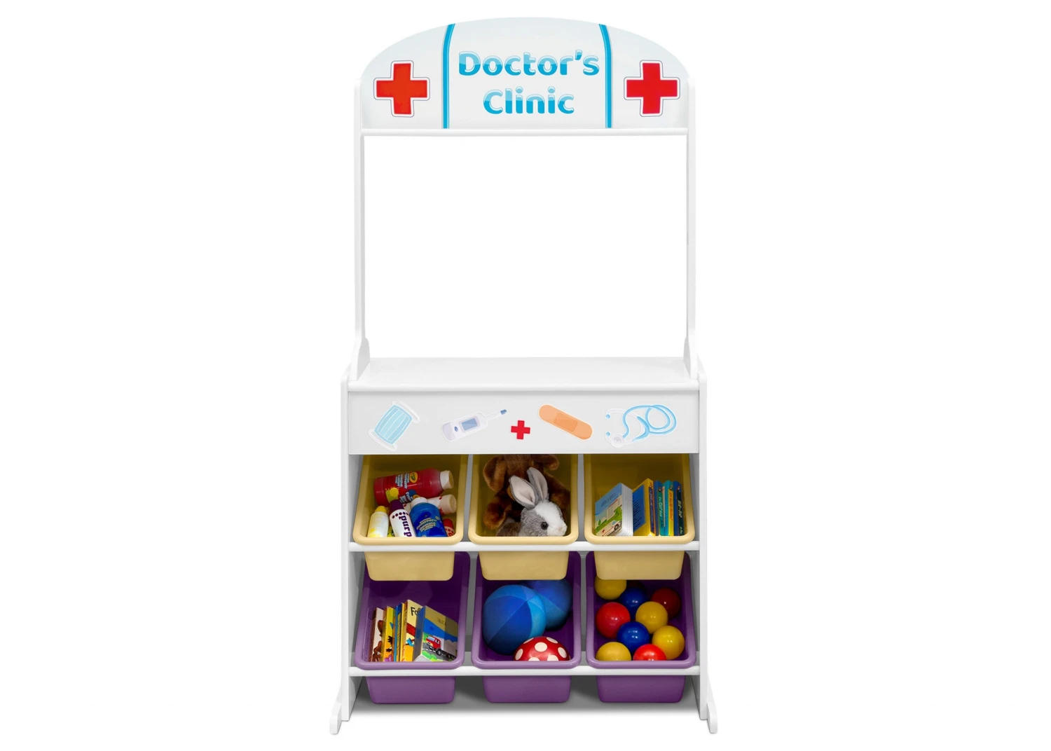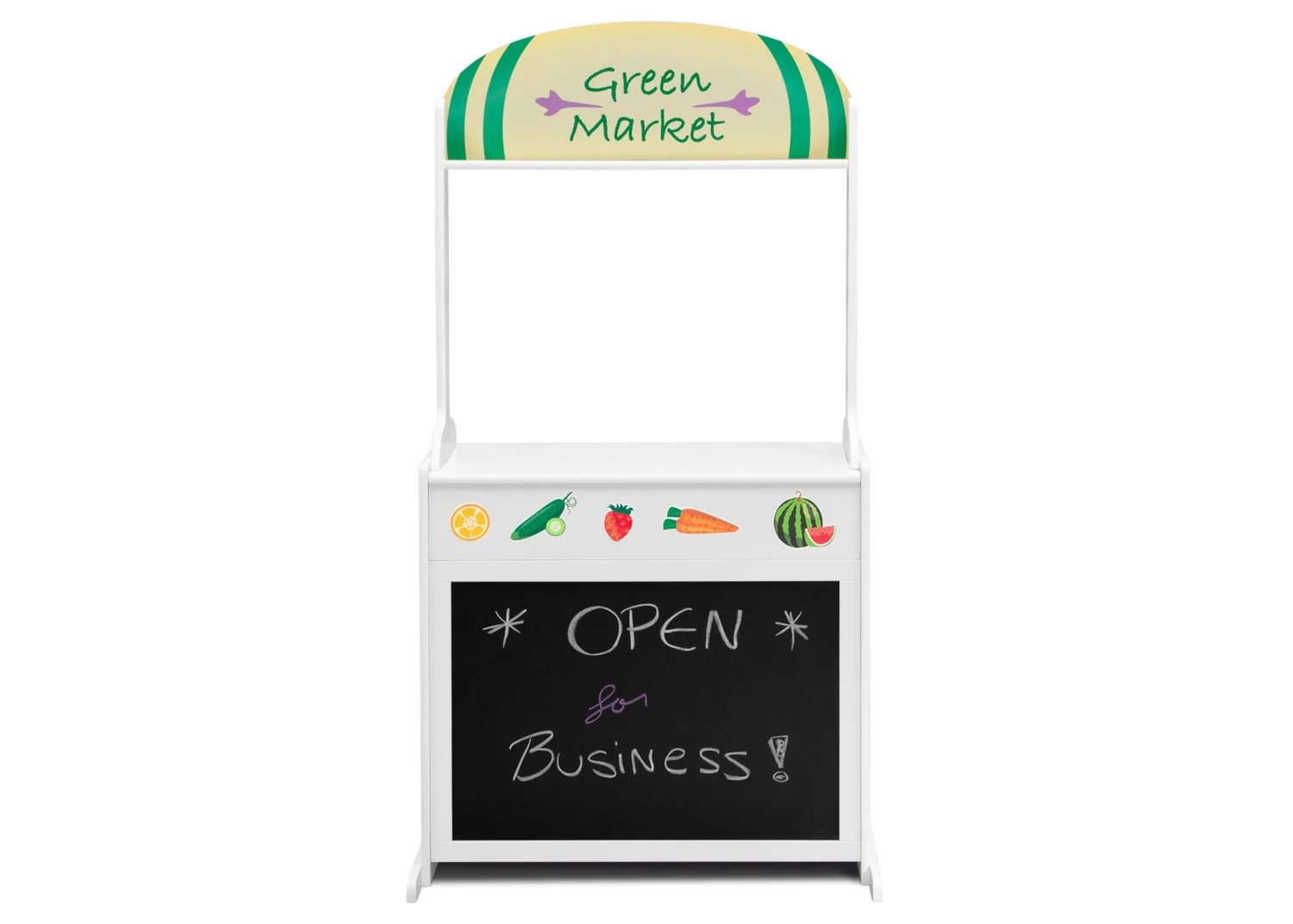 Ideal for your little performer, baker or doctor, the Reversible 4-in-1 Pretend Play Center by Delta Children features four interchangeable storefronts for endless imaginative play. The included storefront panels are printed in fun themes, so kids can pretend they are at the theater, bakery, market or doctor’s office. Imaginative play helps your child’s development by building on their language skills, social and emotional growth and well as their problem-solving skills. On one side of the play center, a large chalkboard allows kids to draw while the other side features six plastic storage bins for plenty of storage. Above the chalkboard and storage bins there is space to decorate with the included reusable vinyl stickers that match the storefront themes.