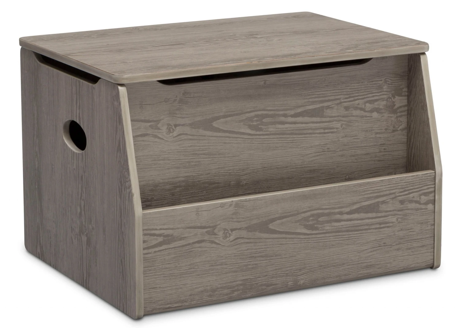 The Nolan Toy Box from Delta Children is a modern storage piece that will keep your child’s playroom or bedroom organized without sacrificing style. Kids will love how easily they can stow and store toys, books, games or dress-up clothes. Parents will love the sleek design of this toy box that features a streamlined silhouette and oval cutout handles that make it easy to move. This toy box also allows you to create an adorable little reading nook. The easy-to-access bookrack at the front of the toy box will keep all their favorite books within reach. And since kids play with everything, all toy boxes from Delta Children have rounded edges and feature a safety hinge that minimizes the chances of little fingers getting hurt by slamming lids. Available in a variety of colors: Grey, Bianca White, Crafted Grey or Crafted Limestone.