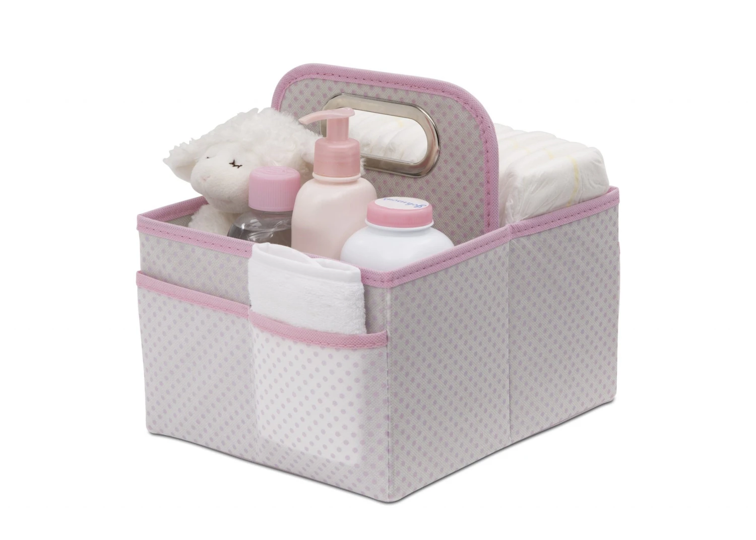 Keep your baby’s essentials neatly organized and within easy reach with this Portable Nursery Caddy from Delta Children. This caddy folds flat when not in use to save space, and the easy-to-grab handle at the top makes it simple to carry when full. The perfect place to store diapers, wipes, ointments and more, this Nursery Caddy is constructed from durable non-woven fabric with a cardboard inner making it both sturdy and lightweight. And when you no longer need the caddy in your nursery, it makes a great storage bin for art supplies. This Nursery Caddy from Delta Children is available in a number of beautiful colors that will complement any space.