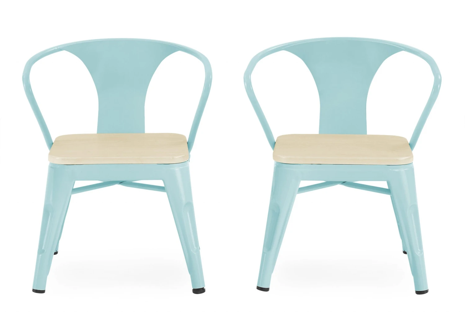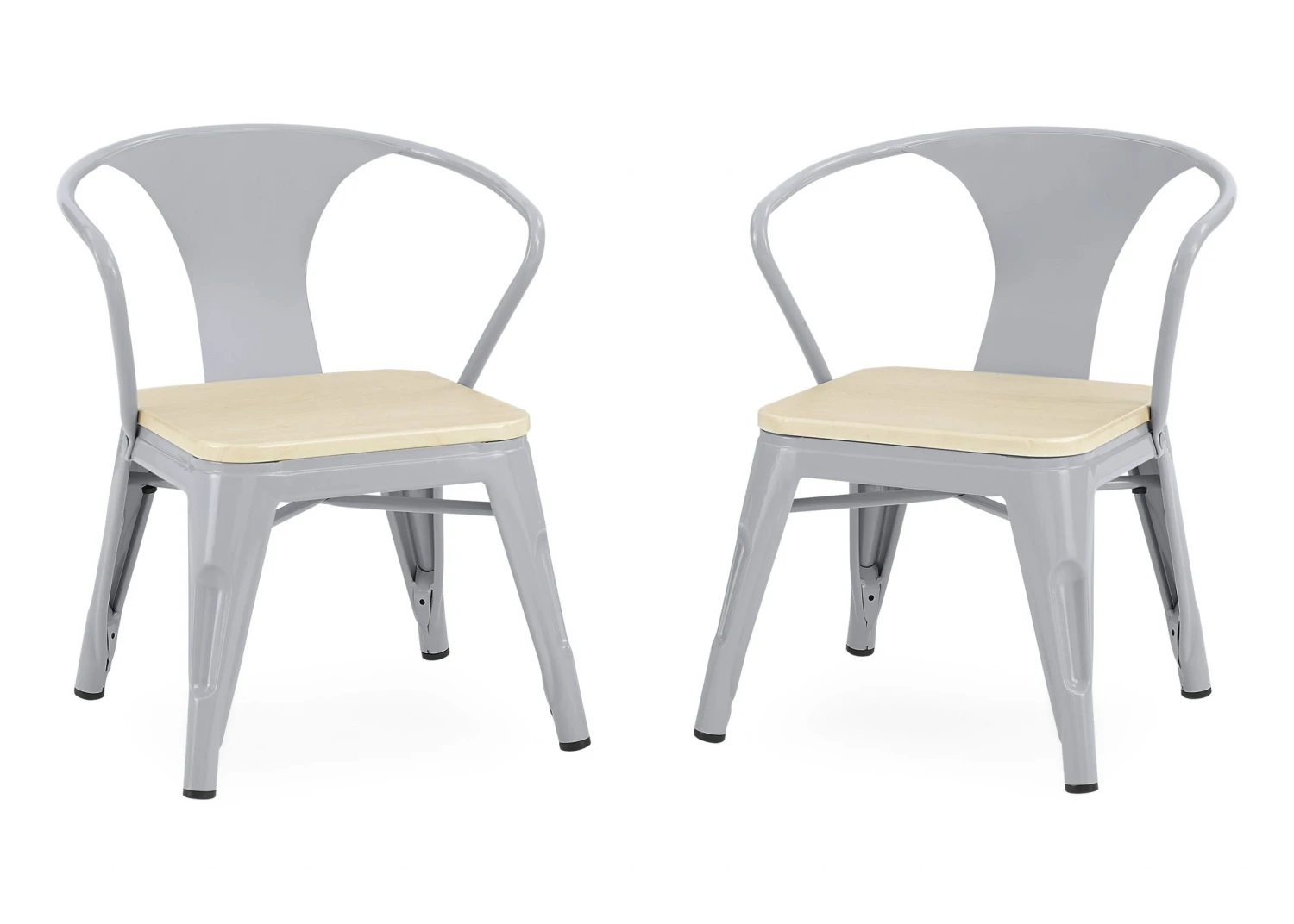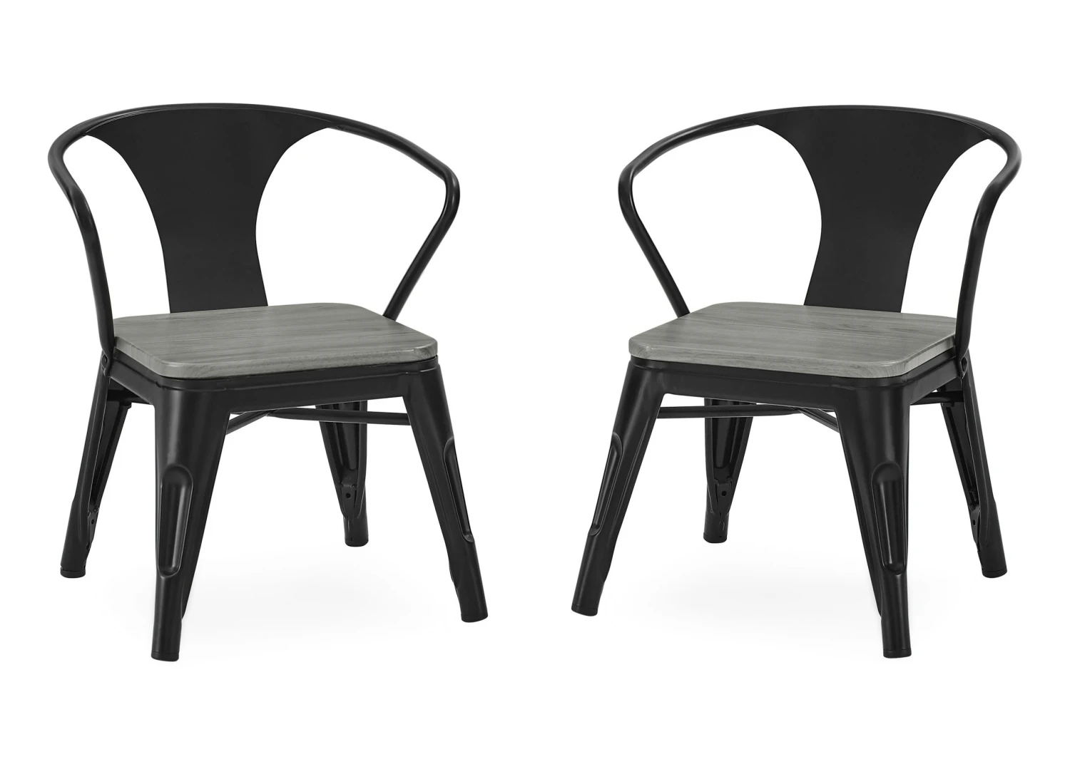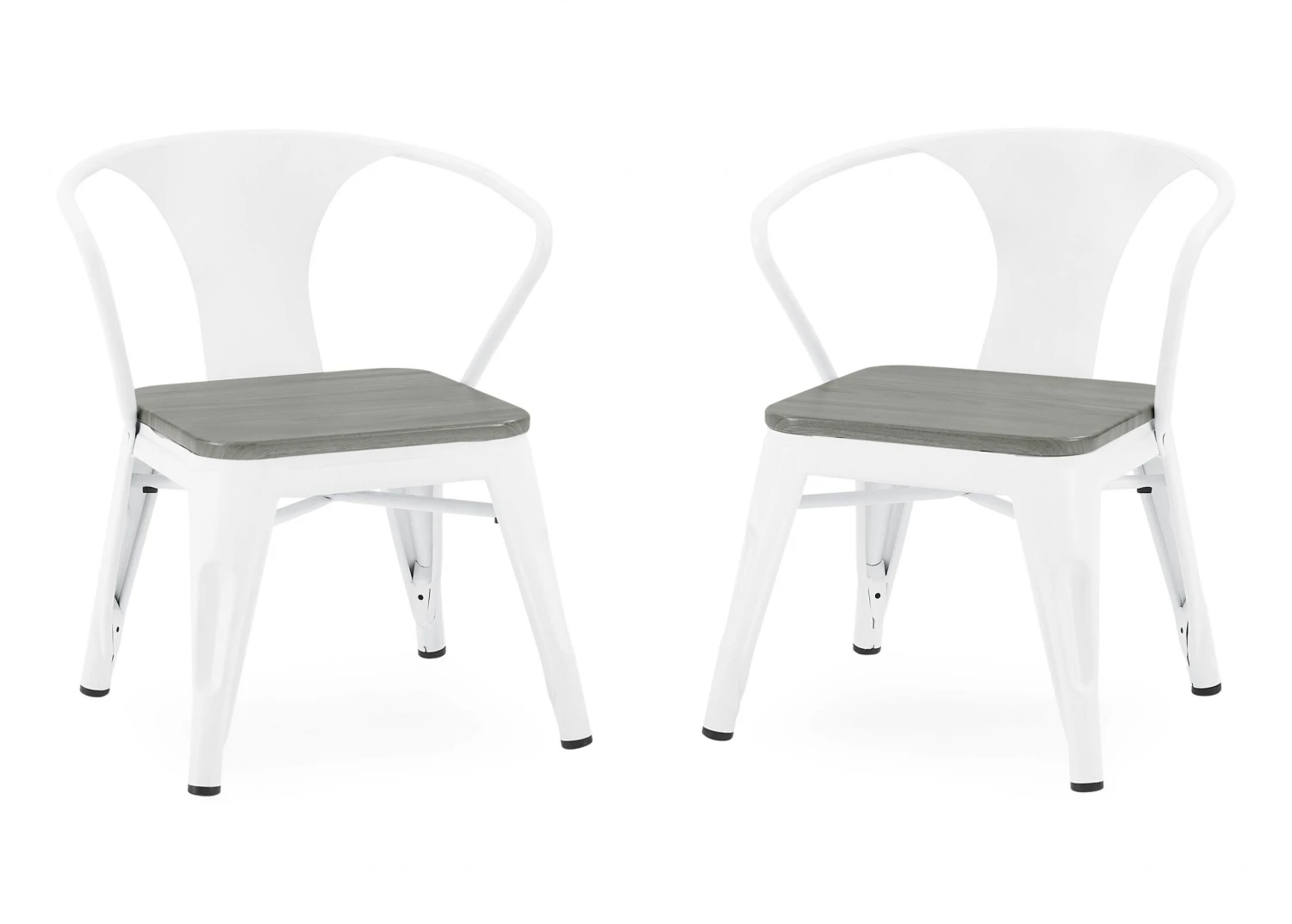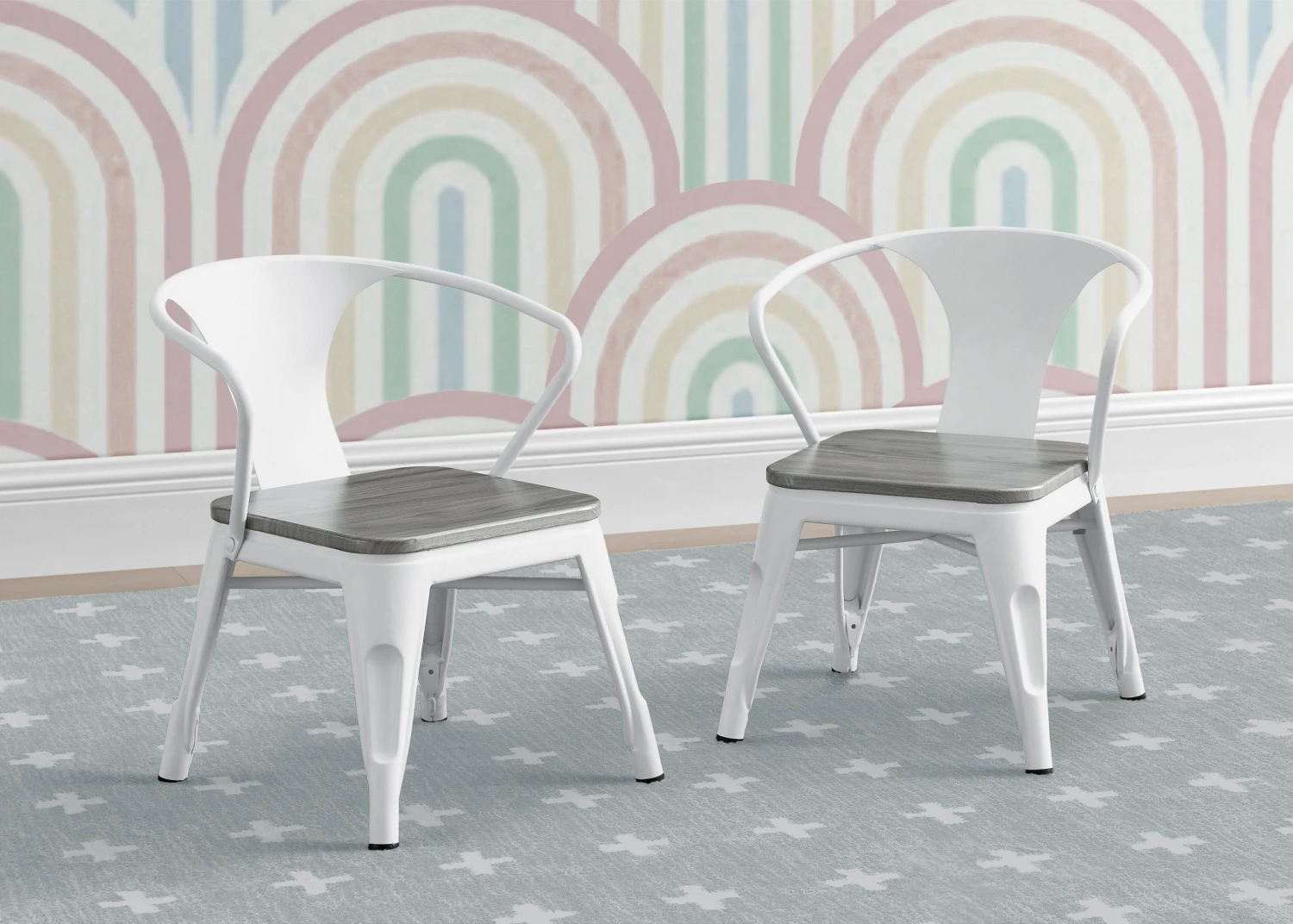 Art projects, tea parties, snack time, even homework is so much more fun while sitting in the Bistro 2-Piece Chair Set from Delta Children. These kid-sized chairs feature a mixed material construction of metal and wood that is sure to inspire hours of imaginative play. Sized just right for your growing child—the 11.25” seat height of these kids chairs ensure they can be used for many years. Recommended for ages 3+. Rubber feet on chair’s legs protect the floor from scratches. Add the matching Bistro Table for a coordinated look.