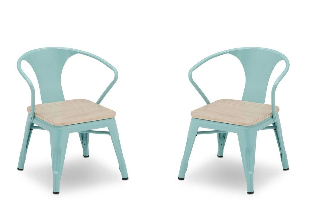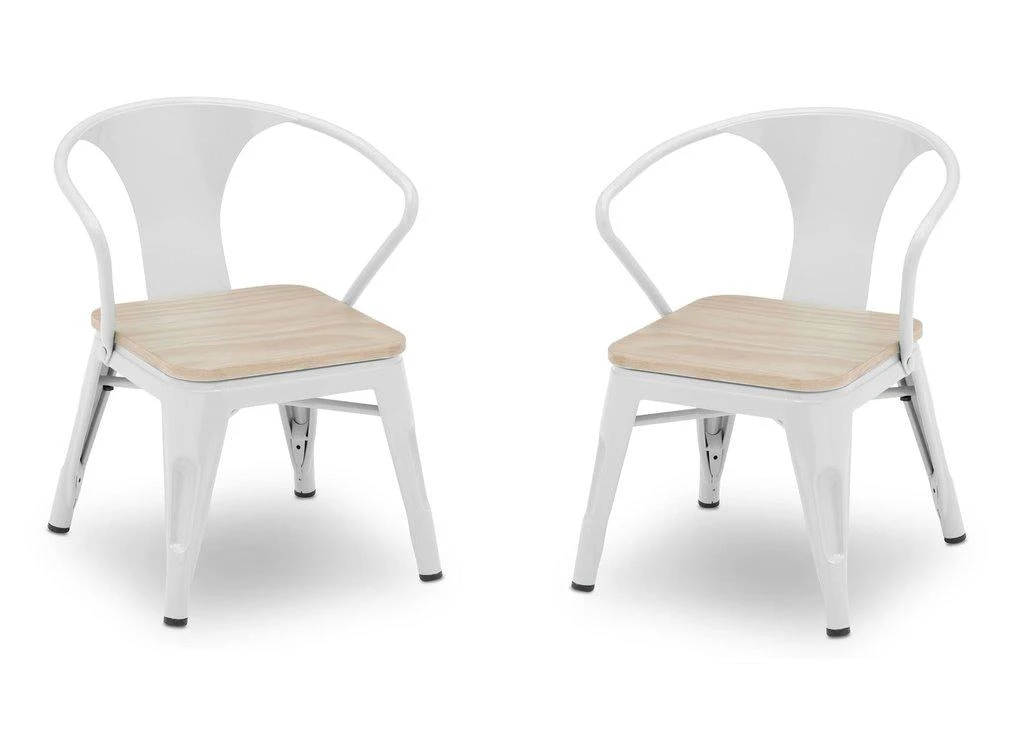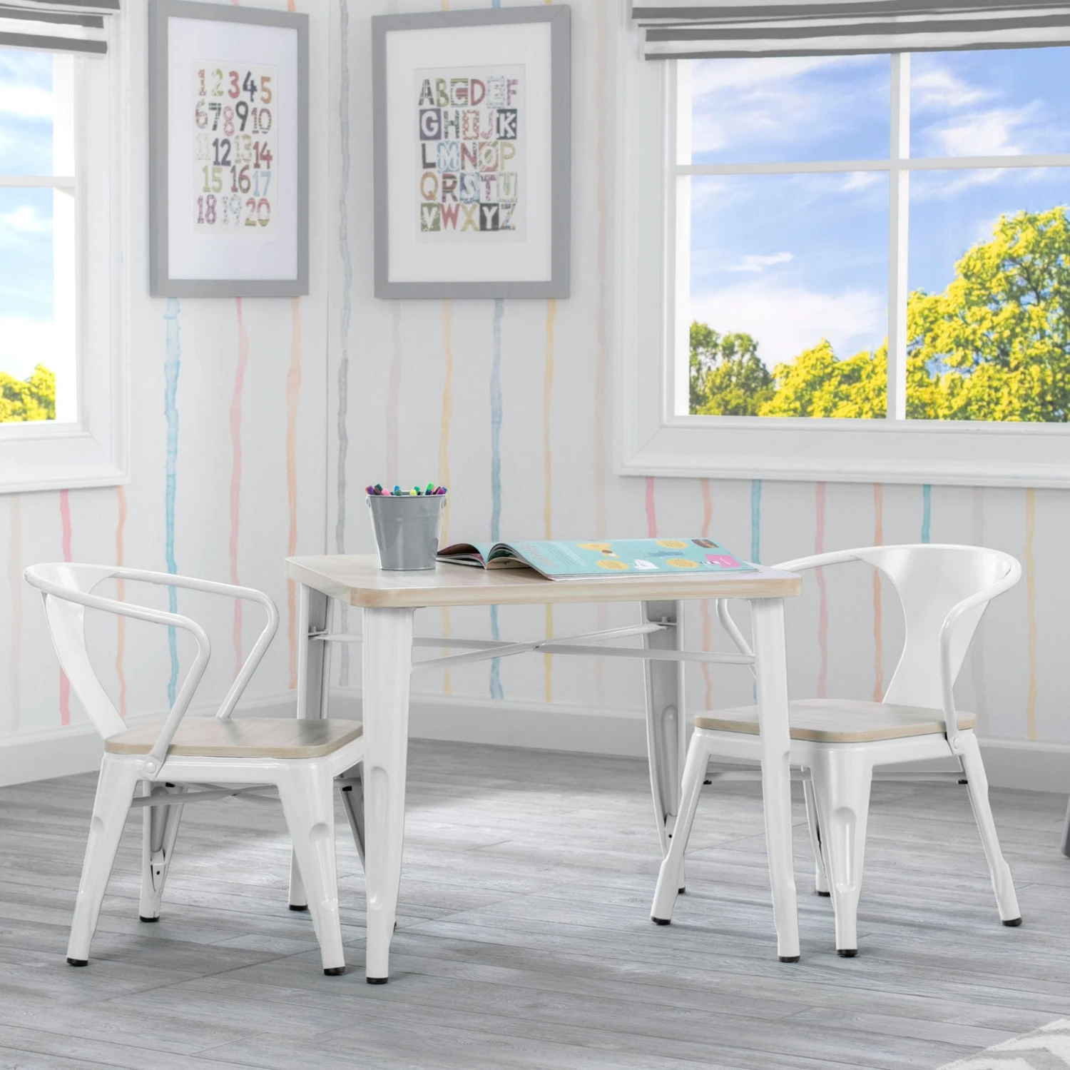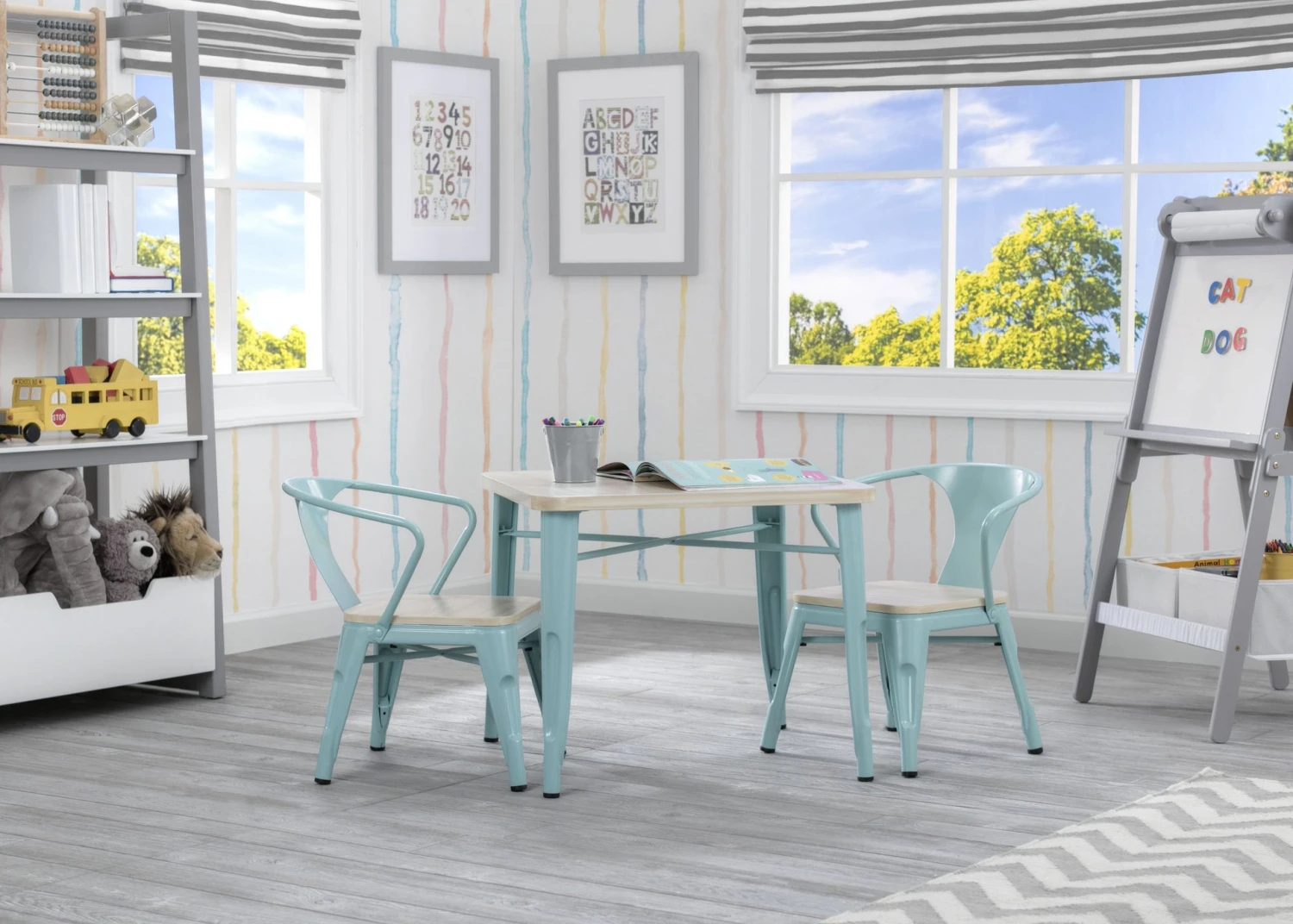 The perfect foundation for fun and learning, the Bistro Kids Table and Chair Set from Delta Children features a printed wood grain top that sits on top of painted metal legs. Whether your child uses it for art projects, tea parties, snack time or homework, this kids play table and chair set will enhance their sense of wonder no matter what activity they use it for. Sized just right for your growing child—the generous 20-inch height of this sturdy play table ensures it can be used for many years. The table and chairs’ fun mixed material construction will complement existing bedroom, playroom or living room dĂ©cor, easily allowing you to create a space that works for kids and adults alike. Rubber feet on table’s legs protect the floor from scratches.