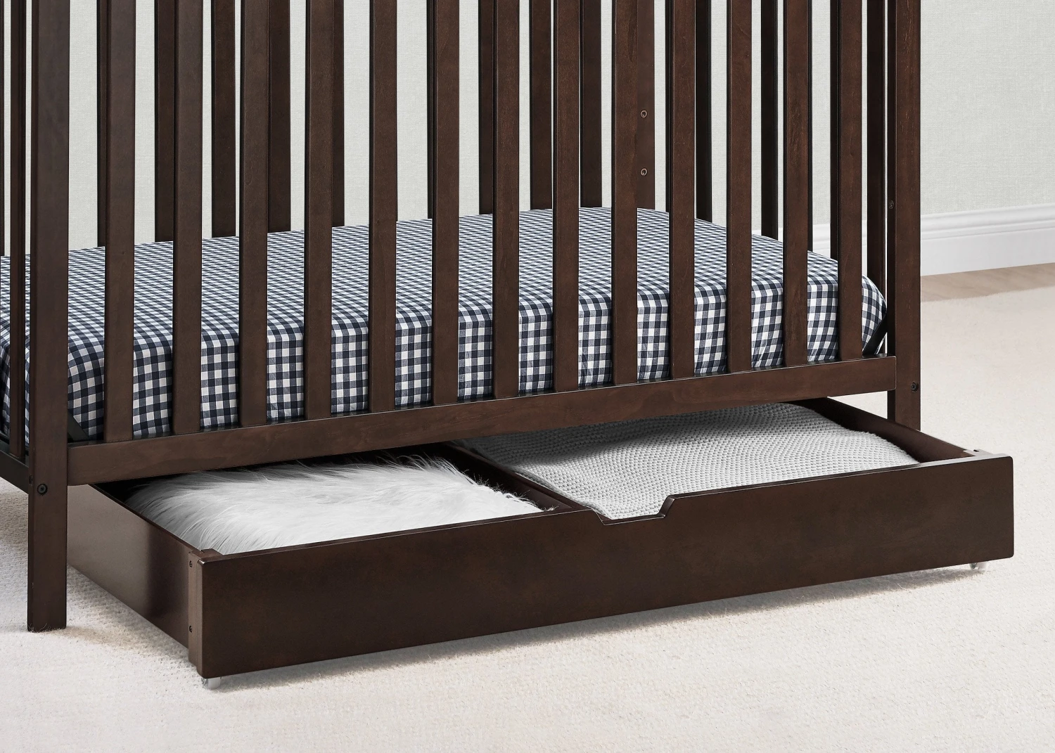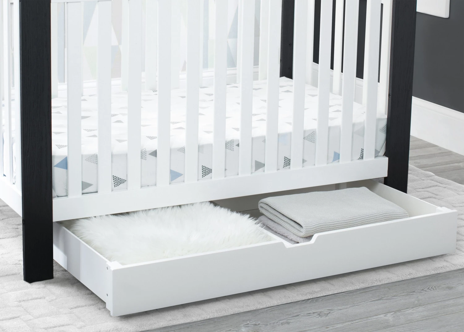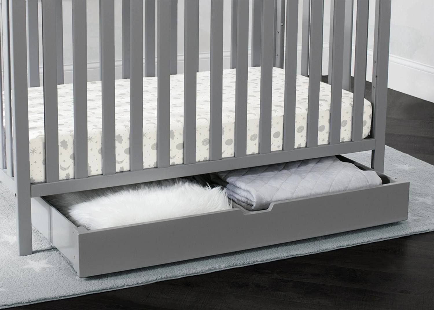 Upgrade your nursery with the Under Crib Roll-Out Storage Trundle by Delta Children, and don’t let the space under your crib go to waste! Use it to store things like toys, extra bedding, pillows or seasonal clothing. Designed to fit under any Delta Children crib with an opening of at least 48-inches by 7.5-inches, this convenient storage trundle is outfitted with four wheels, so it’s super-easy to roll out when you need to access your things. The simple silhouette and finish that coordinates with a large selection of Delta Children baby cribs ensures it goes with varying styles and décor. The Under Crib Roll-Out Storage Trundle by Delta Children is available in multiple colors.