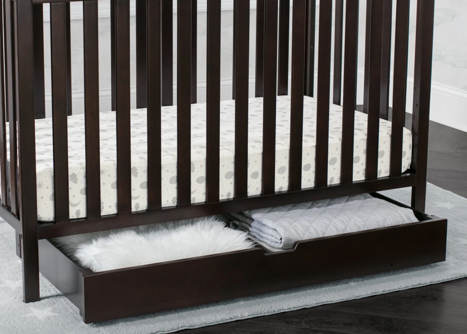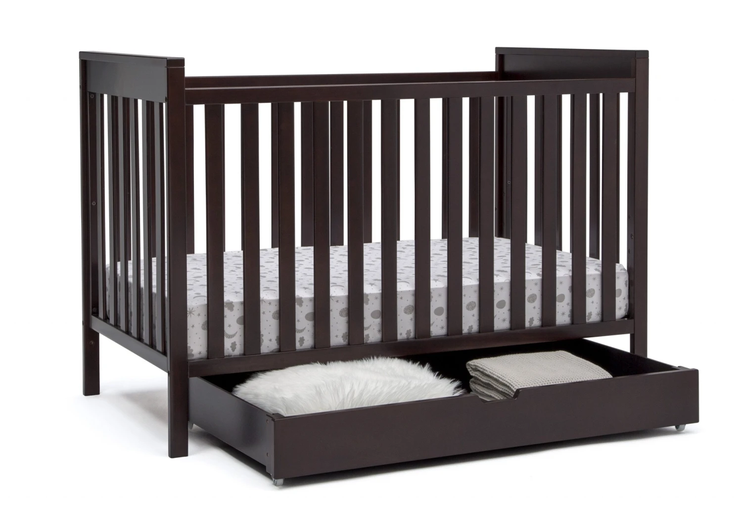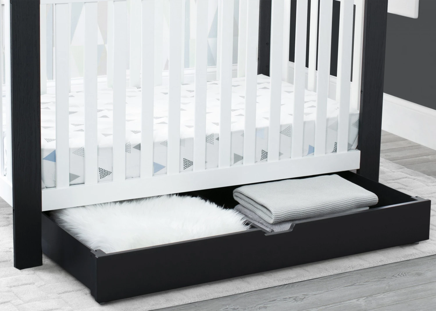 Upgrade your nursery with the Under Crib Roll-Out Storage Trundle by Delta Children, and don’t let the space under your crib go to waste! Use it to store things like toys, extra bedding, pillows or seasonal clothing. Designed to fit under any Delta Children crib with an opening of at least 48-inches by 7.5-inches, this convenient storage trundle is outfitted with four wheels, so it’s super-easy to roll out when you need to access your things. The simple silhouette and finish that coordinates with a large selection of Delta Children baby cribs ensures it goes with varying styles and décor. The Under Crib Roll-Out Storage Trundle by Delta Children is available in multiple colors.