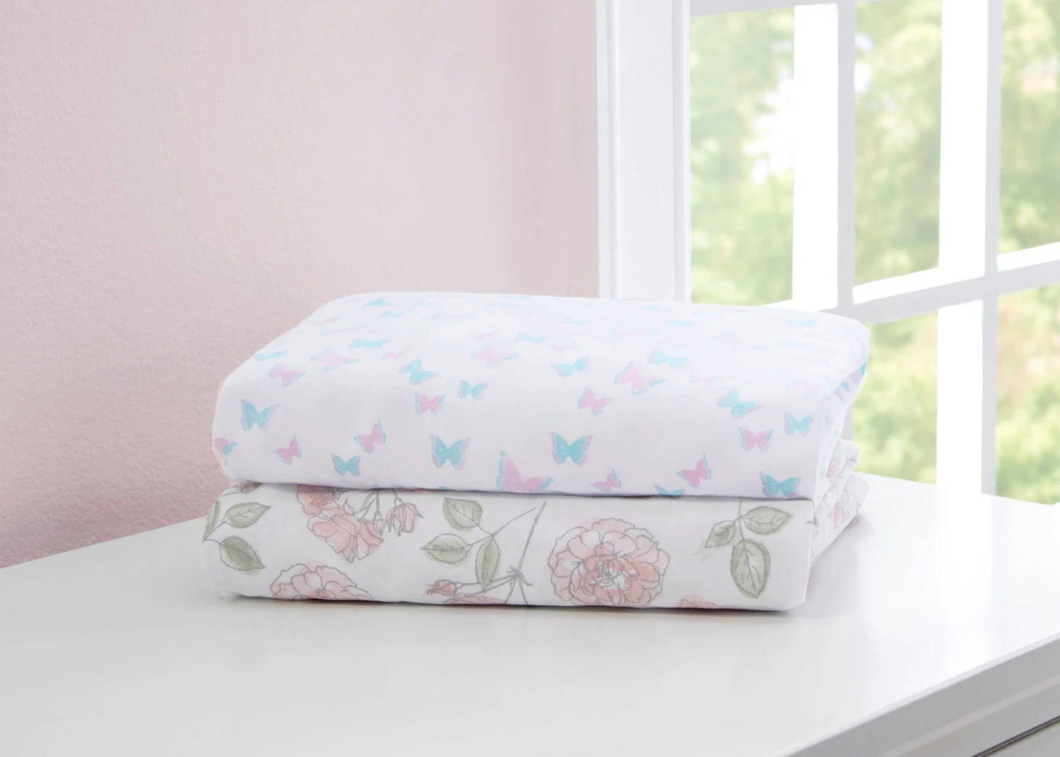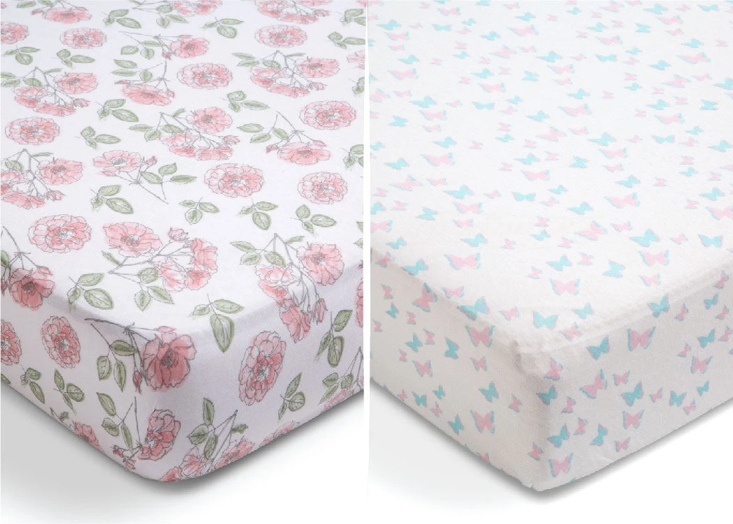 These Printed Fitted Crib Sheets (2-Pack) by Delta Children are soft, stylish and perfect for your baby’s nursery. Made of jersey knit cotton, these fitted crib sheets keep their softness, wash after wash. Elasticized edges all around create a snug fit on standard-size crib mattresses. And you can never have enough sheets for your baby, so grab a few sets to keep up with accidents or spills! These sheets are machine-washable for easy care. Available in a number of easy-to-coordinate prints.