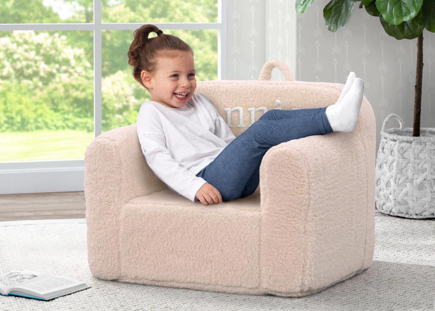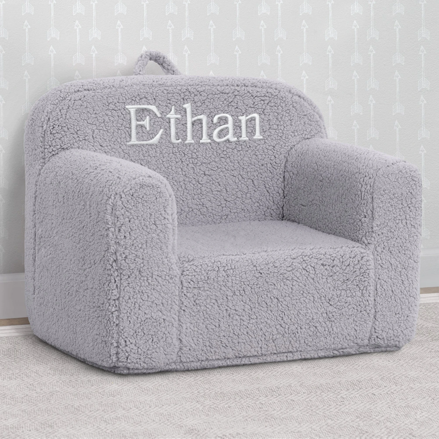 Cozy up to the Cozee Sherpa Chair for Kids by Delta Children. A snuggly spot for reading, watching TV or just hanging out, this supremely comfy chair features a Sherpa slipcover that adds texture and comfort, plus it’s removable and machine washable for easy cleaning. Perfect for the playroom, living room or your child’s bedroom, this kids’ foam chair goes anywhere they do–the lightweight design with handle on top is easy to move from room to room. Personalize it with a name for the perfect finishing touch. Recommended for ages 18 months+.