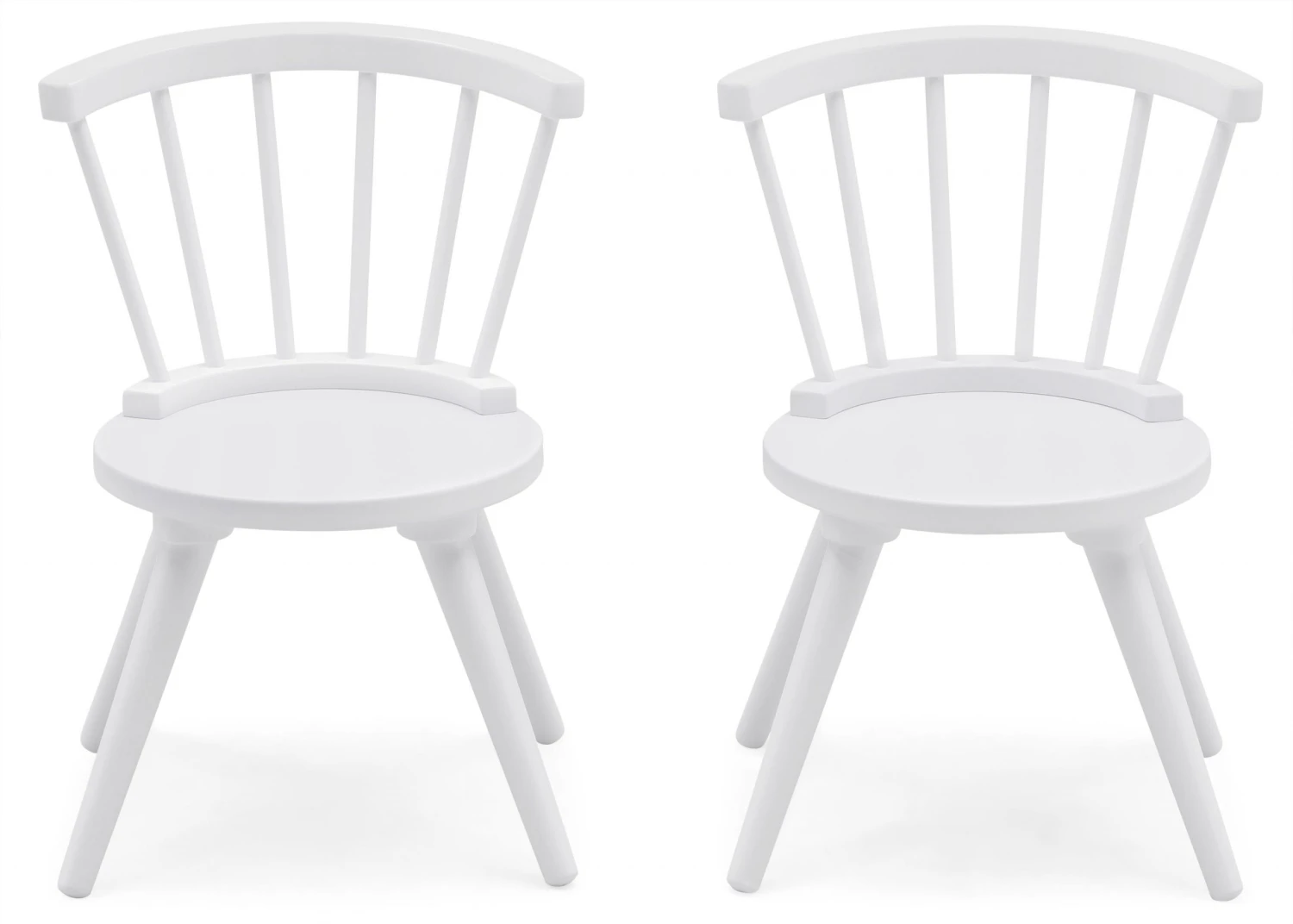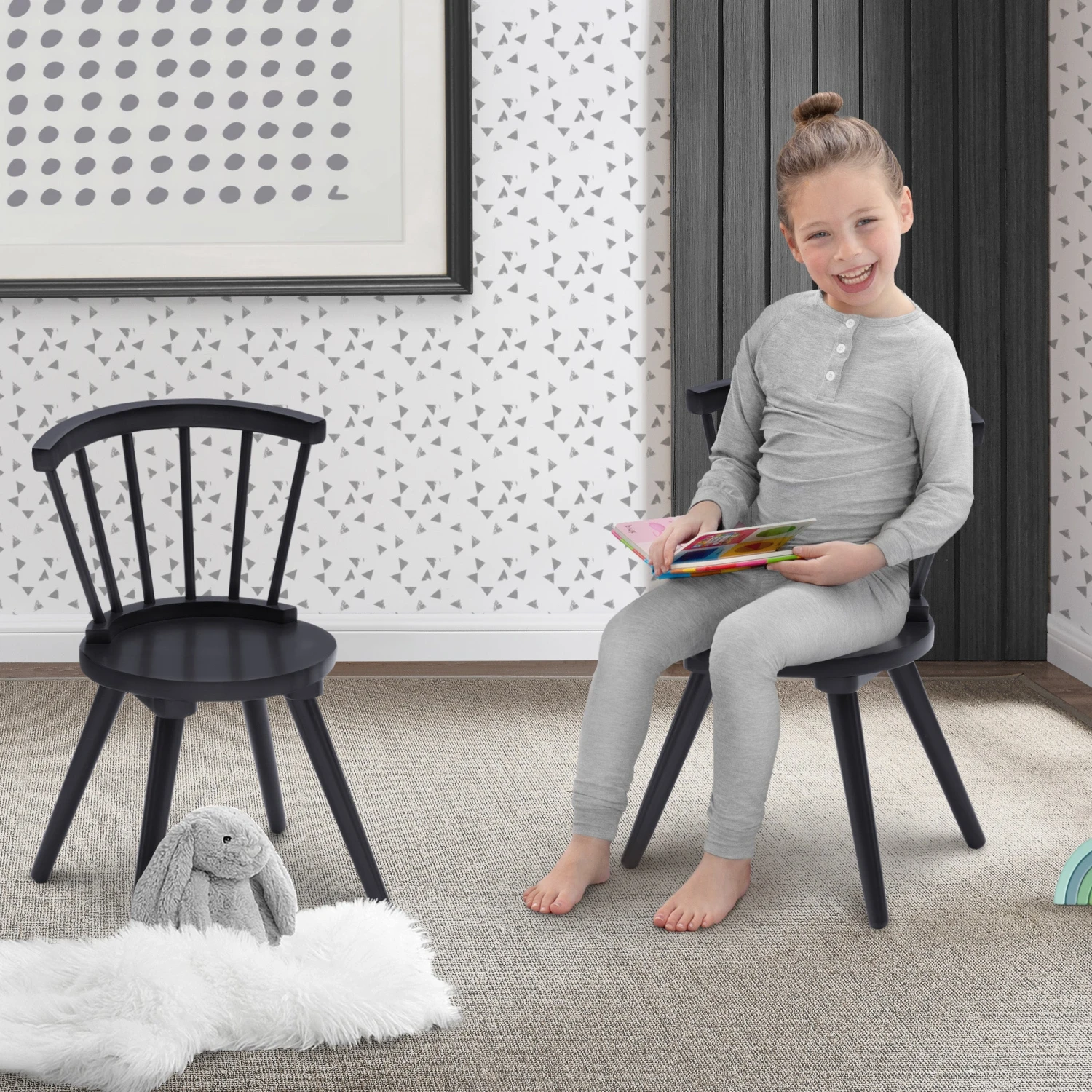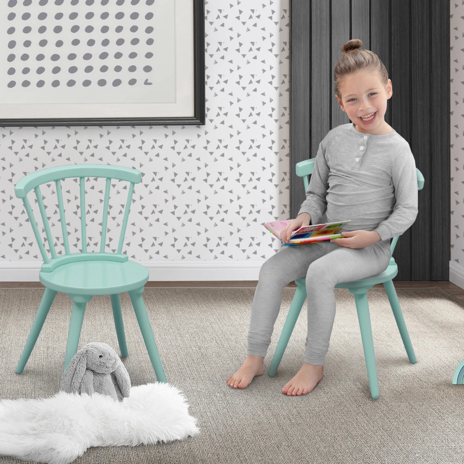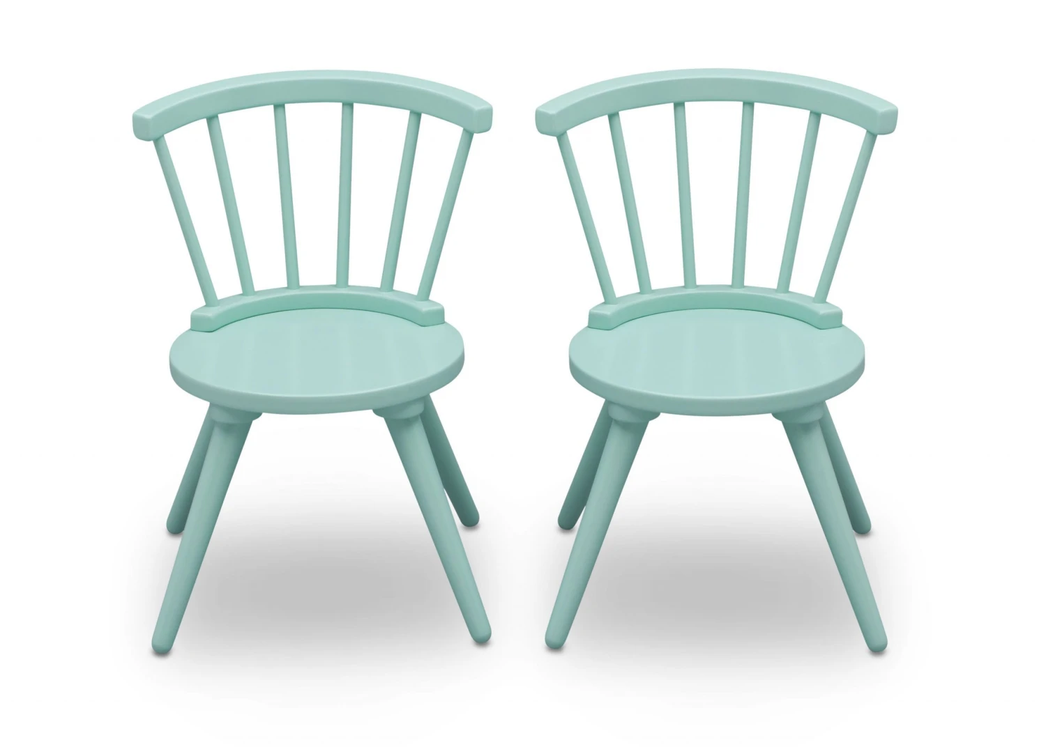 Have a seat (or two) with this Windsor 2-Piece Chair Set by Delta Children. These sturdy wooden chairs are designed in a traditional style and feature a recognizable Windsor silhouette with vertical spokes and curved backs. Sized just right for your growing child, the 12-inch seat height of these kids’ chairs ensure they can be used for many years. To complete your play space, pair these chairs with Windsor Table and Chair Set (sold separately) or any other play table of your choice.