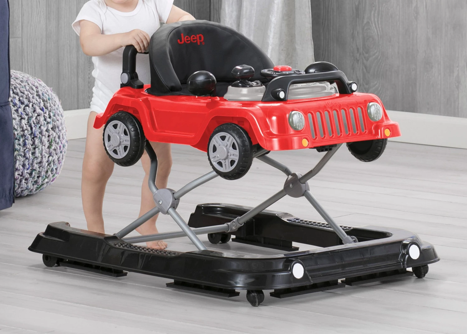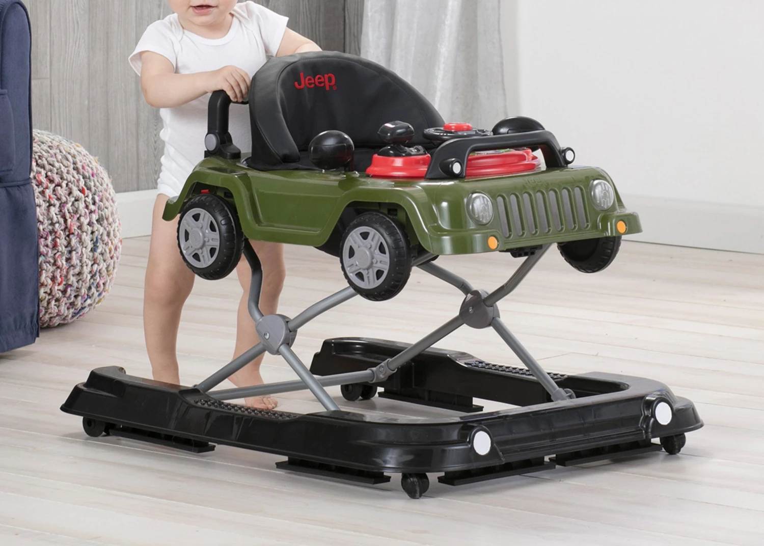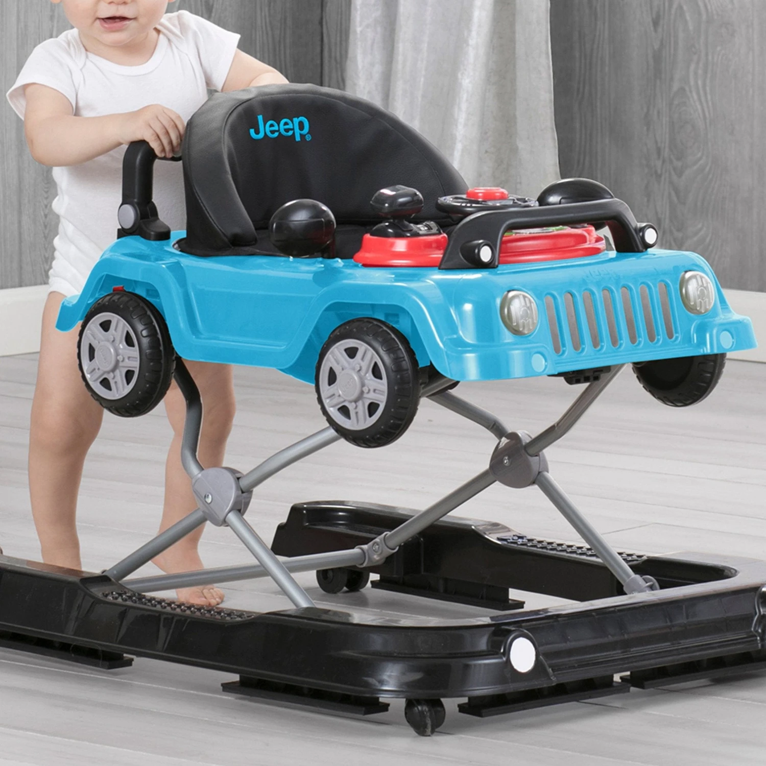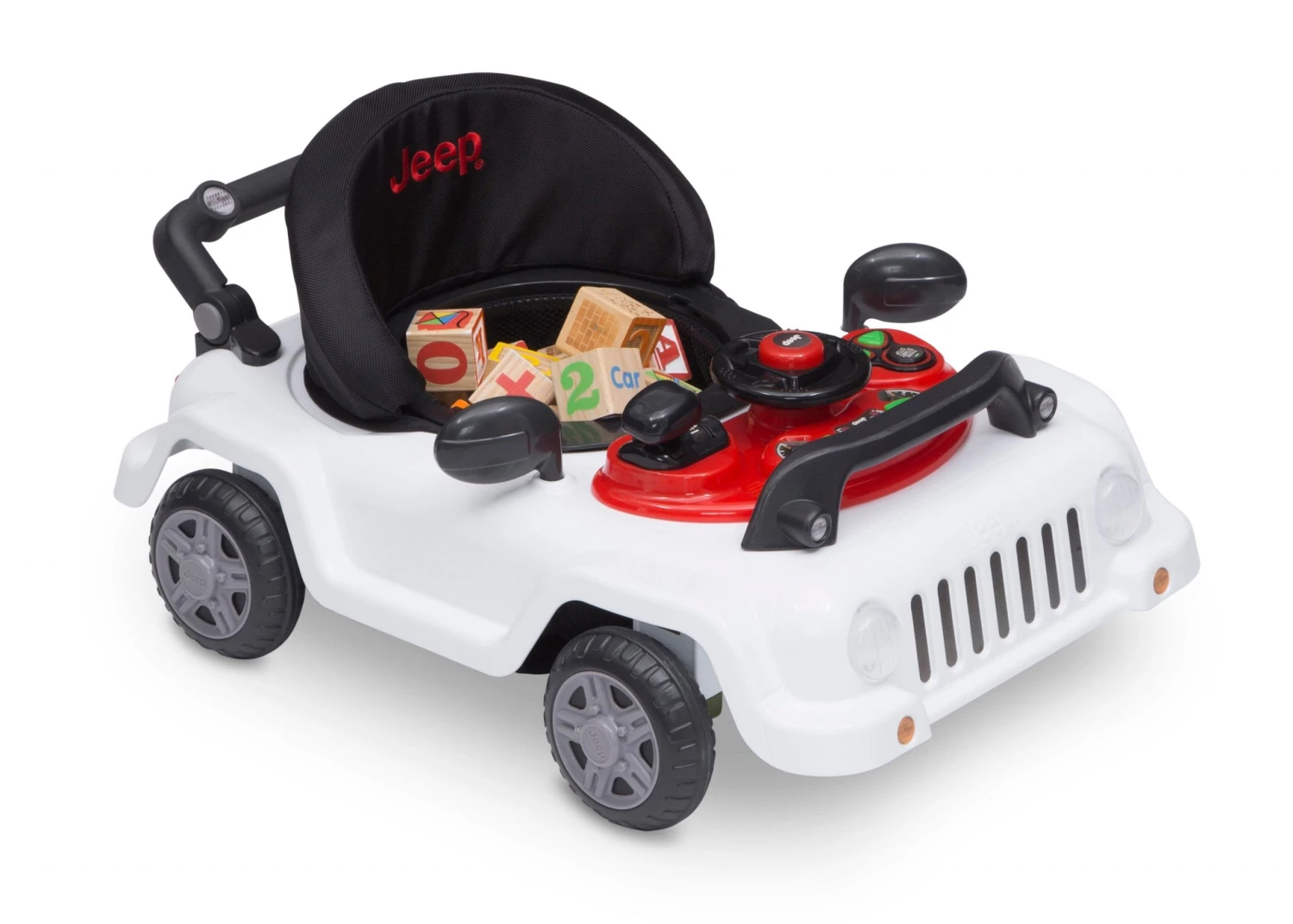 - FOR DIE-HARD JEEP FANS: This 3-in-1 activity walker resembles the classic Wrangler with its seven-slot grille, round headlamps and flat fender flares