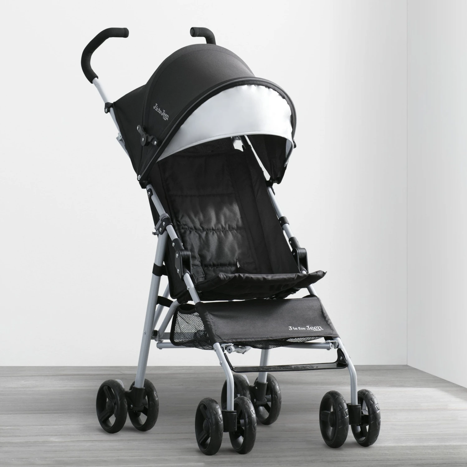 The Jeep North Star Stroller is the perfect stroller for the family on the go. It features exceptional comfort, convenience and safety with features that include a removable carry-all parent organizer that’s designed to securely hang from the back, extra-large extendable canopy with sun visor to protect your child from the elements, 3-point safety harness, calf support and footrest. The most versatile stroller in its class, it features swiveling front wheels and a suspension system that gives you outstanding control. It even keeps your child comfortable during the warmer months — the stroller’s padded seat rolls up into a comfy headrest and exposes a mesh back that allows for airflow. Keeping you prepared for whatever adventure comes your way, the Jeep North Star Stroller also has a handy storage basket underneath.
