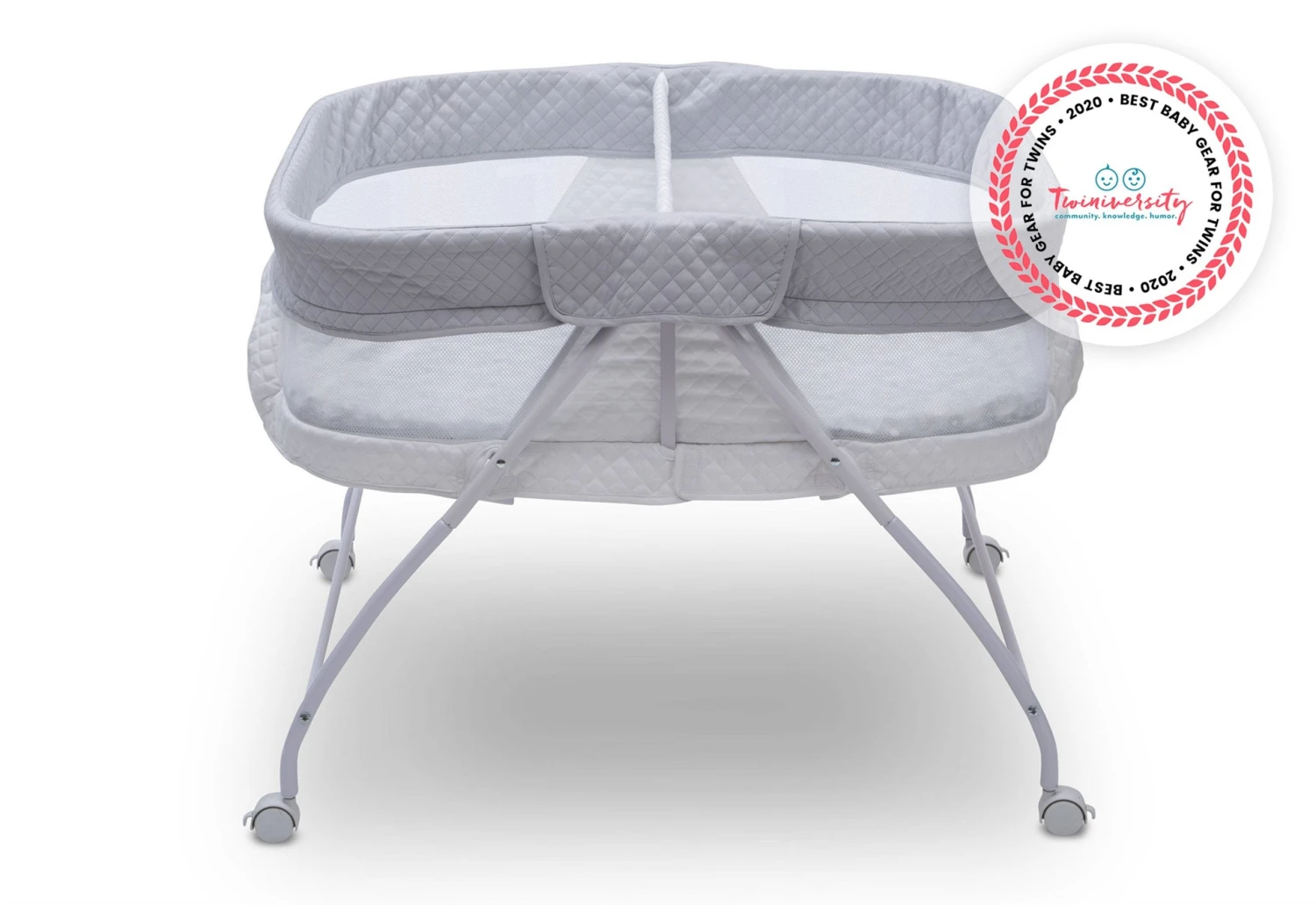 - Wheels on all four legs allow you to rotate the bassinet in order to tend to both babies
