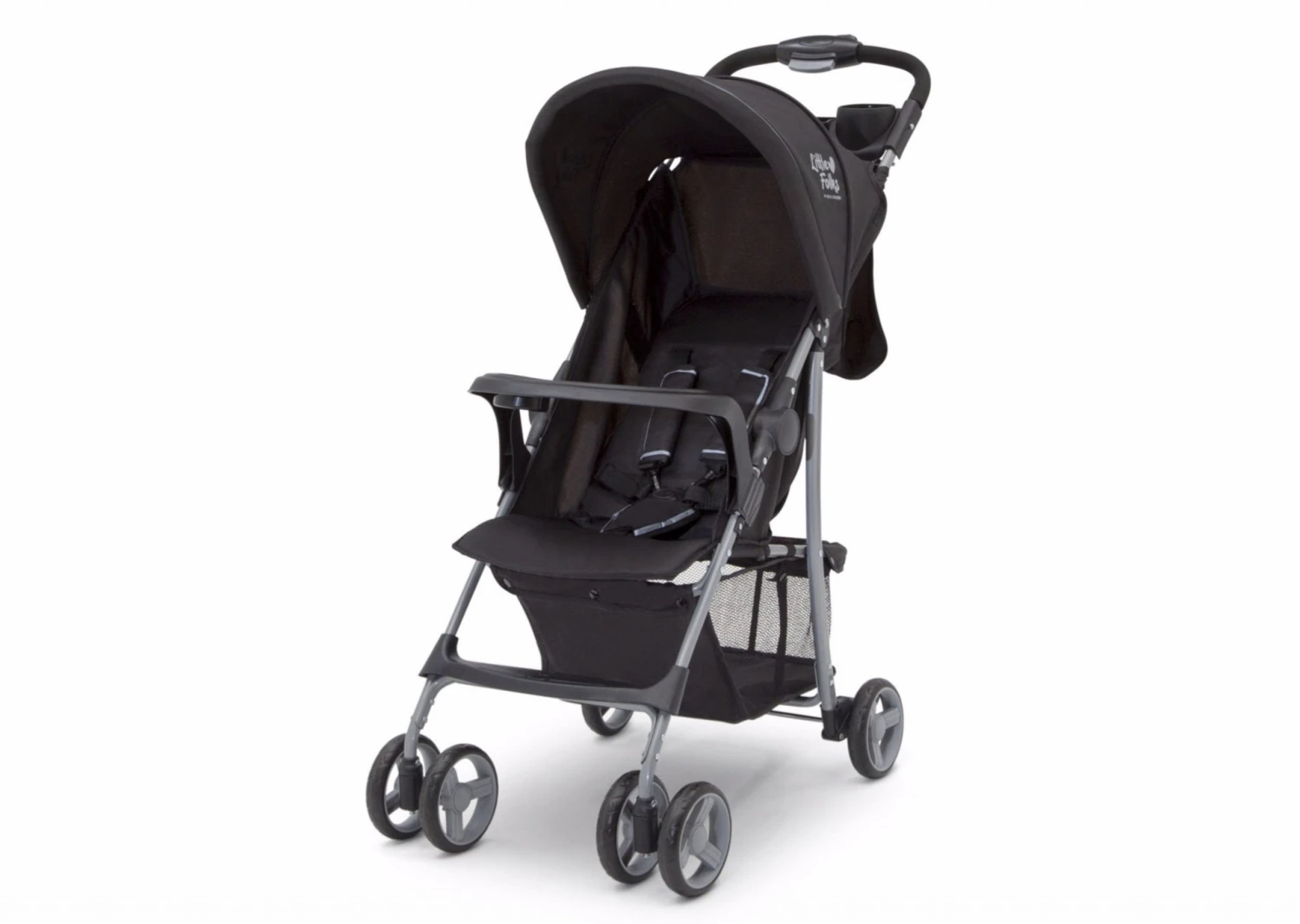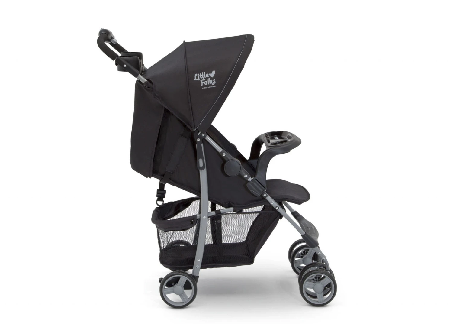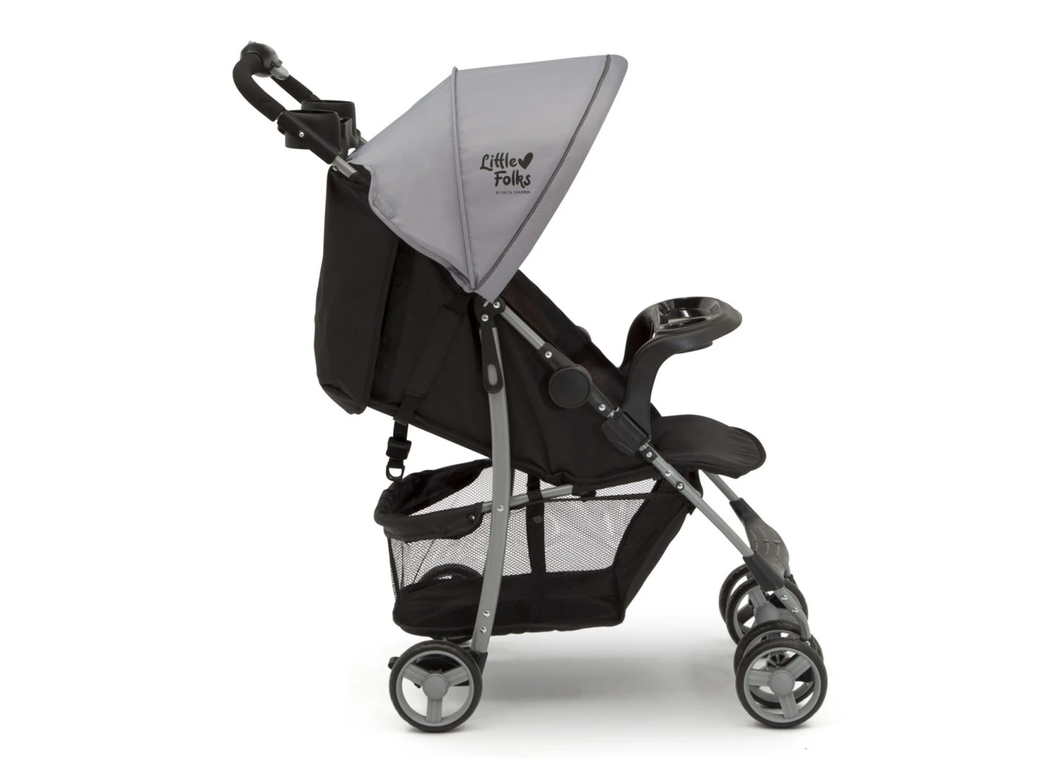 The Little Folks Classic Tour Stroller by Delta Children makes everyday walks, errands and adventures with baby practically effortless. Designed with your child’s comfort in mind, this stroller features a multi-position reclining seat, extendable canopy to block the sun and swing-out child tray with cup holder. Equipped with a large storage basket under the frame and parent tray with two cup holders, you’ll be able to fit all of your baby’s gear, plus your own. It’s outfitted with back wheel suspension for a smooth ride no matter the terrain. That’s not all—the stroller folds flat and has a latch lock that keeps it in place for super easy transport and storage.