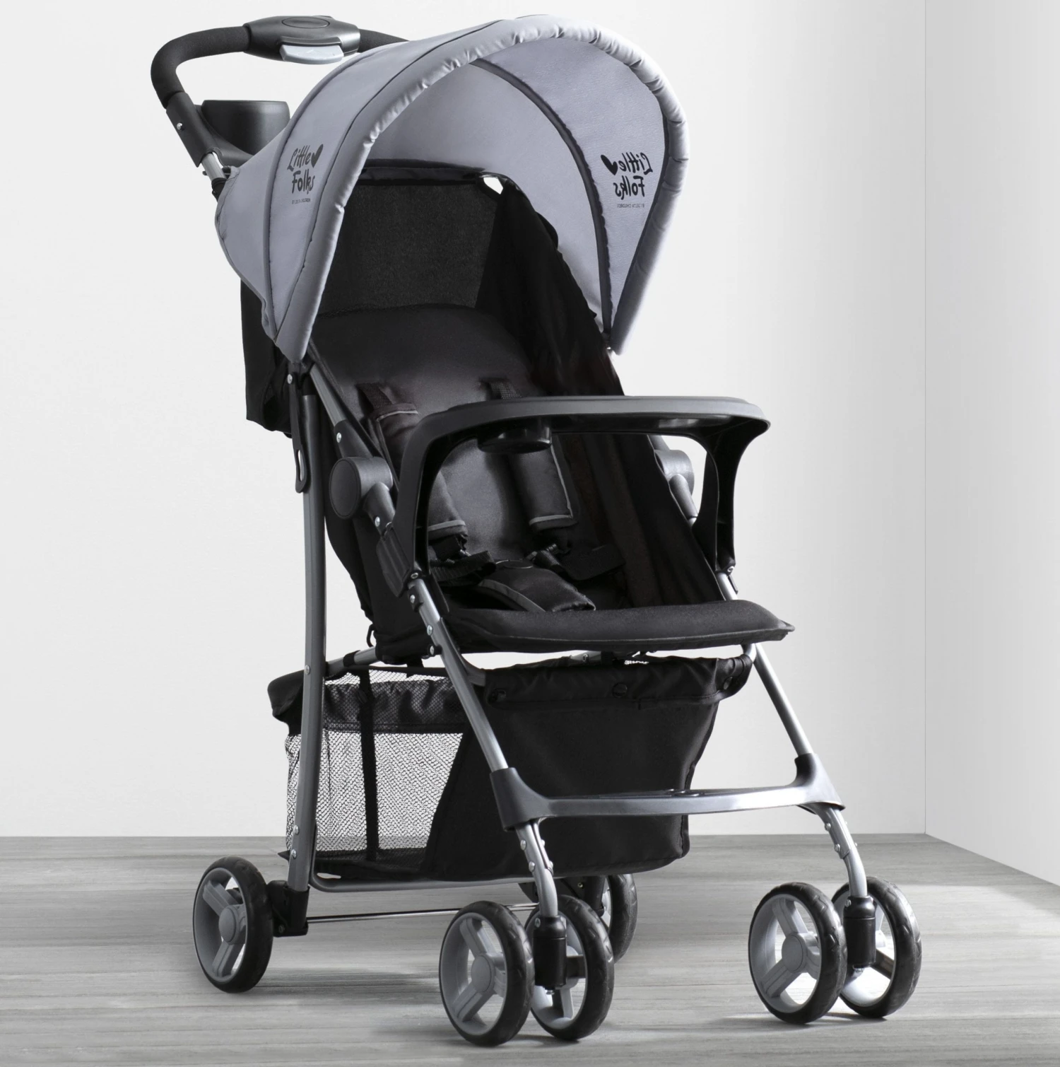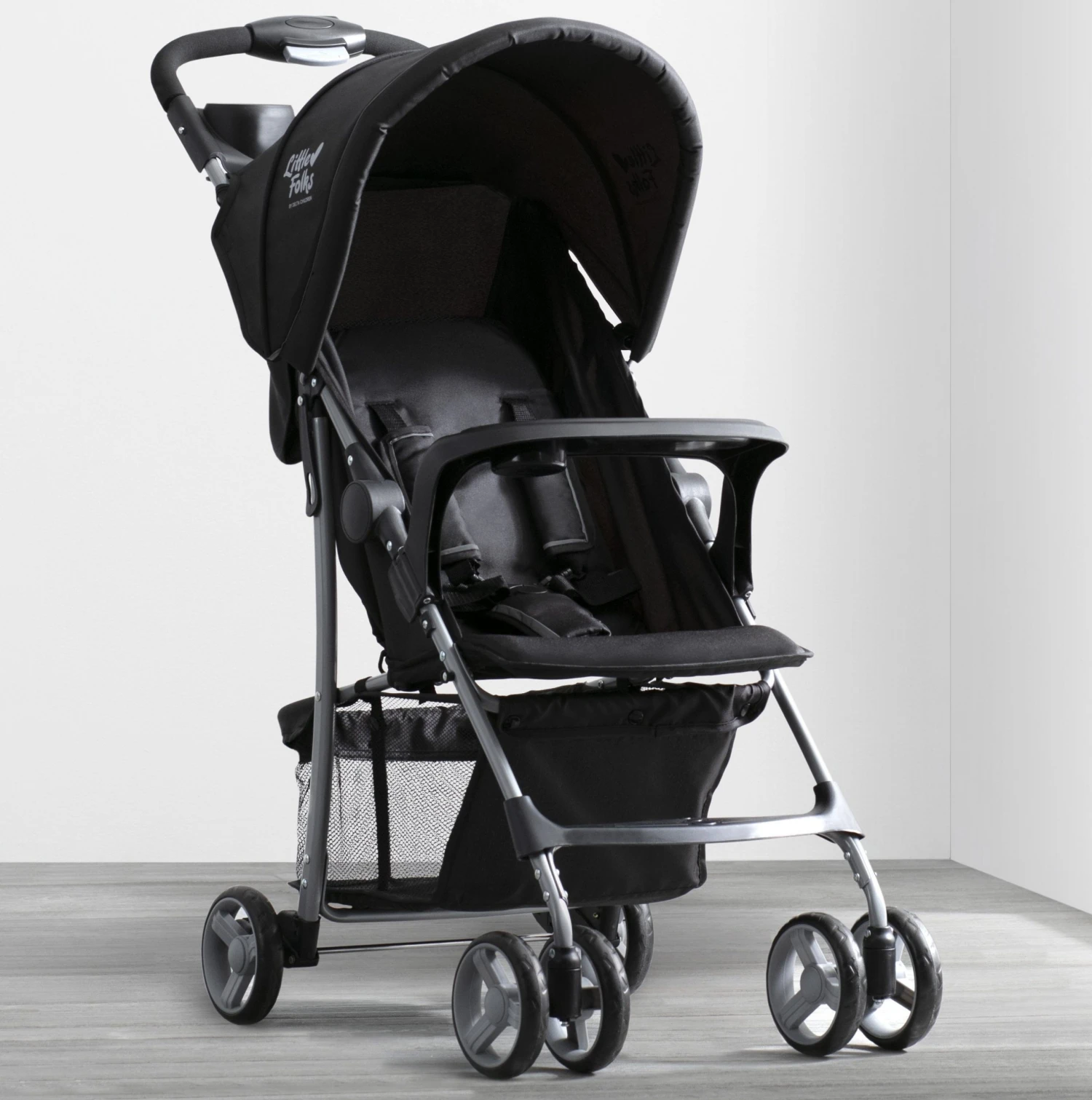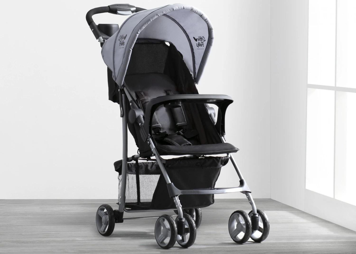 The Little Folks Classic Tour Stroller by Delta Children makes everyday walks, errands and adventures with baby practically effortless. Designed with your child’s comfort in mind, this stroller features a multi-position reclining seat, extendable canopy to block the sun and swing-out child tray with cup holder. Equipped with a large storage basket under the frame and parent tray with two cup holders, you’ll be able to fit all of your baby’s gear, plus your own. It’s outfitted with back wheel suspension for a smooth ride no matter the terrain. That’s not all—the stroller folds flat and has a latch lock that keeps it in place for super easy transport and storage.