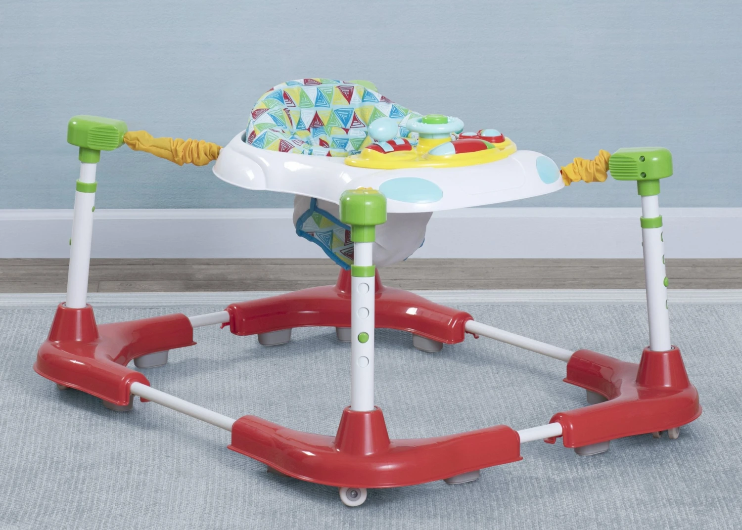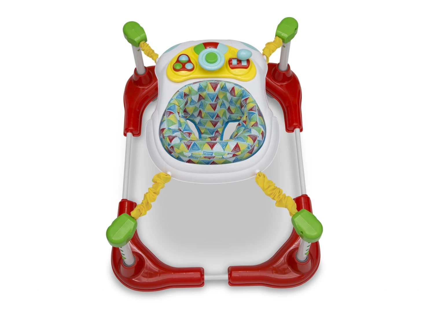 Teach your child to balance, stand and walk with the Little Folks First Steps Learn2Walk Balancer by Delta Children—this patented bungee balancer is the first of its kind. Normally, it takes babies 1,000 hours of practice to learn how to walk, not with this balancer! It uses innovative bungee technology to help your little one naturally find their center of gravity without ever falling. The bungees allow your child to tilt, but gently pull them back to the upright position, so they can mimic real walking movements. Invented by a Physician with special interest in child ambulatory development, the Little Folks First Steps Learn2Walk Balancer by Delta Children taught his daughter how to walk by strengthening her torso and legs while learning how to balance. Every bounce supports your baby’s development, strength, balance and coordination. With three modes and adjustable height seat, this balancer effortlessly grows with your child. The stationary play station mode keeps baby entertained with interactive lights, sounds and toys, remove the toy tray to reveal a spacious snack area. While in stationary mode, your child can engage the bungee technology to take their first steps. When in balancer mode, your child will discover walking movements that encourage gross motor skills.