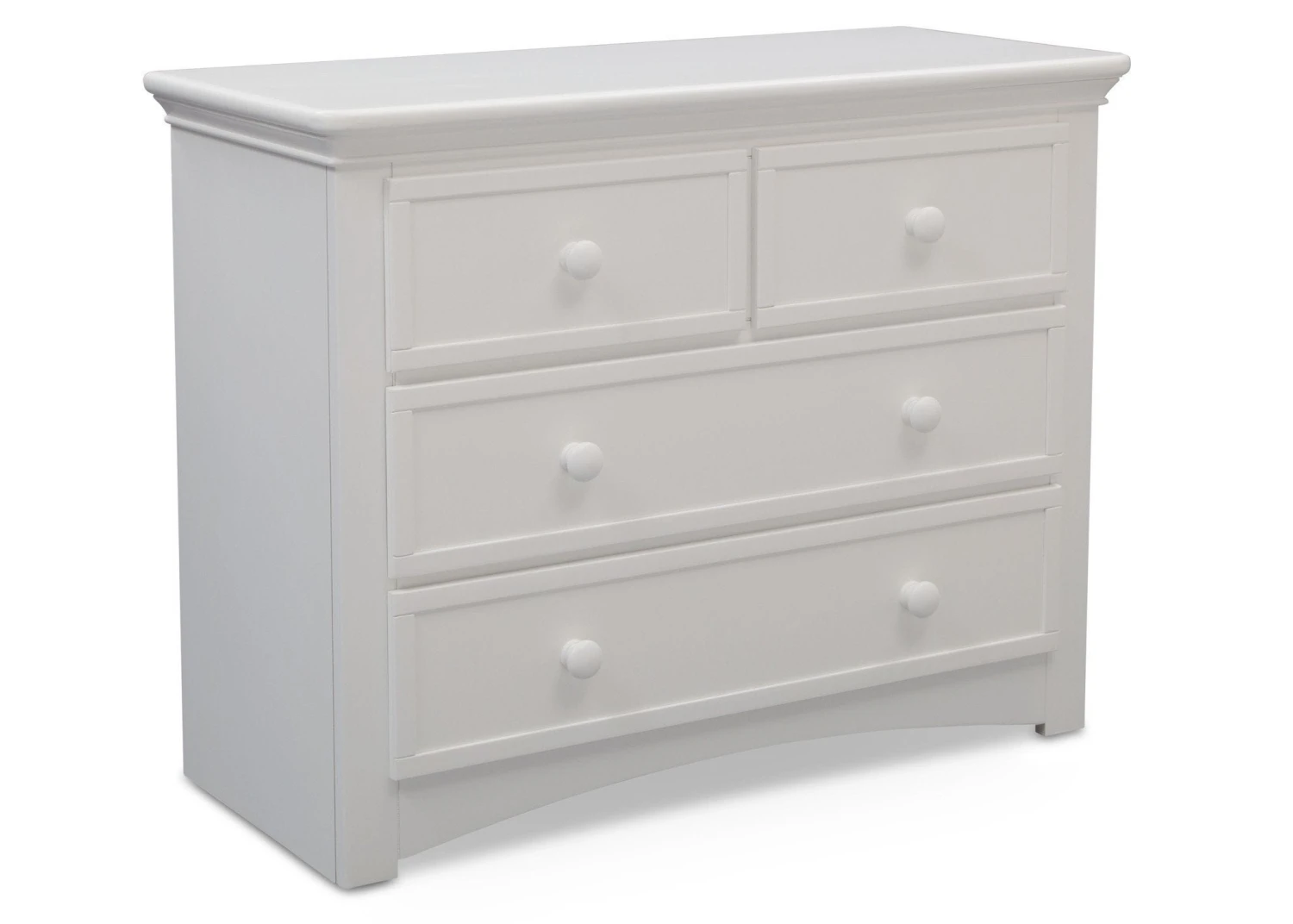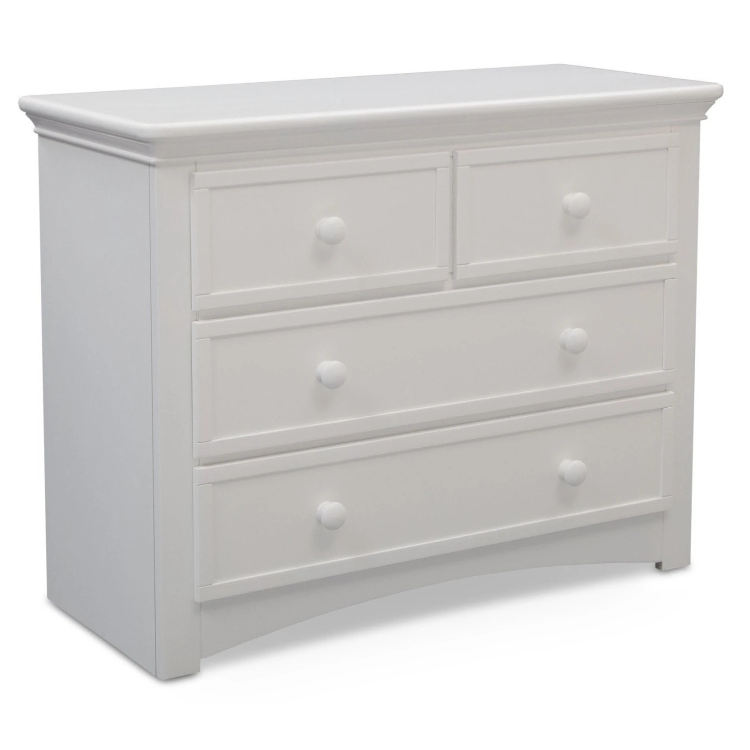 Equipped with a bounty of storage space, this 4 Drawer Dresser offers timeless appeal. This sturdy dresser is outfitted with wooden knobs that are easy to grasp, making it the perfect addition in a child’s room. Fashioned with elegant detailing, this piece works in adult spaces, too